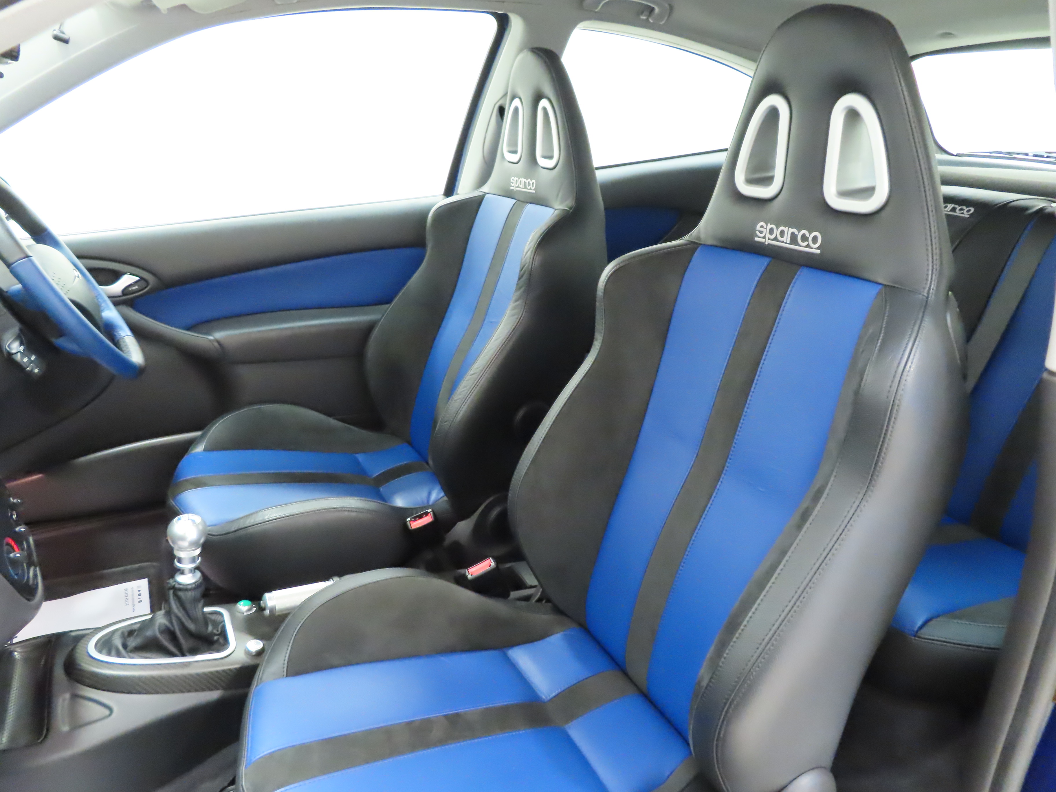 Computer optimised unitary welded steel body, rigid occupant safety cell, energy absorbing crumple zones, wider front and rear pressed steel wings, auxiliary air intakes, aerodynamic splitter and rear wing, mounted side sills, modified lower rear apron, driver and front passenger airbags, air conditioning, leather sports steering wheel with blue inserts, carbon fibre centre console with start button, limited edition number plaque, Sparco aluminium handbrake, gear knob and pedals, boost gauge and ‘change up light’, bright metal tread plates with RS script, stereo radio/6CD model 6006E, Thatcham CAT 1 alarm. Dealer Options: RS floor mats.
