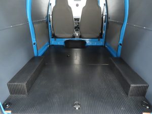 All-steel welded integral construction, right and left hand sliding side-loading doors, bodyside protection trim, laminated windscreen, 2-speed windscreen wipers, electric screenwash, twin door mirrors, twin tailgate struts, locking fuel filler, front and rear mud flaps, high back reclining seats, hinge-down glove box, door map pockets, cab interior light, load compartment lamp, 3-speed fan, twin sun visors, cab entry assist handles, cigar lighter, full length headlining, cab rubber floor covering. Factory Options: Tailgate wash wipe, heated rear window. Accessories: Classic 200 DAB radio with Bluetooth streaming, (Original Radiomobile push button stereo included), Darfil Class A50-X towbar with single electric socket, heavy duty rubber cab mat, witty magnetic handyman side signs (removable without trace).