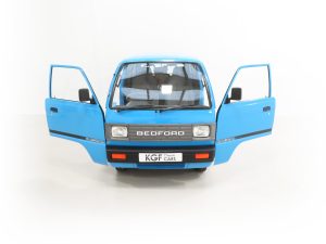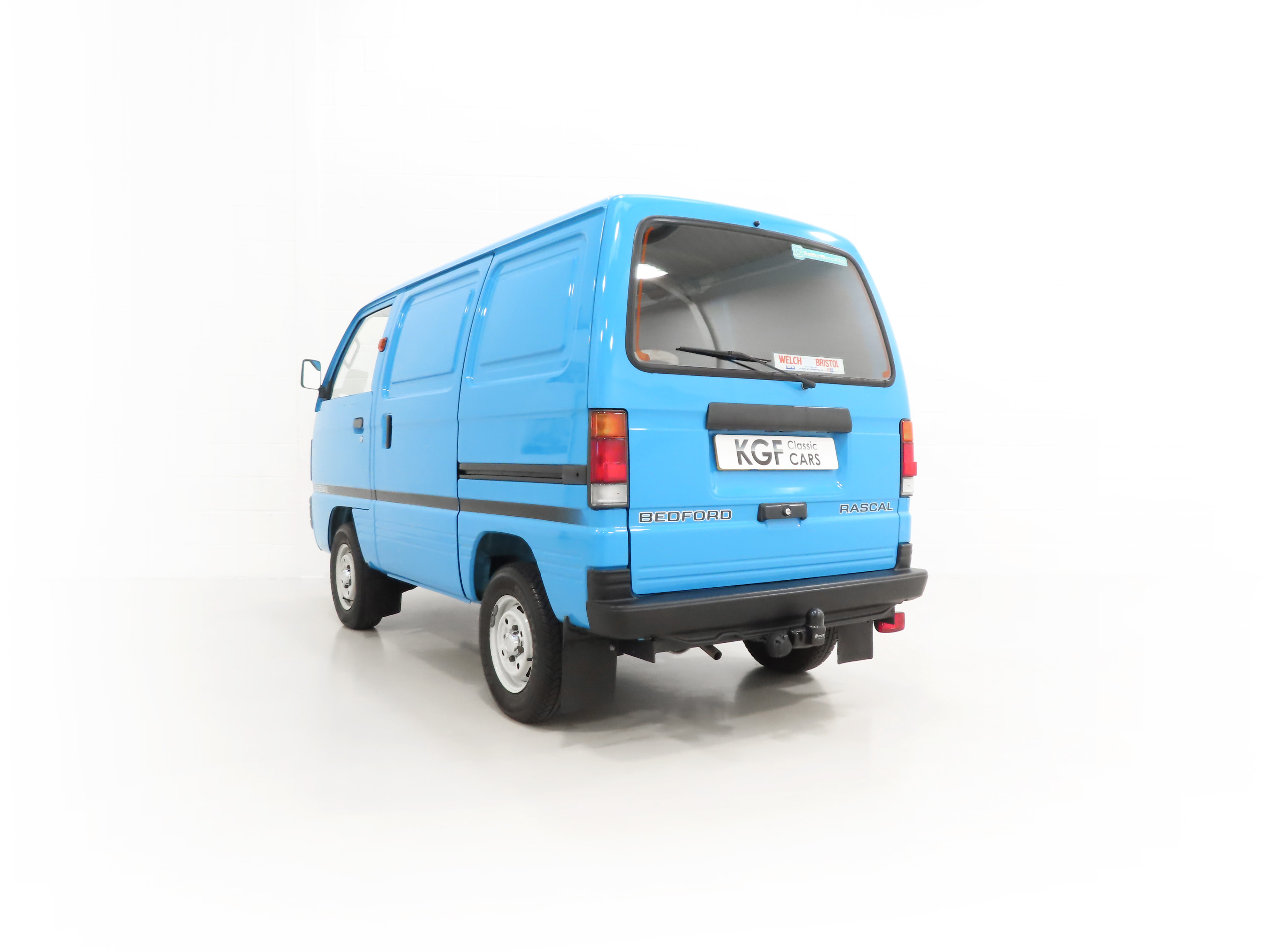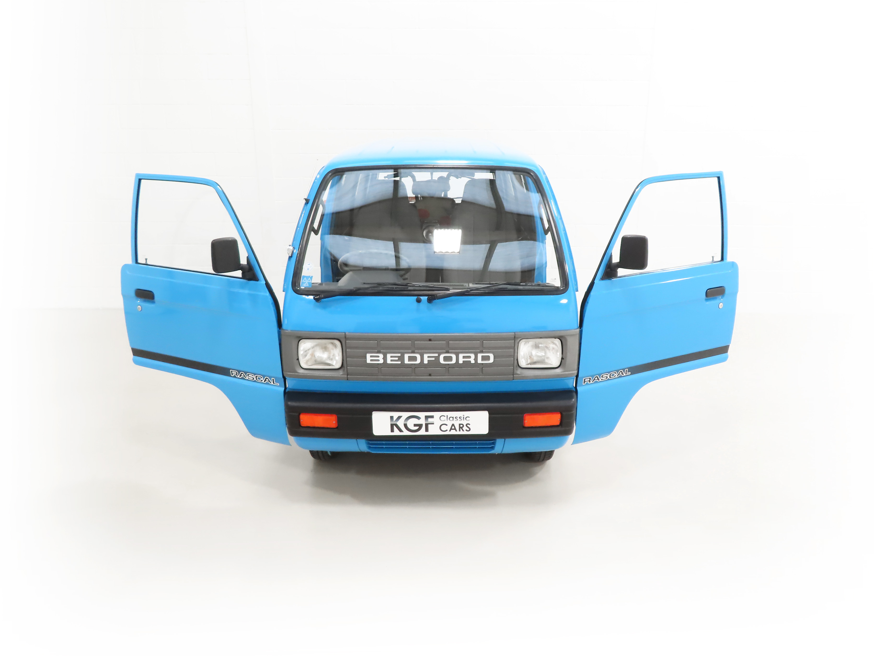 This Bedford Rascal van draws crowds and is the epitome of time warp or any other connotation of something that defies the age of time! These original Vauxhall and Bedford light vans are virtually extinct in any form, let alone in such incredibly preserved condition. Finished in its factory coating of Cargo Blue, (Code 17U), the paintwork boasts a deep polished shine. The underside is clean and free from excess underseal to allow inspection to reveal just how well preserved this example is. Original features such as the supplying dealer number plates, mud flaps and rear screen sticker remain fitted. Having covered a mere 20,980 miles and used as a florist’s delivery van before being retired as a leisure vehicle, this surely has to be the most privileged and cossetted Rascal in existence! Despite the tiny dimensions, an impressive capacity of 93.6cu.ft and maximum load of 625kg make this capable cheeky commercial ideal for business promotion and a superb marketing tool!