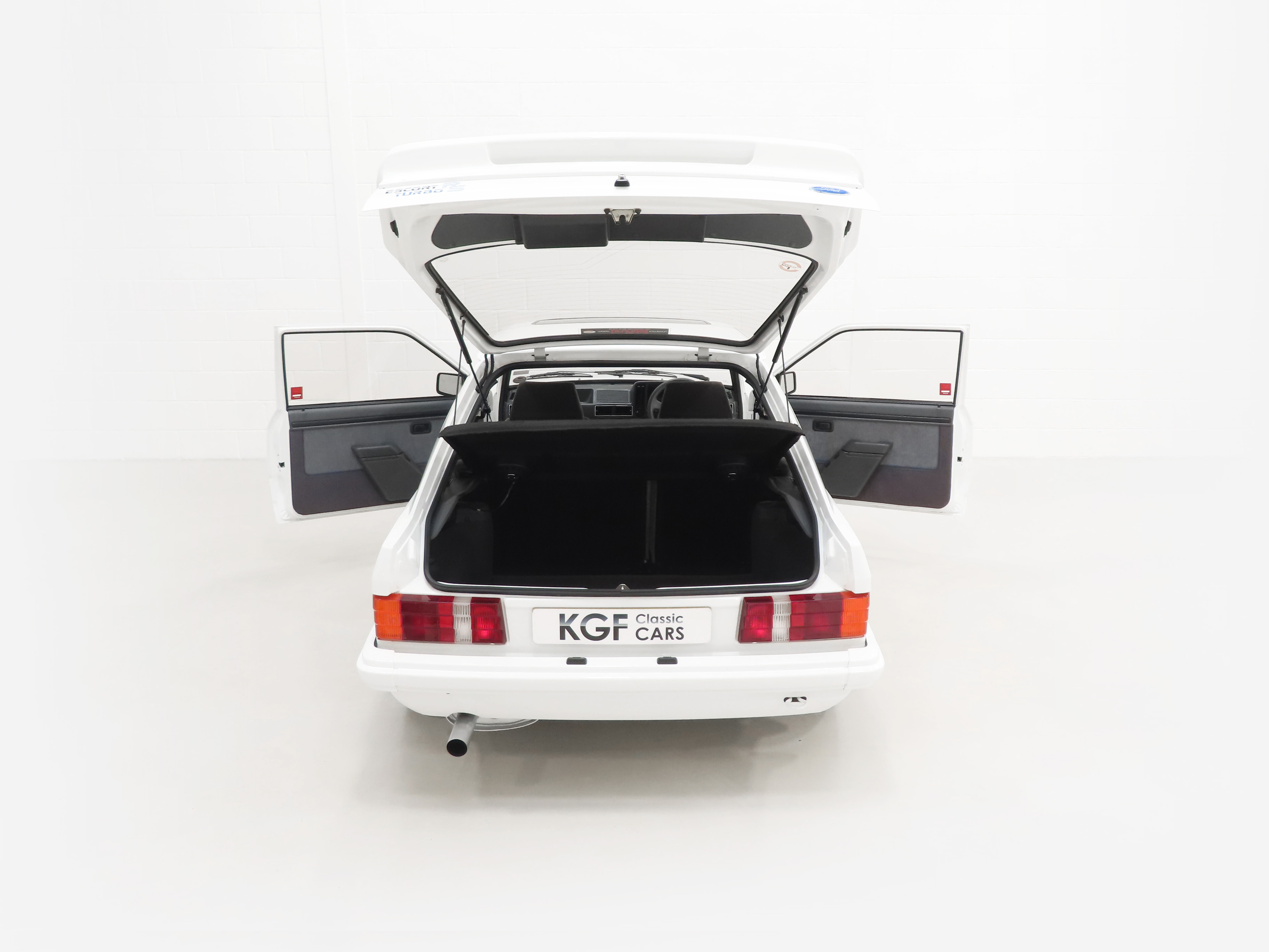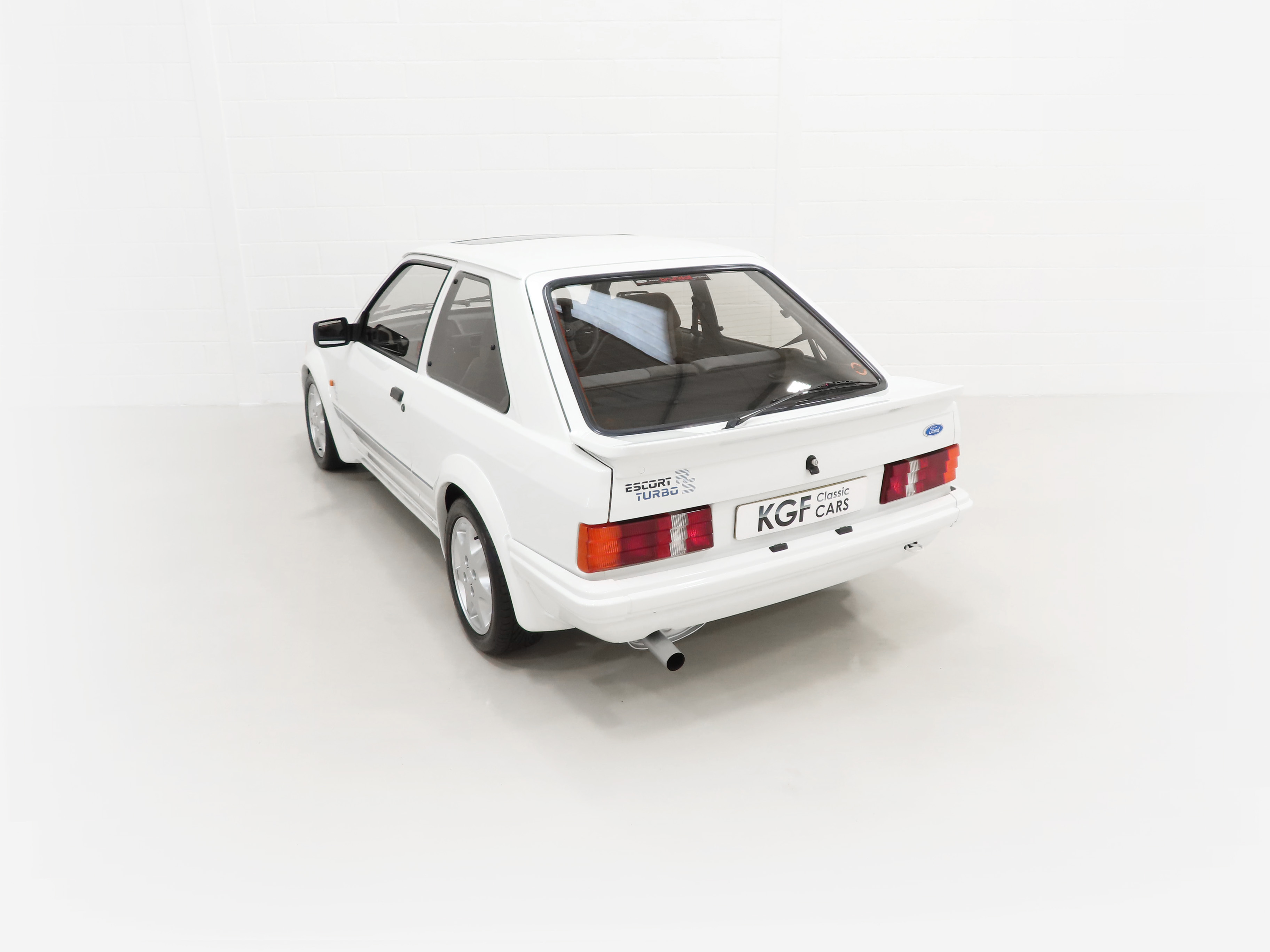 This White Hot Ford Escort RS Turbo is finished in the only colour available, Diamond White (Code B3). The paintwork is exceptional with a brilliant pure shine and uniform finish. Both front wings and windscreen scuttle panel are factory panels with date stampings. The correct Carello headlamps, spotlights and the factory glass remain including the Ford inscribed front and rear screens. The underside is amazing with none of the factory underbody stone ship removed, just spotlessly clean ready for concours. Meticulously restored by SJB Classics, (Specialists in Aston Martin restorations with this example being the proprietors own car), no detail was spared with hundreds of photos proving the works and how good the car was initially. As close to showroom perfection 40 years on!