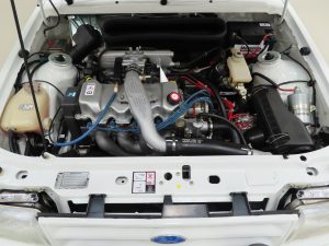 Fitted with Fords 1596cc turbocharged Compound Valve Hemispherical chamber (CVH) unit, producing 132BHP at 6000rpm, mated to the Bosch KE Jetronic Fuel Injection System. Turbocharged power delivery courtesy of a Garrett T03 turbo, the car accelerates smoothly to a maximum speed of 125mph and achieves 0-60 in 8.2 seconds. The engine bay is pristine and guaranteed to wow onlookers. The gear changes are light and absolutely precise and thanks to a limited-slip differential, the first ever fitted to a front wheel drive car at the time, expect a truly exhilarating experience.