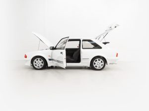 The Series 1 Escort RS Turbo was carefully developed by Ford’s talented Special Vehicle Engineering team whose other resounding successes include the Capri 2.8 Injection and the XR3. The RS Turbo was designed to set new standards in Group N and Group A events and was quickly dubbed the car to beat. Ford initially planned to build 5,000 RS Turbos, the minimum number required for homologation in Group A, however a total of 8,604 were built due to increased demand. The car was greeted with huge enthusiasm and was only sold through official Rallye Sport dealers. A following that today has amassed into obsession for many a diehard Ford enthusiast.