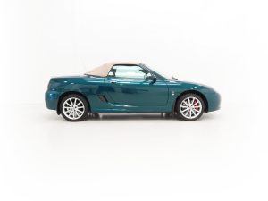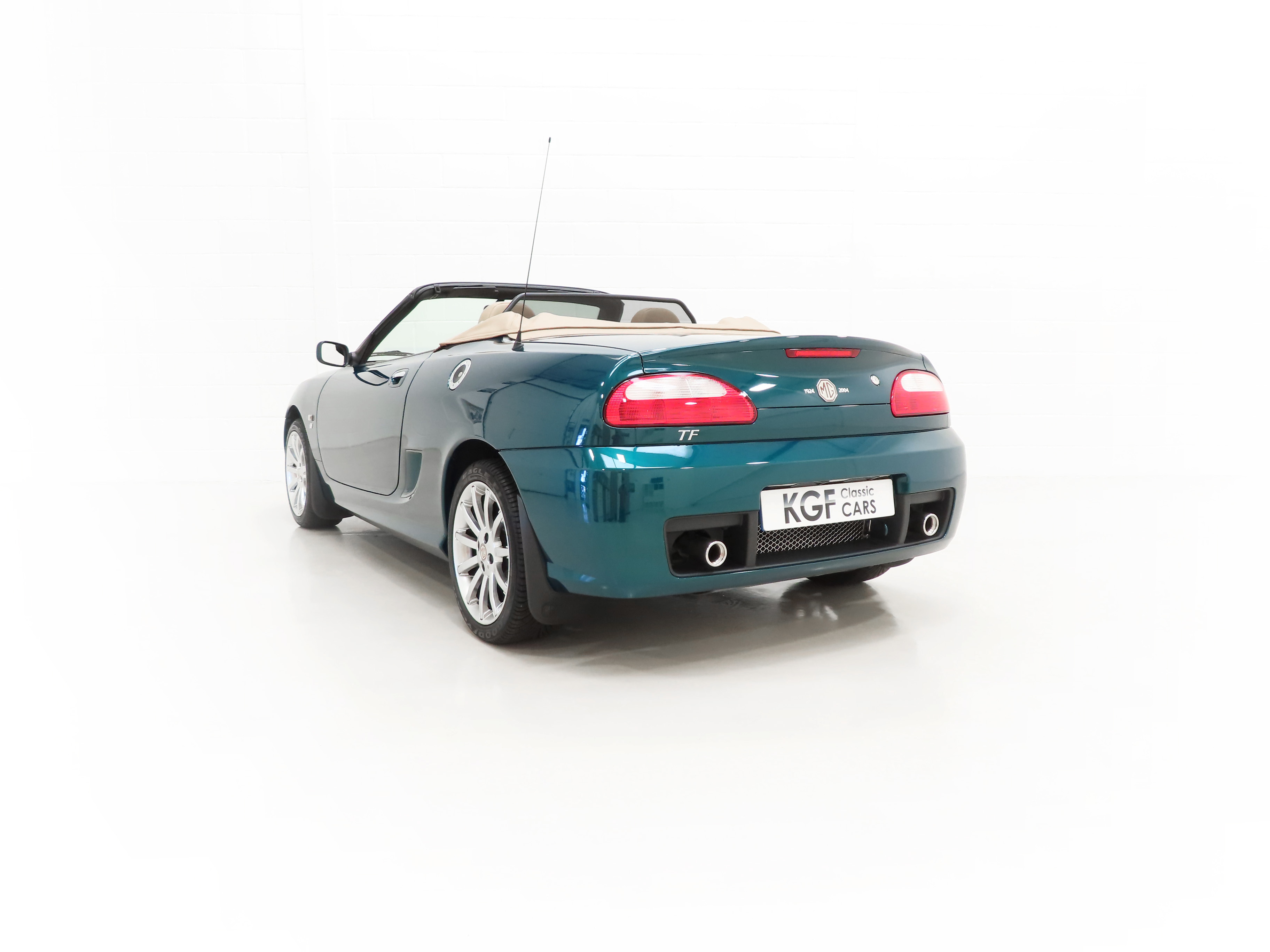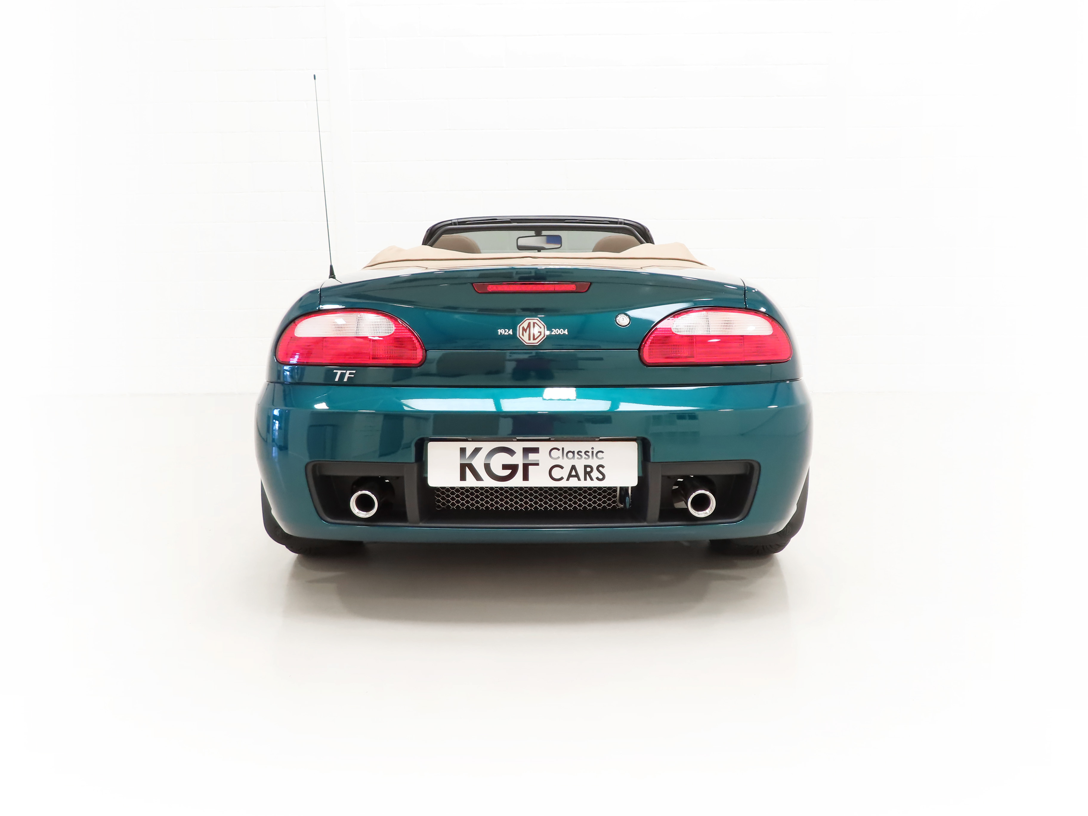To celebrate 80 years of the MG brand saw a Limited-Edition release of just 1600 MG 80th Anniversary TF cars, available in three special colours and all built to high specification. The UK received just 500 examples and car number 1351 of 1600 boasts outstanding credentials being a one owner car with just 3,193 miles from new. Entirely commensurate with these credentials, the factory original Goodwood Green Pearlescent paintwork, (Code HQM), is pristine throughout and sparkles with no imperfections worthy of noting other than a couple of touched in frontal stone chips. The hood is also perfectly preserved with no fading or deterioration to the plastic rear screen. All trim sections, glass, lights and badges are as new, and the supplying dealer number plates and tax disc holder remain fitted. Garaged from new and used strictly in dry conditions the underside, wheel arch liners and door apertures are spotless. This is a truly exceptional example of one of the rarest and highly collectable in the MGF and TF range with added heritage.