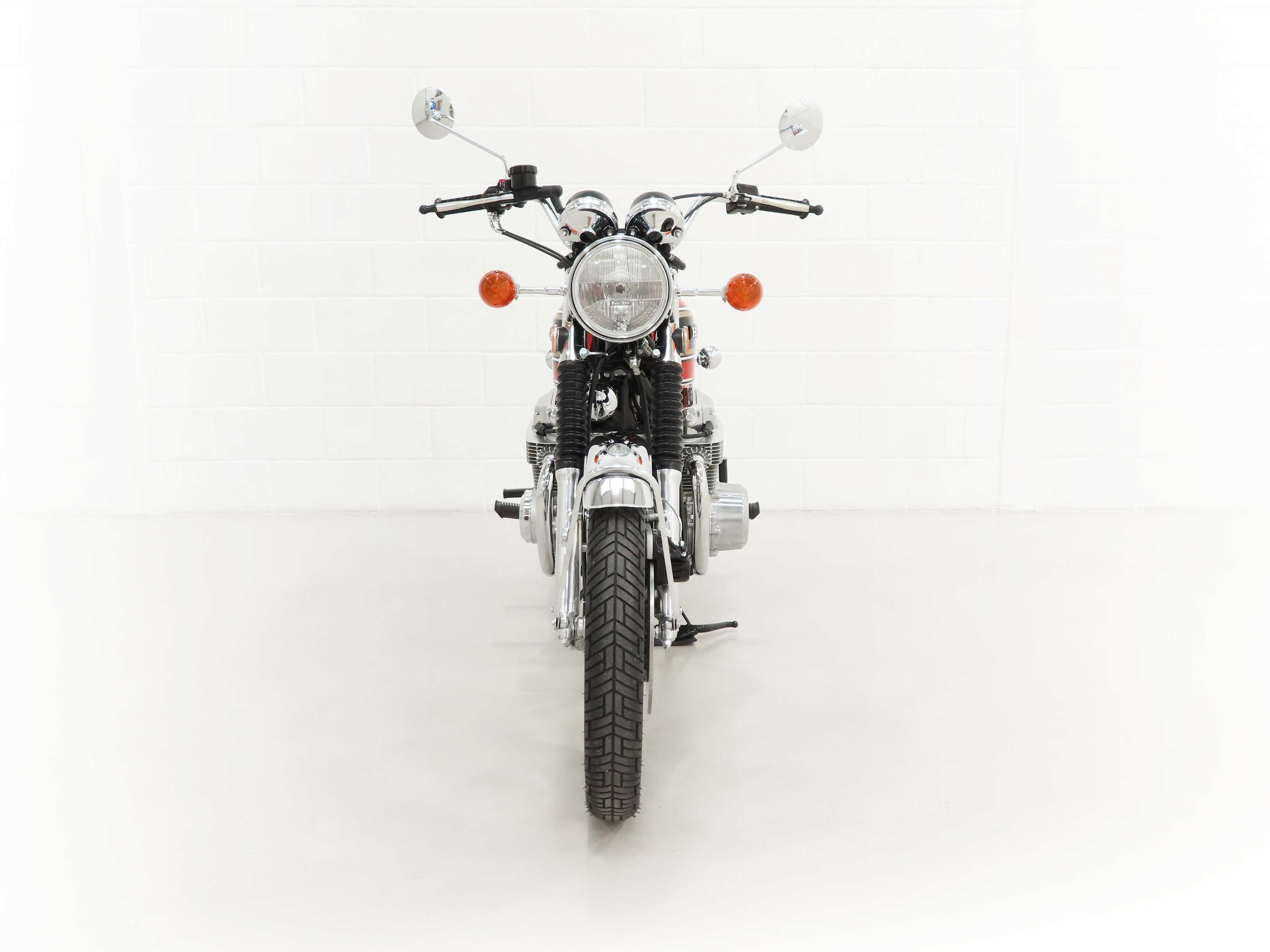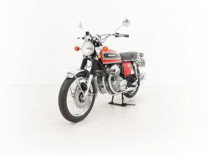 A breathtakingly beautiful machine, this fully restored example completely excels down to every nut, bolt and clip. Close scrutiny allows total appreciation of just how amazing the bike is, with the gleaming Flake Sunrise Orange paintwork absolutely flawless. Mirror chrome in abundance will entertain those who enjoy to polish with all pieces displaying a perfect quality finish. The seat with Honda inscription is spotless underneath which the toolkit, battery strap and handbook are all present. All trim, light apparatus and Cibie headlight as new. The chrome nearside mirror retains a Made in Japan sticker and the rear light lens a DOT Honda sticker retained by the restorers to uphold the ‘new bike’ look. All warning/information labels, stock VIN label and the Honda and 750 Four badges are perfect. Restored to the highest standard, this stunning machine is very special.