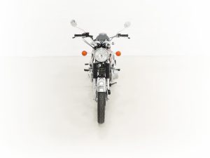 Tubular cradle duplex frame, oil damped telescopic forks, swing arm with two coil over oil damped shock absorbers, chrome mudguards front and rear, twin chrome mirrors, chrome side repeaters, side reflectors, chrome rear light shroud, speedometer, tachometer, odometer, tripmeter, turn switch with signal on indicator, headlight switch, dimmer switch, electric start, engine stop switch, oil light, high beam light, neutral indicator, horn, folding front and rear footrests, fuel valve, centre stand, side stand, toolkit, helmet holder, locking fuel filler cap.