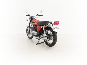 The four-stroke four-cylinder air cooled DOHC engine featuring four 28mm Keihin carburettors has a displacement of 736cc and produces a thumping 67bhp, enough to whisk the rider to a heady top speed of 123.2mph with a standing ¼ mile in 13.5 seconds. The engine number is clearly visible on top of the crankcase left side and is correct in the number range for a 1972 K3 machine. Beautifully machined engine components are pristine and the genuine ornate quad exhaust pipes show clear part number stampings. The bike is fully operational, and a running-in procedure will be required. The inner tank condition is preserved entirely and there is a photographic documented engine rebuild. A mechanical showpiece.