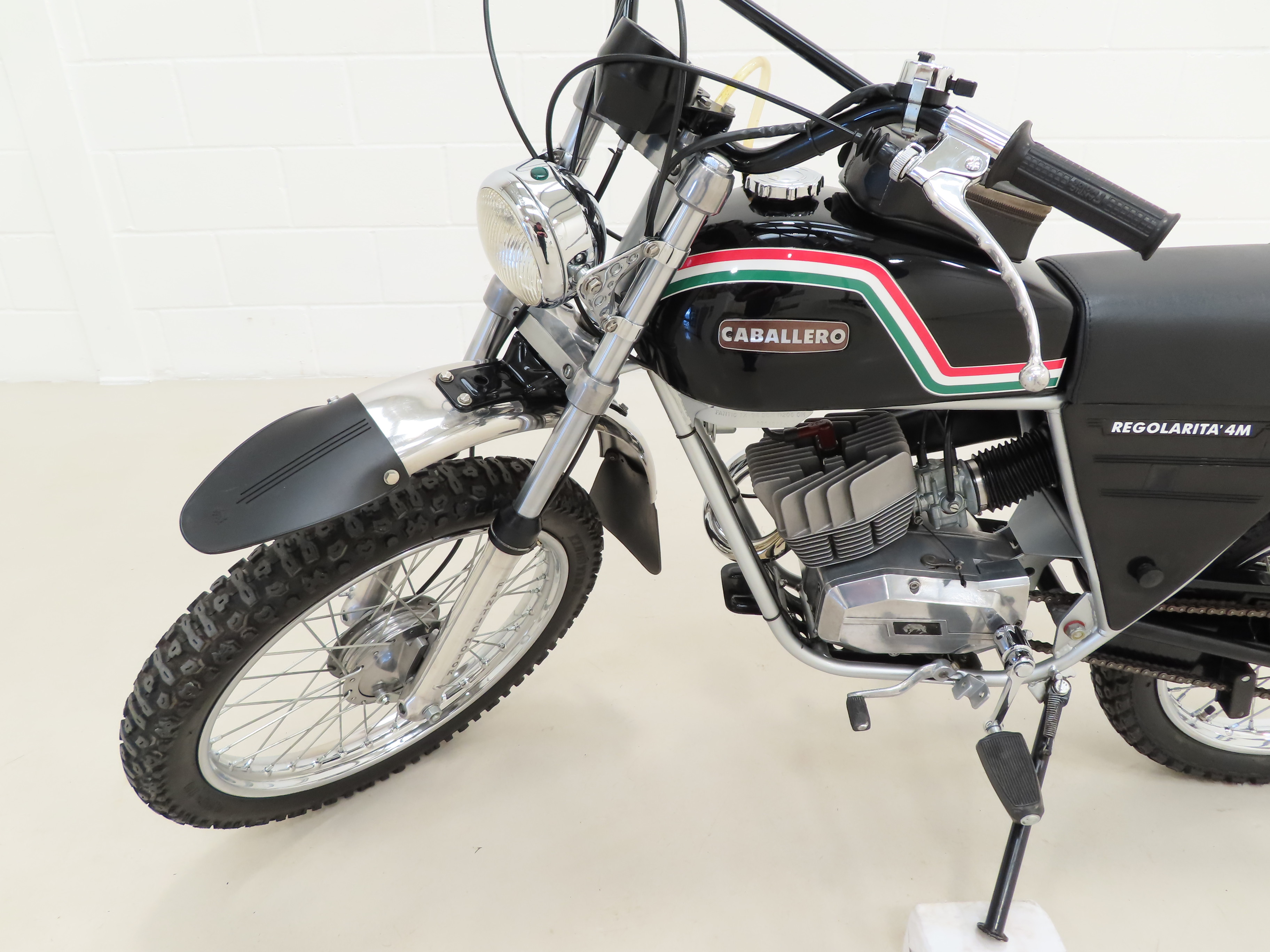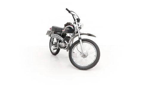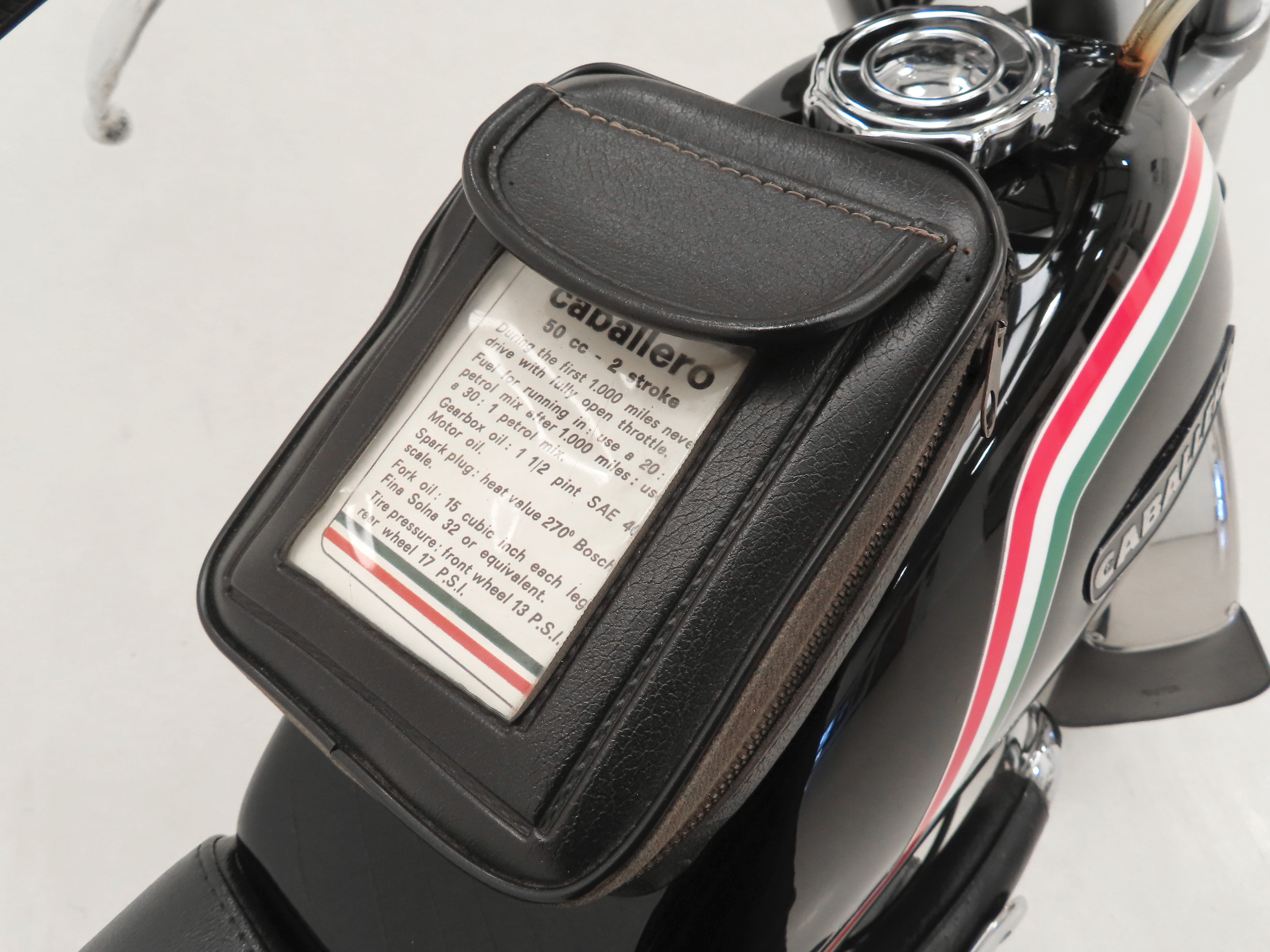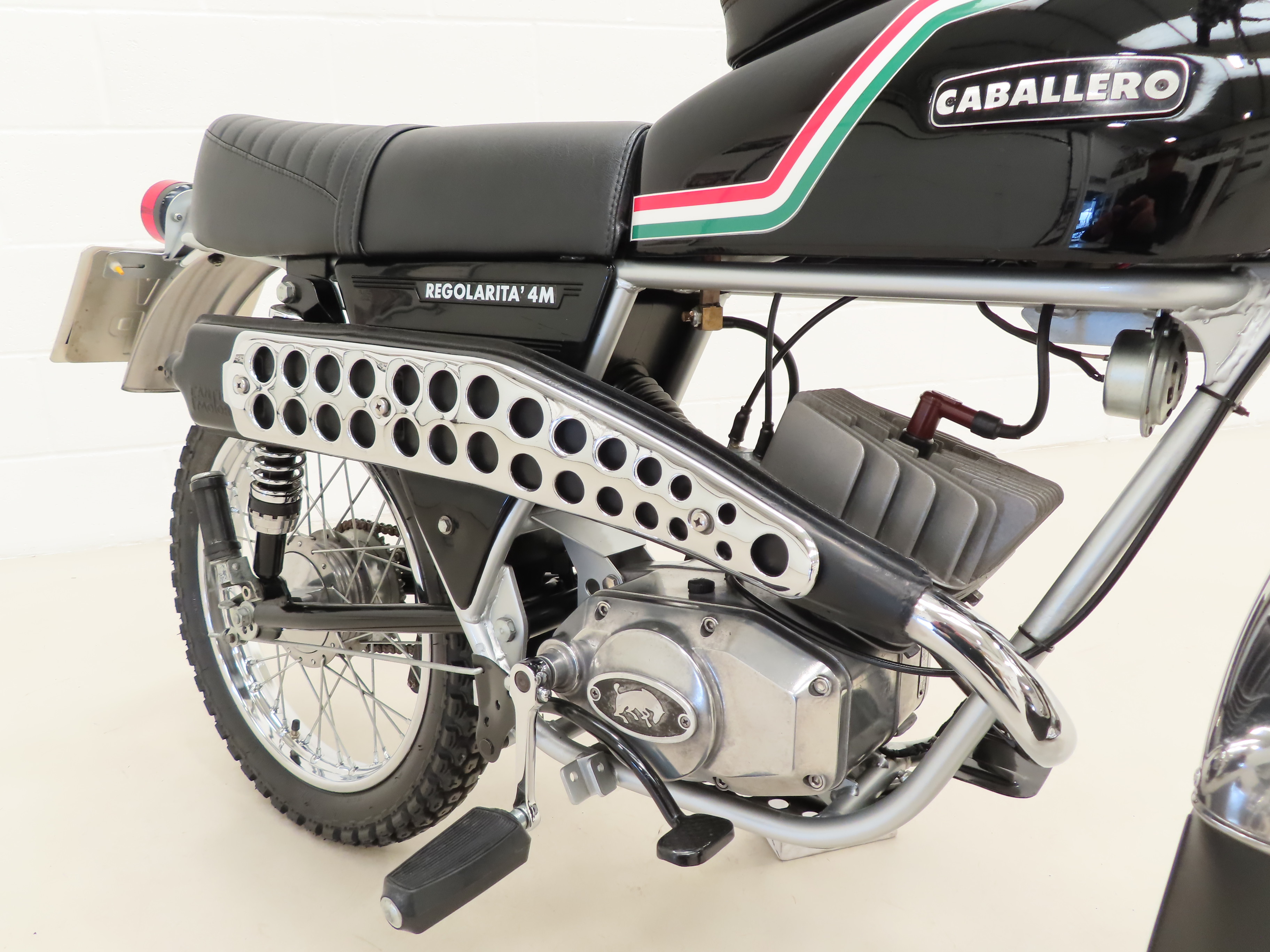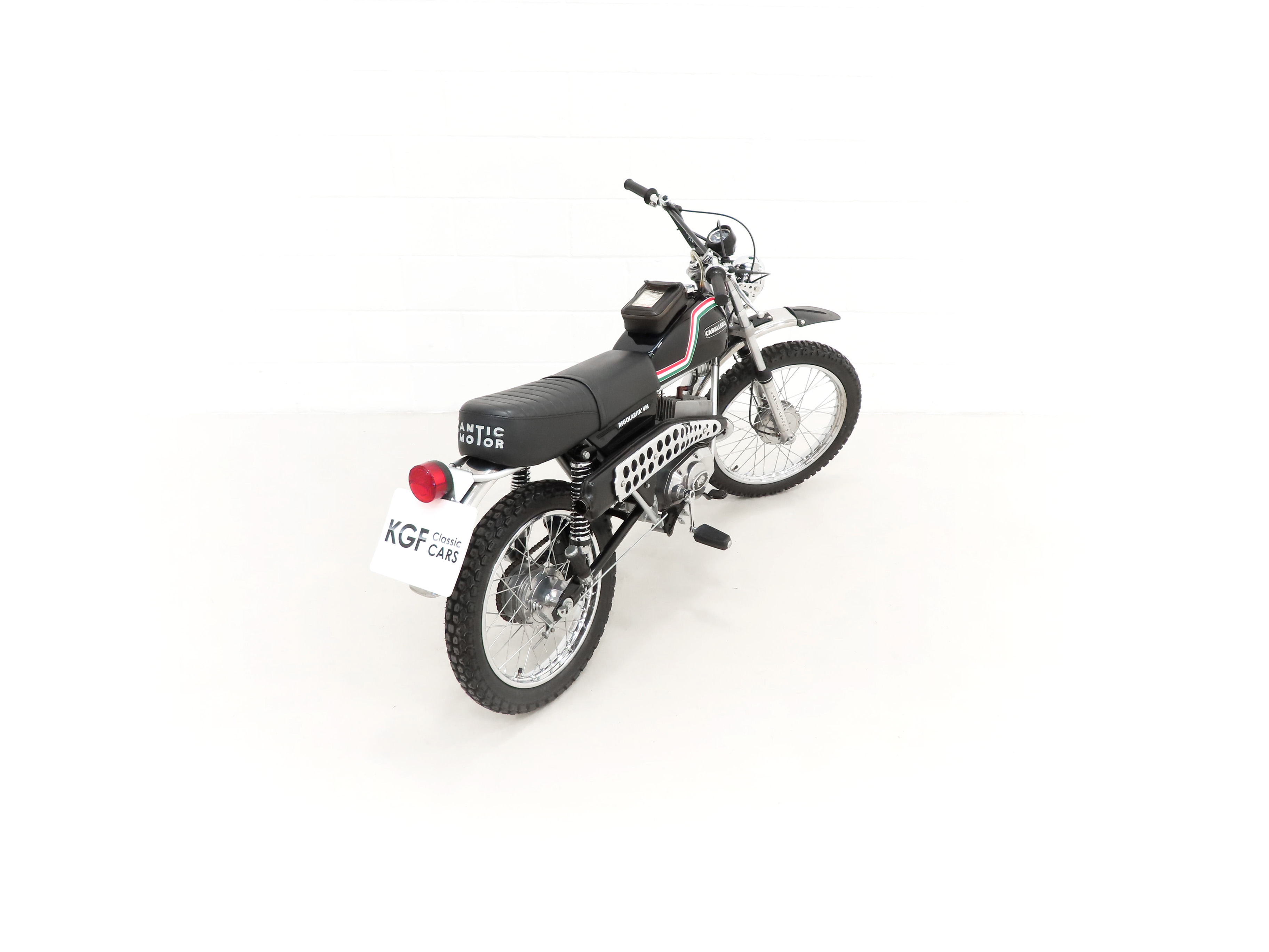 A UK registered bike from new, this desirable 1975 Fantic Caballero is a splendid example of what was regarded as probably the best Sports Enduro mopeds available at the time. The tubular steel frame has is in excellent condition with frame number and model designation numbers clearly visible. The fuel tank boasts a deep polished shine and with perfect Italian flag colours decals and side badge, and the genuine tank pack with running in/maintenance instructions is a lovely period feature, most having been lost! The front hydraulic dampers are in fantastic condition with the Fantic logo perfectly engraved. The original dual seat with pillion strap and Fantic Motor embossed logo is amazingly well preserved. The A marvellous looking machine throughout with an abundance of genuine parts and fittings.