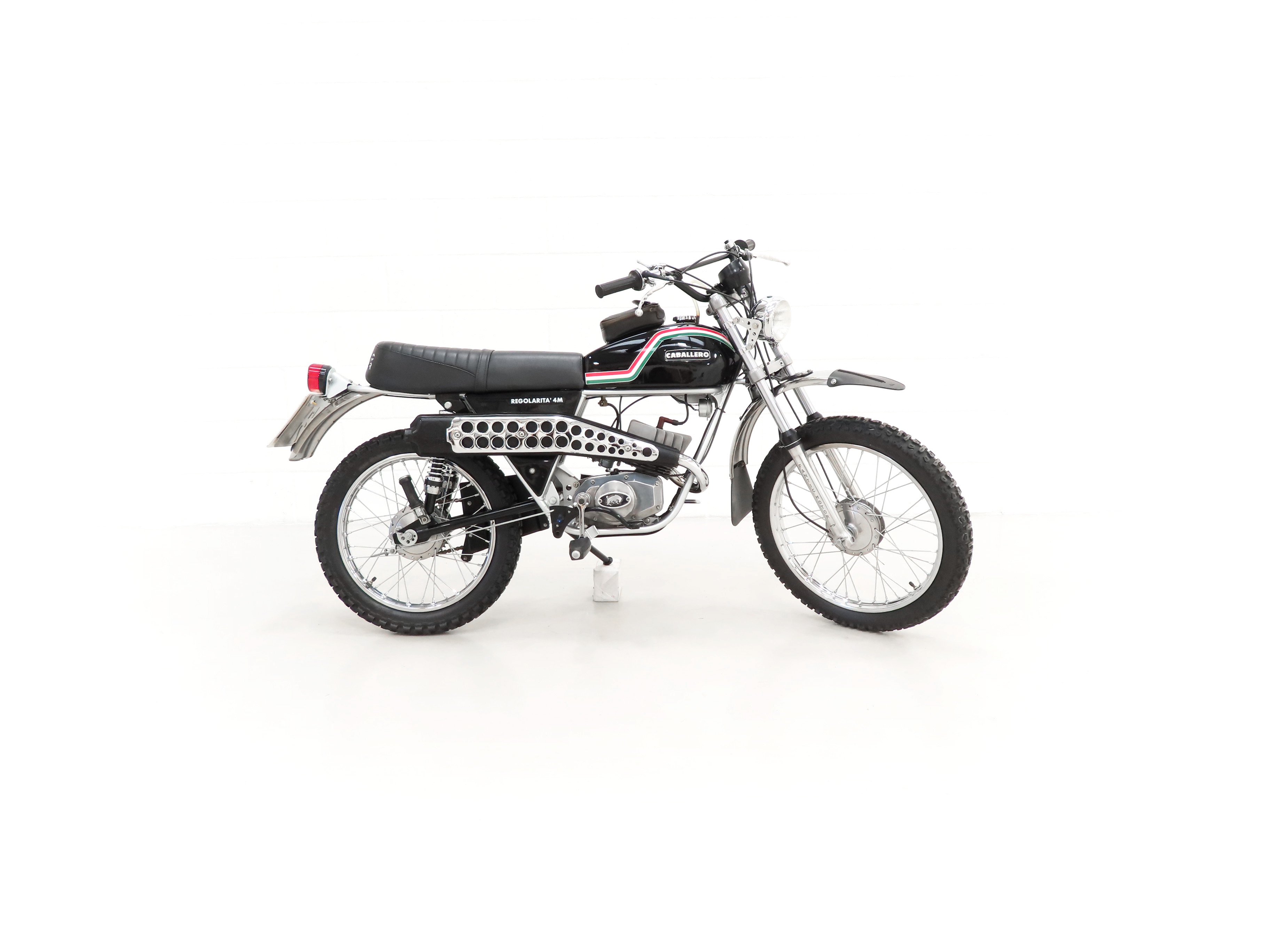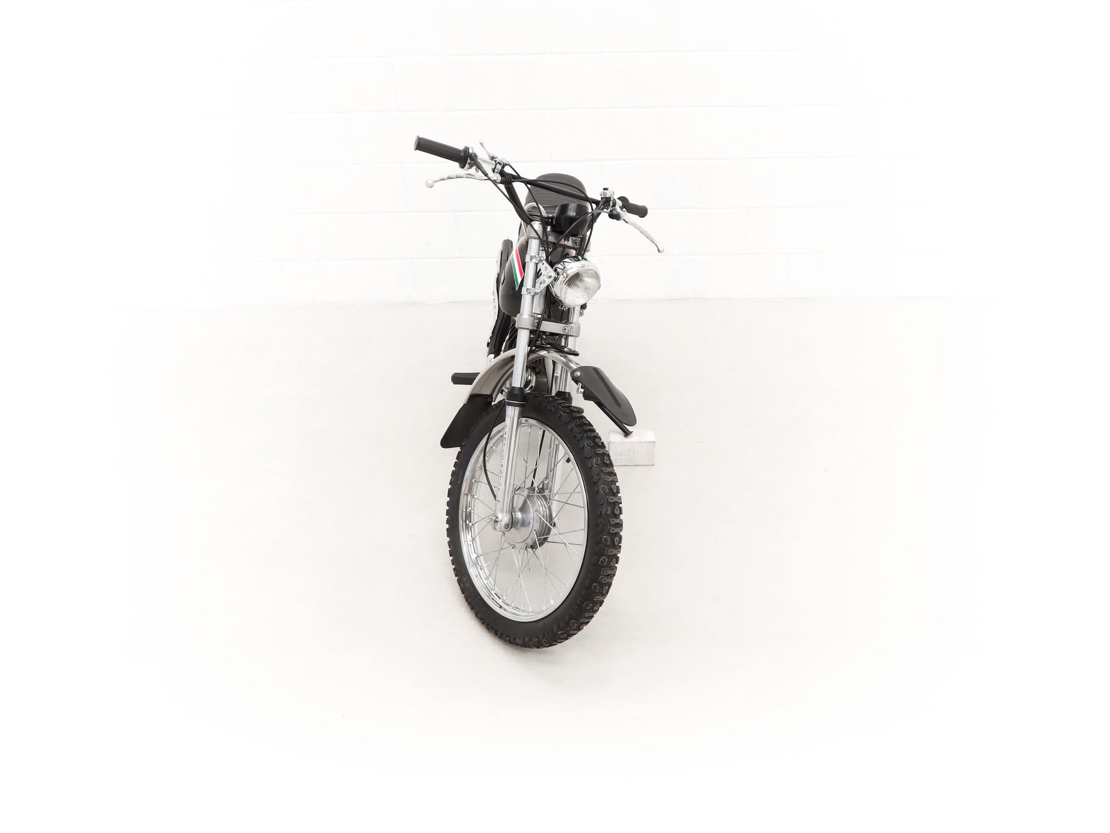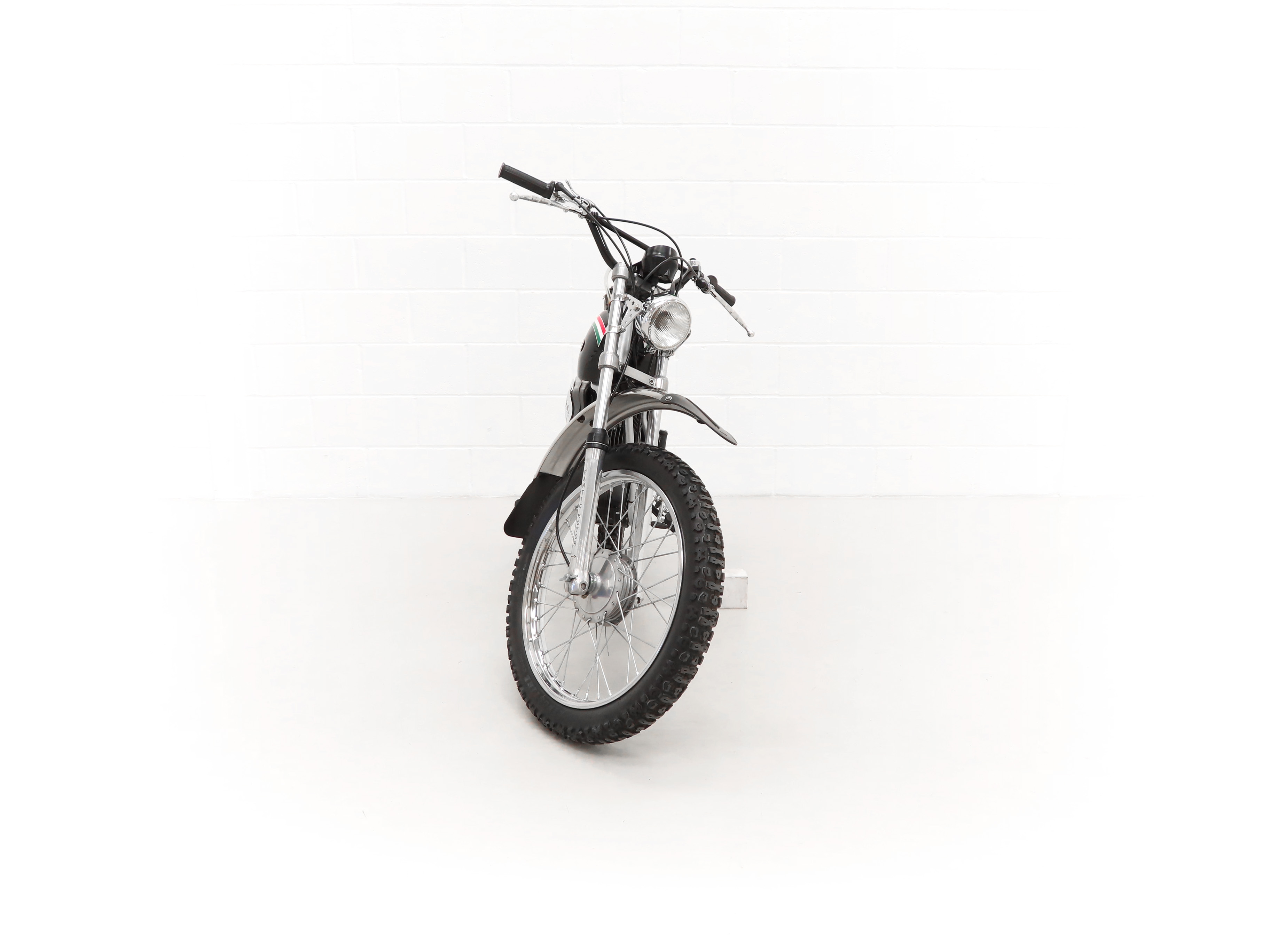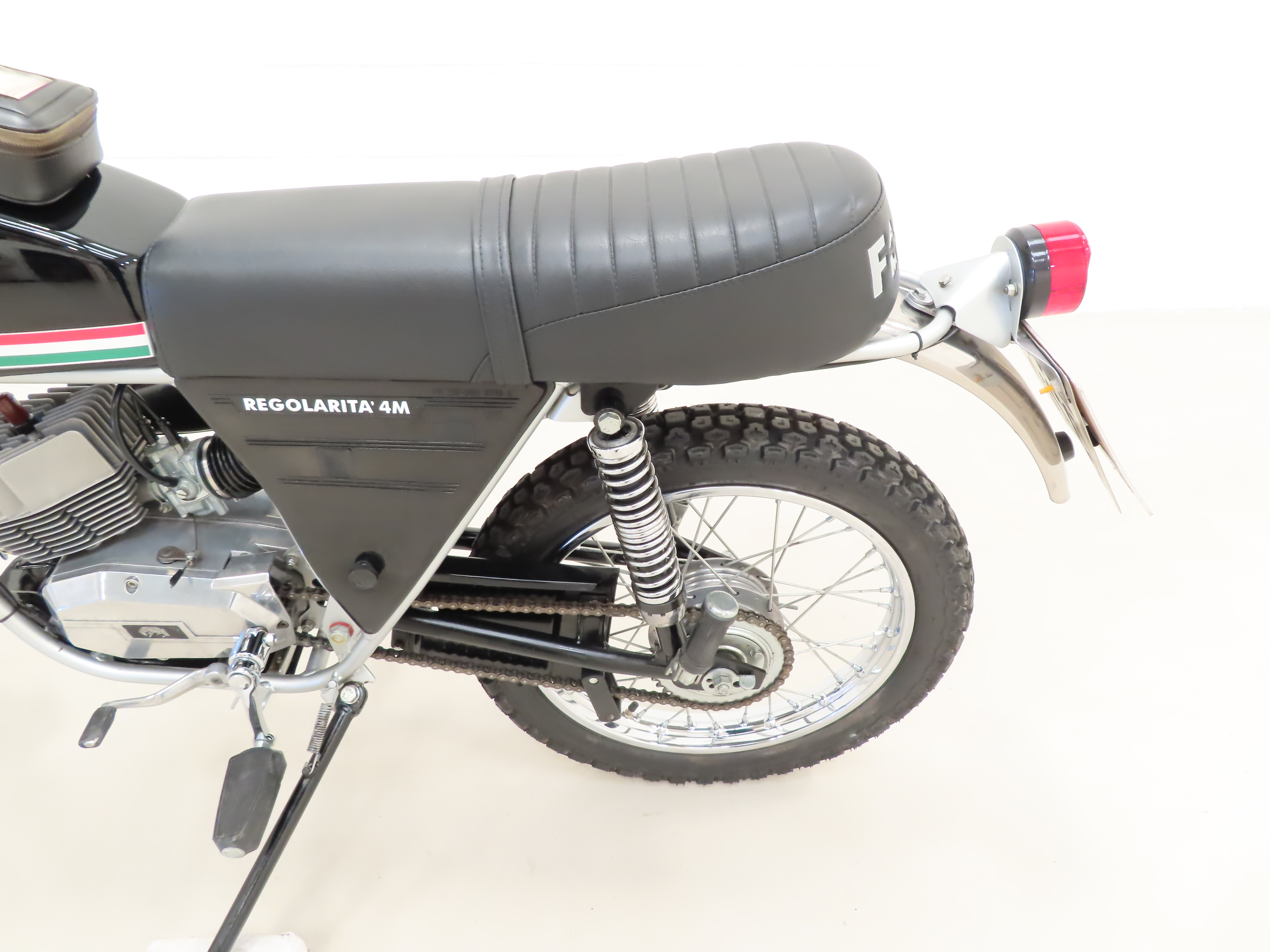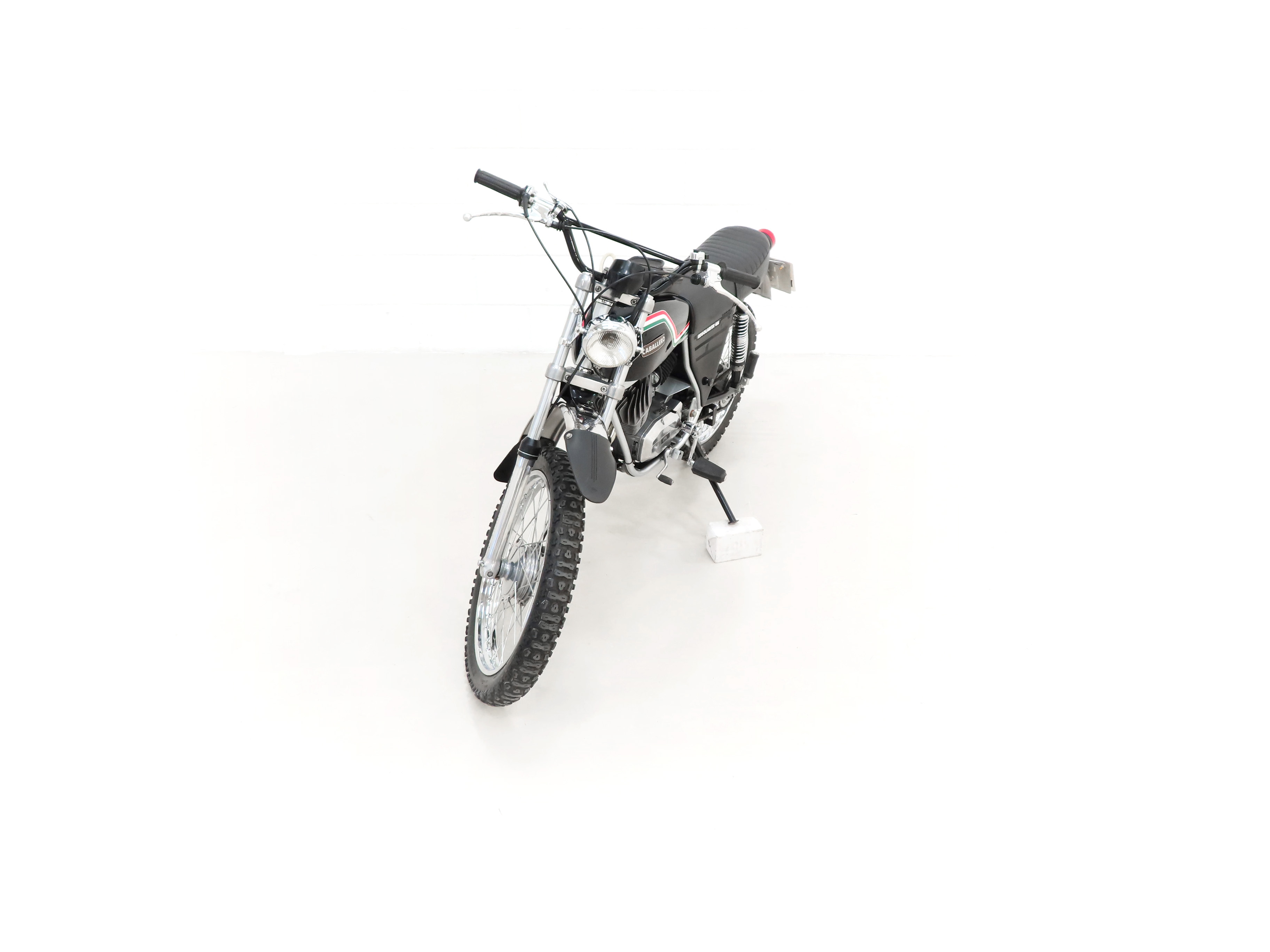 A UK registered bike from new, this desirable 1975 Fantic Caballero is a splendid example of what was regarded as probably the best Sports Enduro mopeds available at the time. The tubular steel frame has is in excellent condition with frame number and model designation numbers clearly visible. The fuel tank boasts a deep polished shine and with perfect Italian flag colours decals and side badge, and the genuine tank pack with running in/maintenance instructions is a lovely period feature, most having been lost! The front hydraulic dampers are in fantastic condition with the Fantic logo perfectly engraved. The original dual seat with pillion strap and Fantic Motor embossed logo is amazingly well preserved. The A marvellous looking machine throughout with an abundance of genuine parts and fittings.