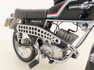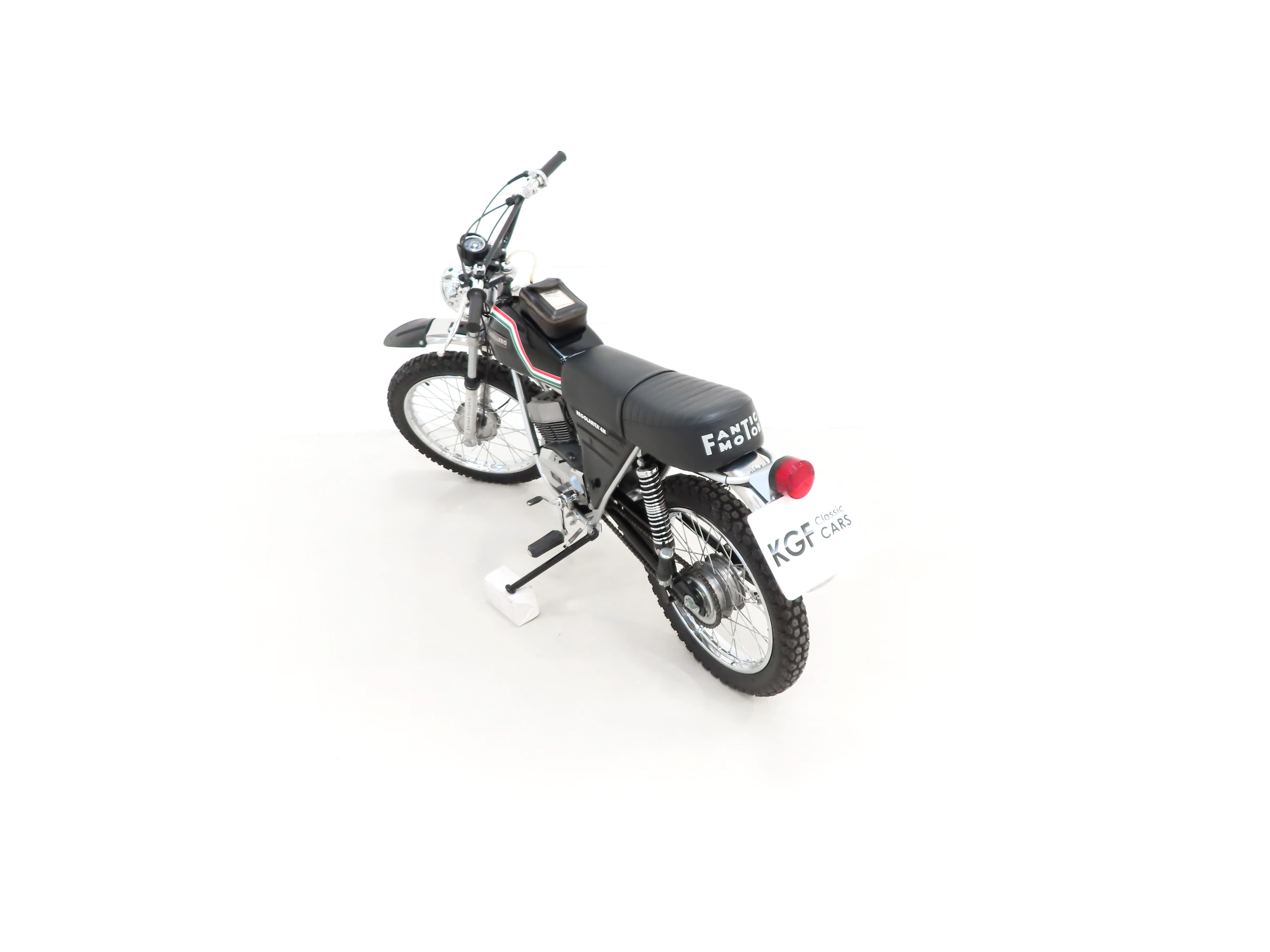 On the 15th December 1971 the Tory Transport Minister, John Peyton, changed British two-wheeler licensing regulations and the infamous ‘sixteener law’ forced all 16-year old motorcyclists onto mopeds. The law was intended to force novice bikers onto 50cc shopping bikes and reduce accident statistics but demand remained and manufacturers produced more powerful models. Equipped with pedals, added as a token gesture to comply with the law, the sports moped arrived dubbed ‘sixteener specials’. One such importer was Fantic Motor created in Barzago near Milan by Henry Keppel and Mario Agrati circa 1968. The aim was to produce fun bikes for the USA market, they produced a successful range of mini bikes, including trikes and choppers before they set about building their first motorcycle in 1971. The Fantic Caballero 50cc and 100cc were the first bikes produced by the firm, indeed one of the first enduro mopeds and regarded as probably the best. It was faster than just about all other sports mopeds on the road with a noisy and distinctive hammering sound, although was also considered smooth, comfortable, and stable.