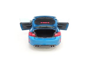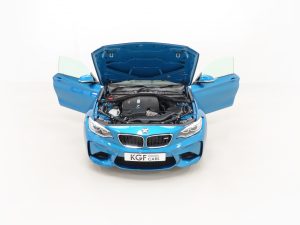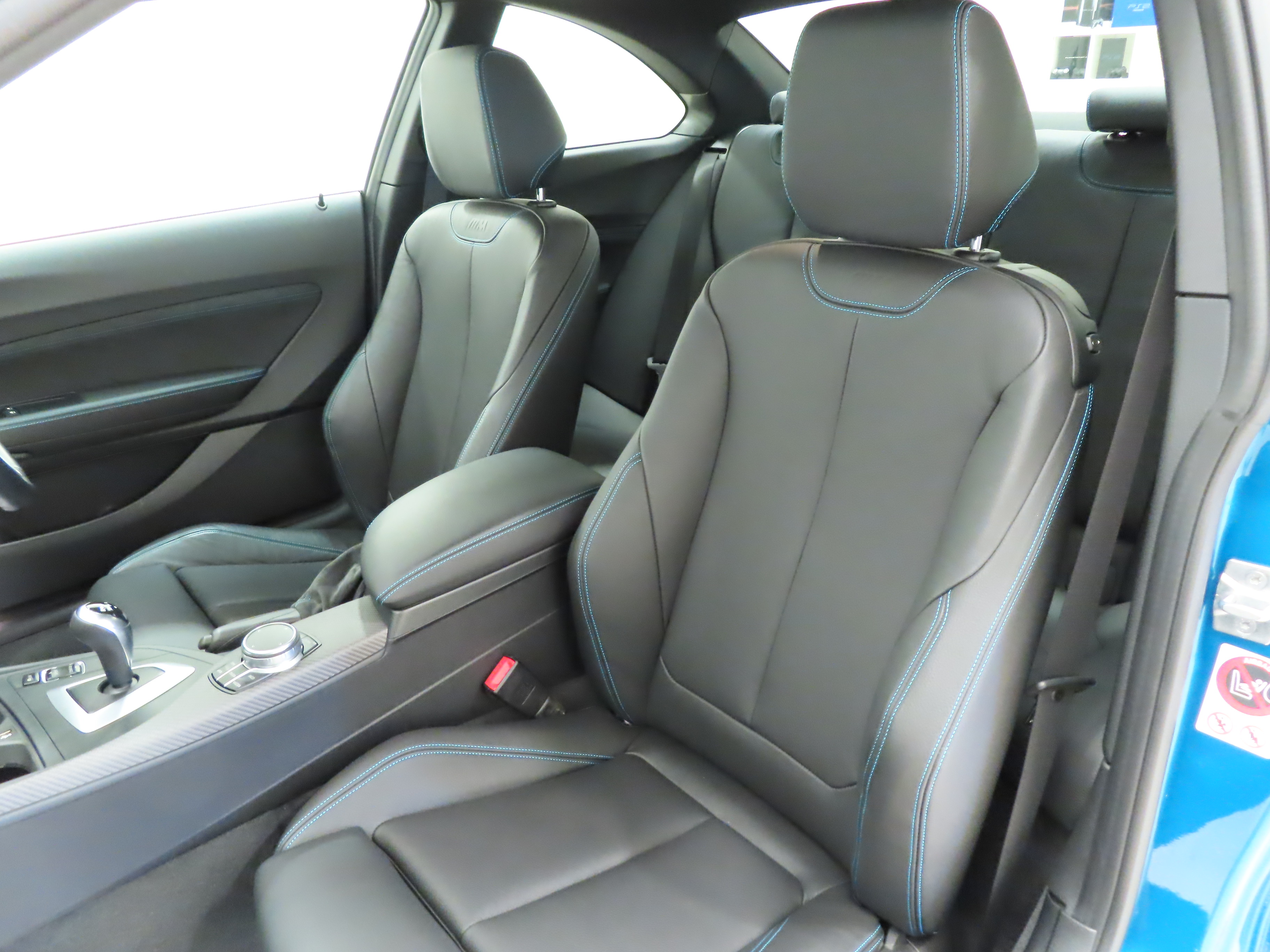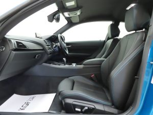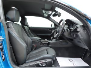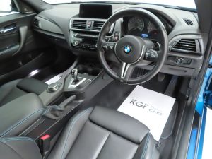 This cars design is as jaw-dropping as its performance. From the three-way air inlets to the sculpted side sills and muscular wheel arches giving it a confident stance, it really dominates the road. Finished in the iconic launch colour of Long Beach Blue, (Code C16), the finish is impeccable and commensurate with the miniscule 350 miles. The Black High-gloss double slats to the M kidney grill proudly displaying the M2 badge is unmarked along with the rest of the dynamic M-style front end with no chips. All wheel arch apertures are spotlessly clean along with the underside still with delicate labels and stickers intact. Supplying dealer number plates and rear screen sticker remain attached. This really is new car factory perfection and one for the purist without having to pay the £51,791 new price!