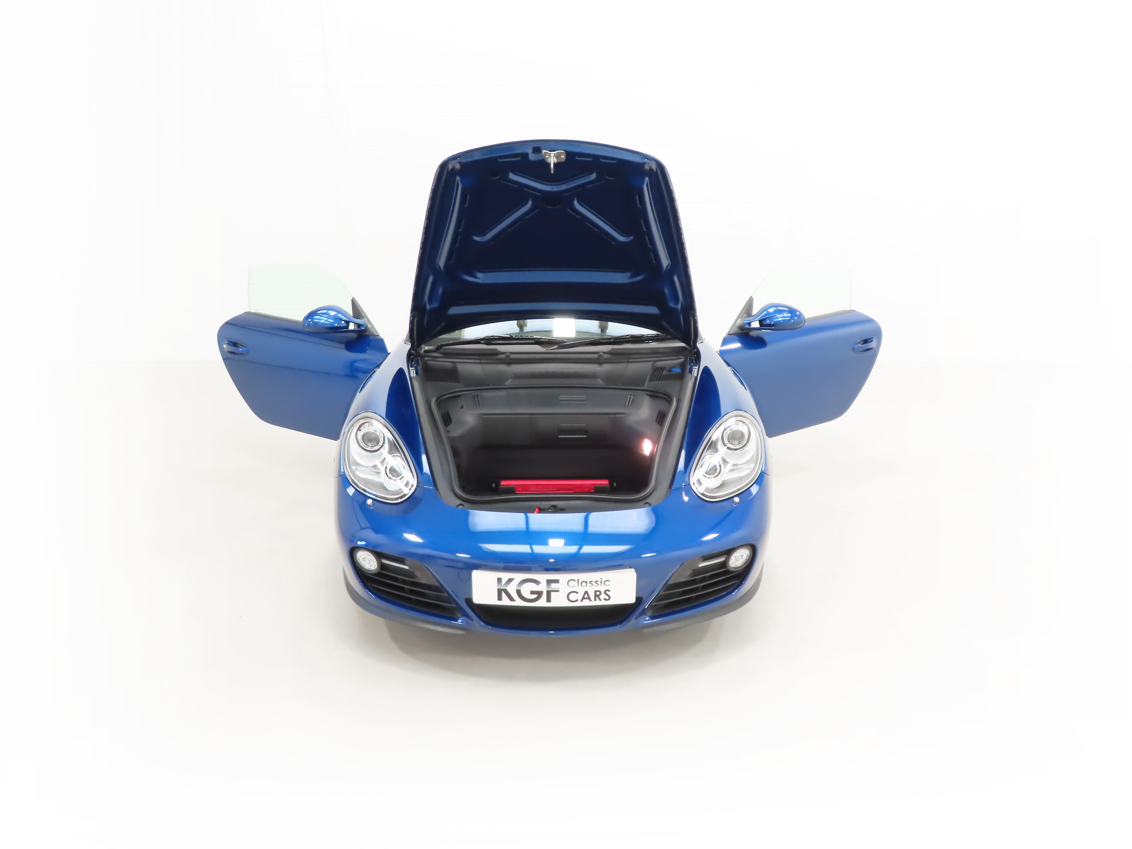 This beautiful Porsche 987 Cayman has covered just 16,221 miles from new and is finished in cost optional and stunning Aqua Blue metallic, (Code LM5R). This exhilarating colour boasts an electrifying vibrant shine to the gorgeous pin-straight bodywork and curvaceous lines. Only very minor imperfections extend to nothing more than a few very light stone chips carefully touched in. All trim sections and badges are bright with the centrally positioned tailpipe in stainless steel making an imposing statement. Supplying Porsche dealer number plates and Porsche sticker to the rear screen remain. A fabulous, low mileage example of the desirable first incarnation Porsche Cayman.