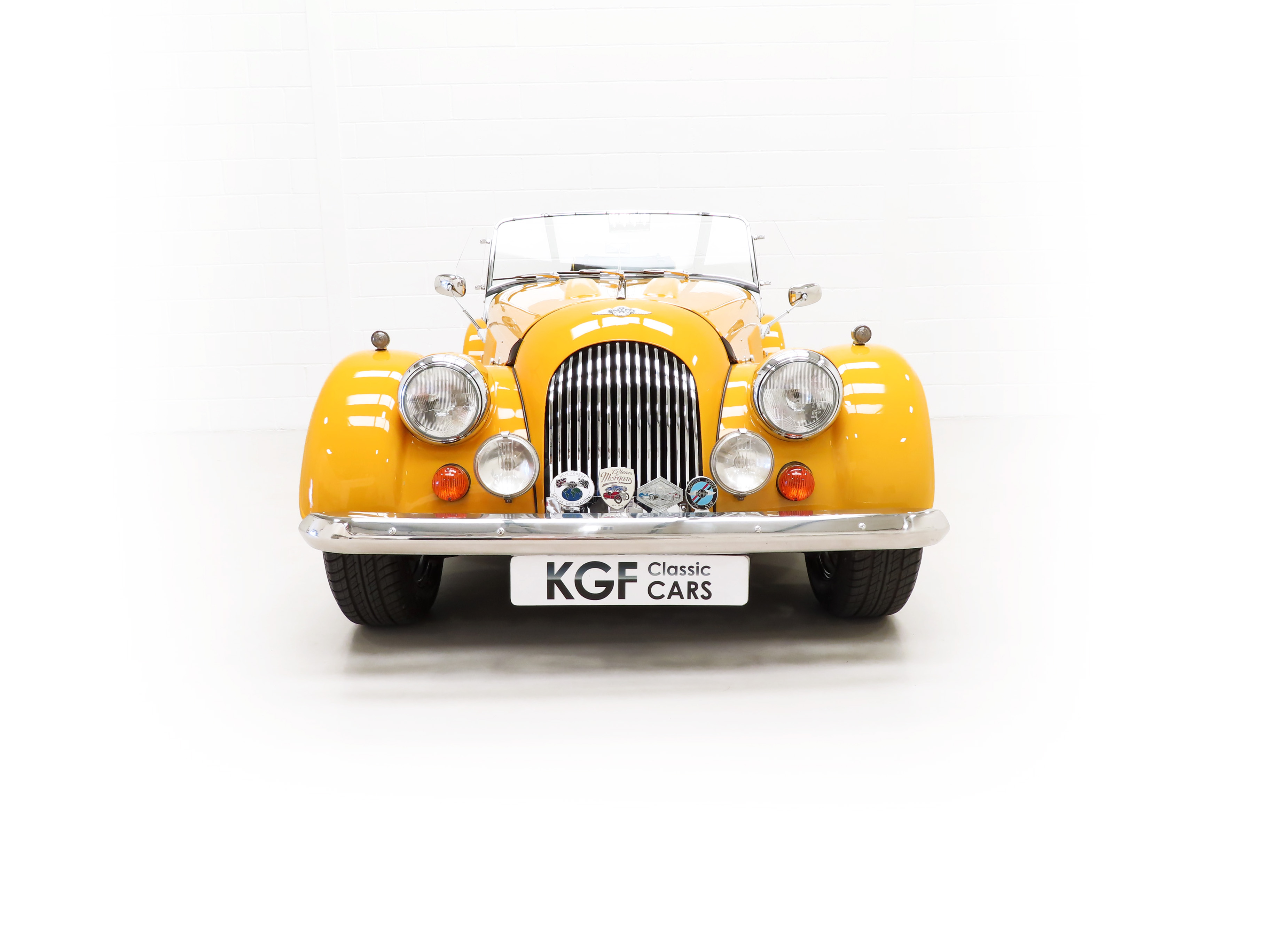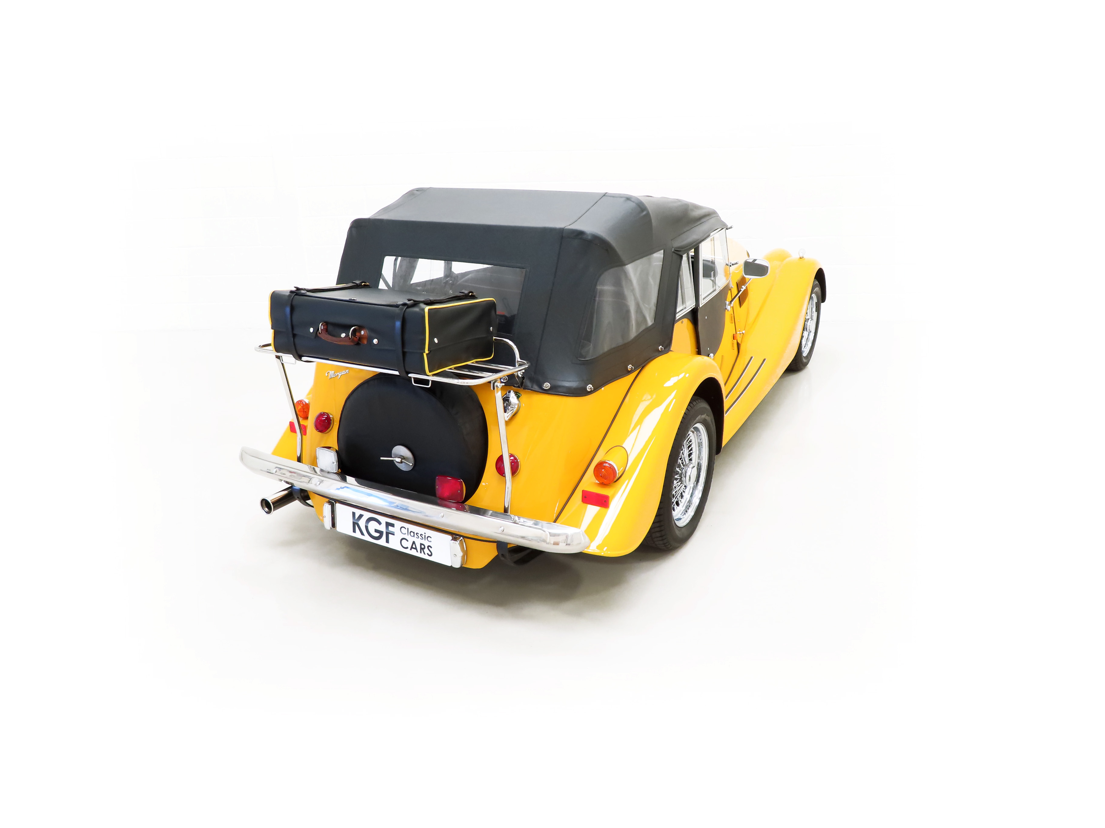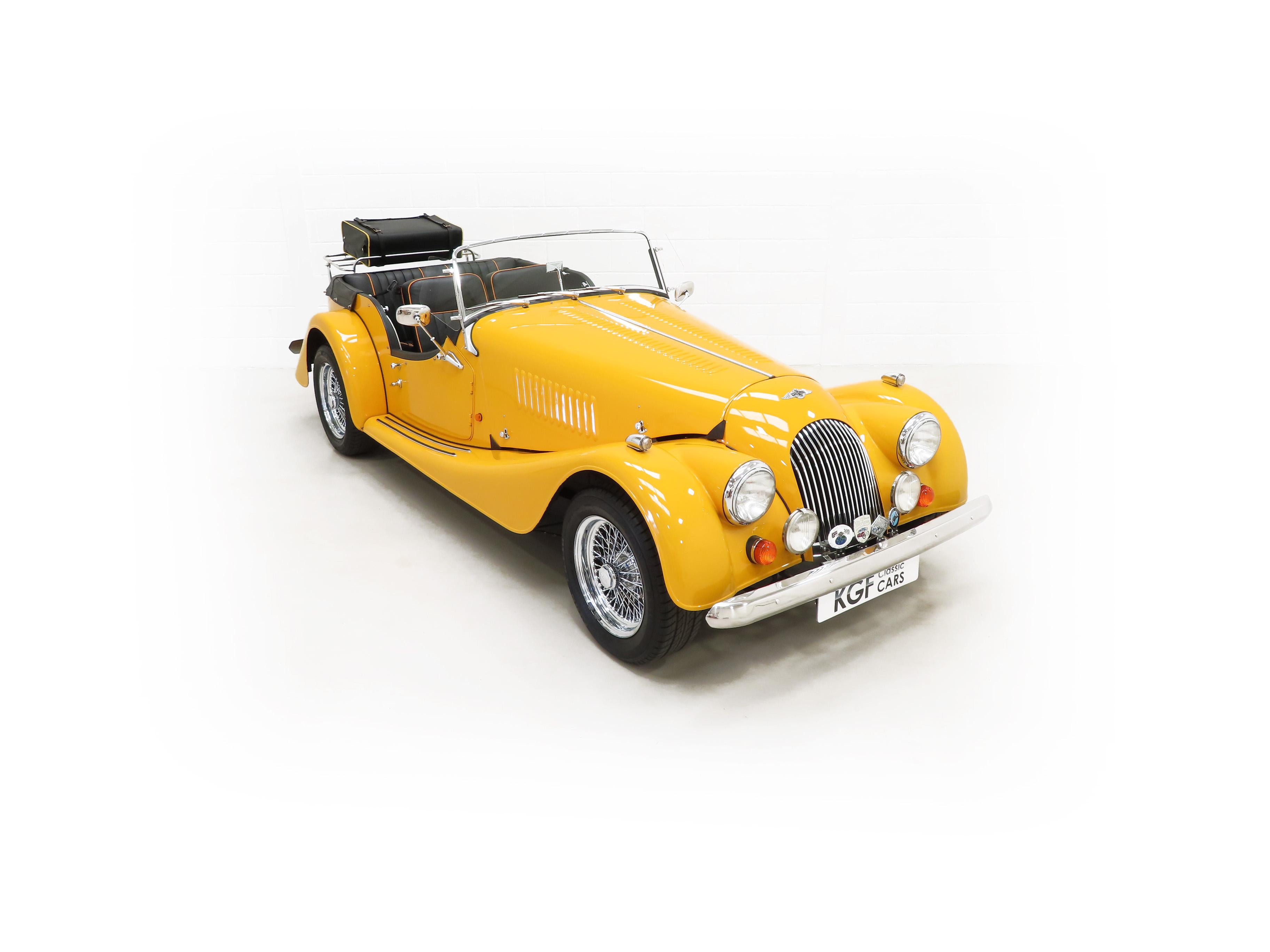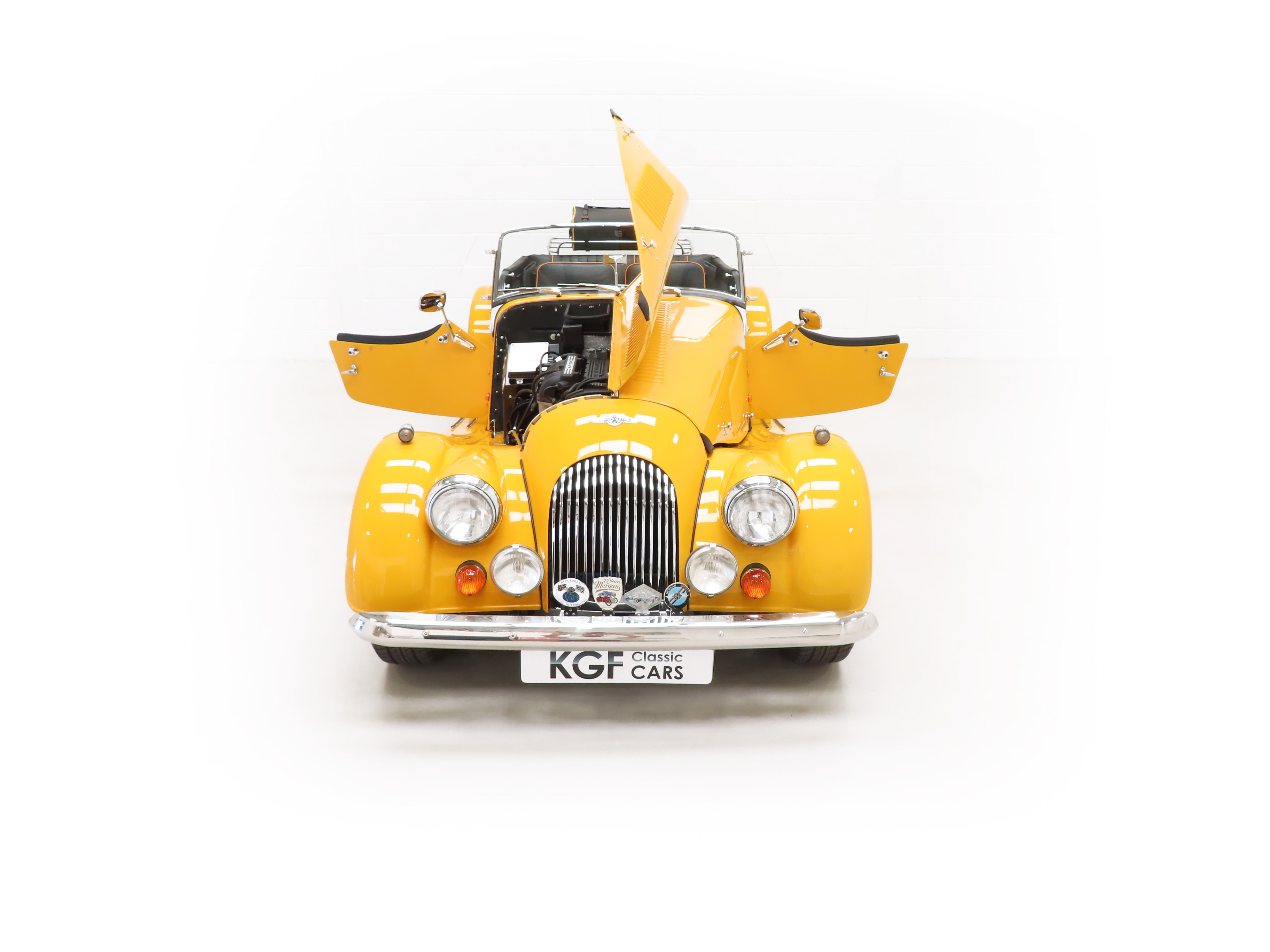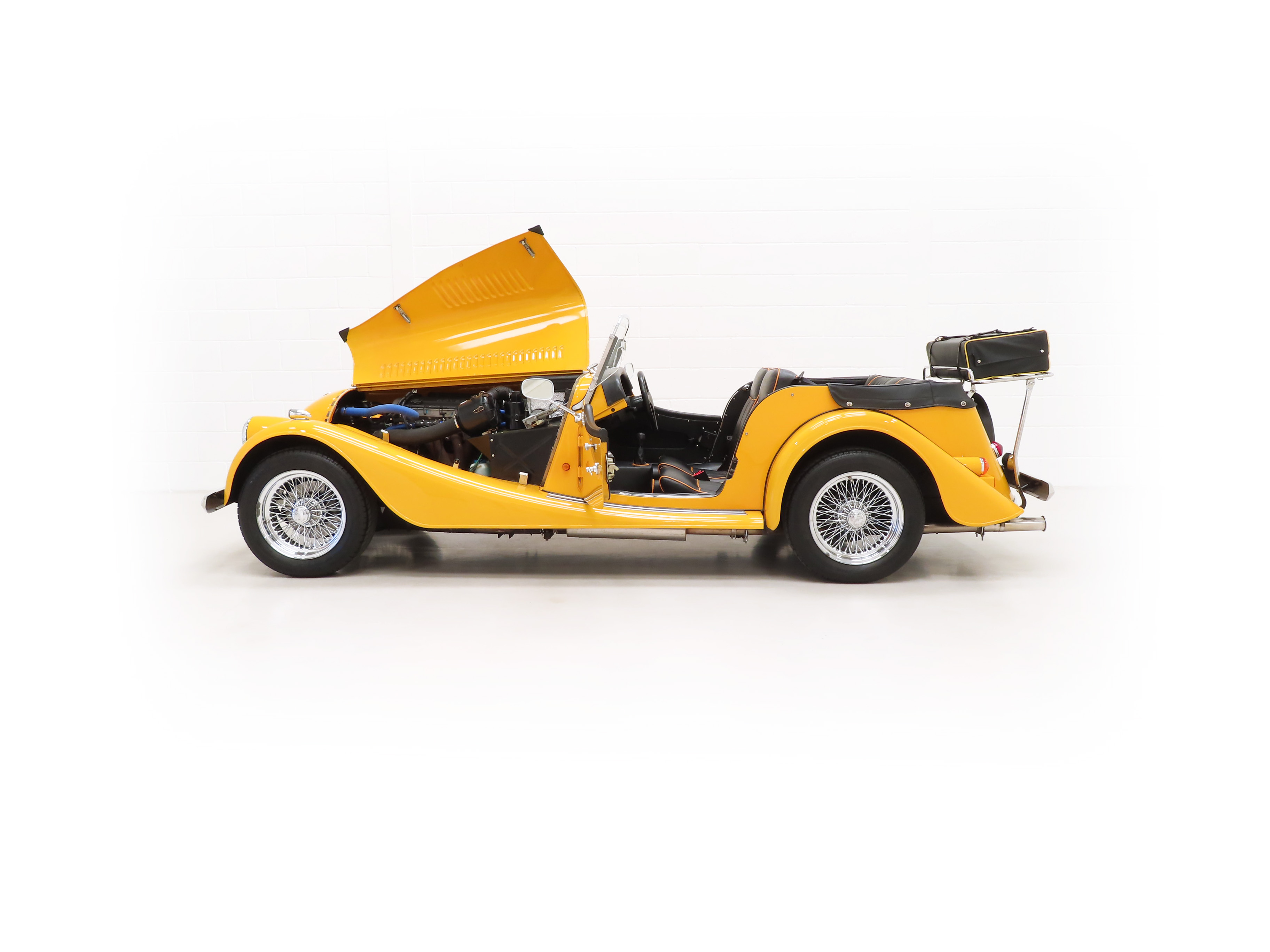 This hand-built British sports car has a unique character that conjures up a bygone motoring era and is certainly not to be missed in the vibrant colour of Golden Yellow, (Code 0456), a factory optional special colour chosen from the ICI Autocolour range. A one owner example having covered just 5,957 miles from new, this pristine Morgan has been garaged from new and used in dry conditions. The paintwork is stunning and all hand-built body panels creating the iconic Morgan shape are perfect with a few touched-in chips. The chassis, ash frame and underside wear factory applied protection to ensure complete preservation. The hood too is factory fitment, and all tonneaus, clips, screens and fasteners are fully intact to offer flawless all-weather protection. Skilled traditional coachbuilding at its best from one of Britain’s oldest car manufacturers, still under stewardship of the fourth generation of the Morgan family.