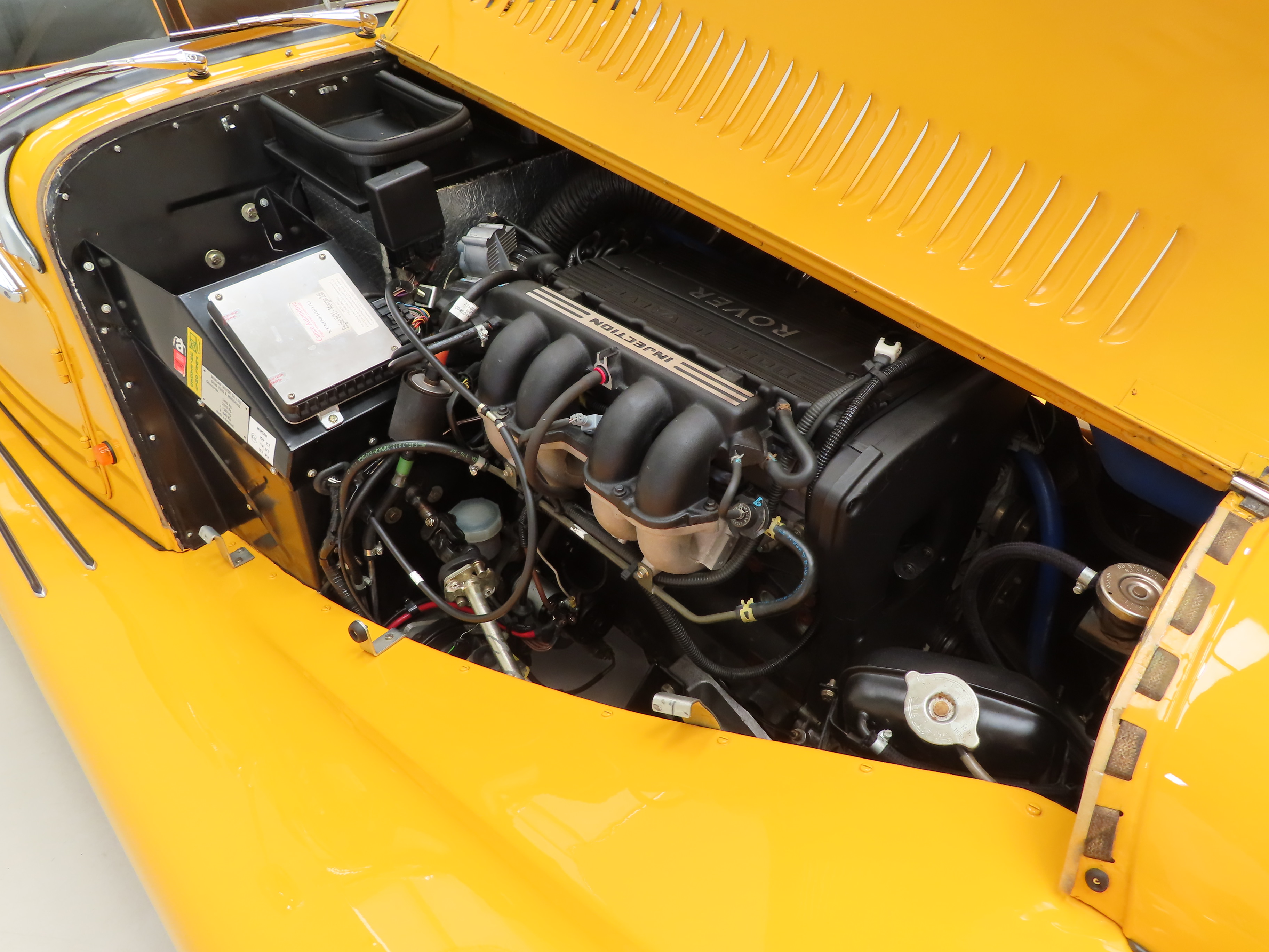 Being a 1998 model, this Morgan is fitted with the proven Rover T-Series 1994cc engine. Producing 134bhp at 6000prm in a car weighing just 1,000kg, the car feels spirited with a throaty exhaust rasp from the original stainless steel exhaust system. The traditional central spine hinged bonnets wear genuine Morgan Leather bonnet corner-edge protectors and lift to reveal a beautifully clean engine compartment. The 5-speed R380 gearbox with a single dry plate clutch is precise, light and progressive.