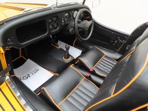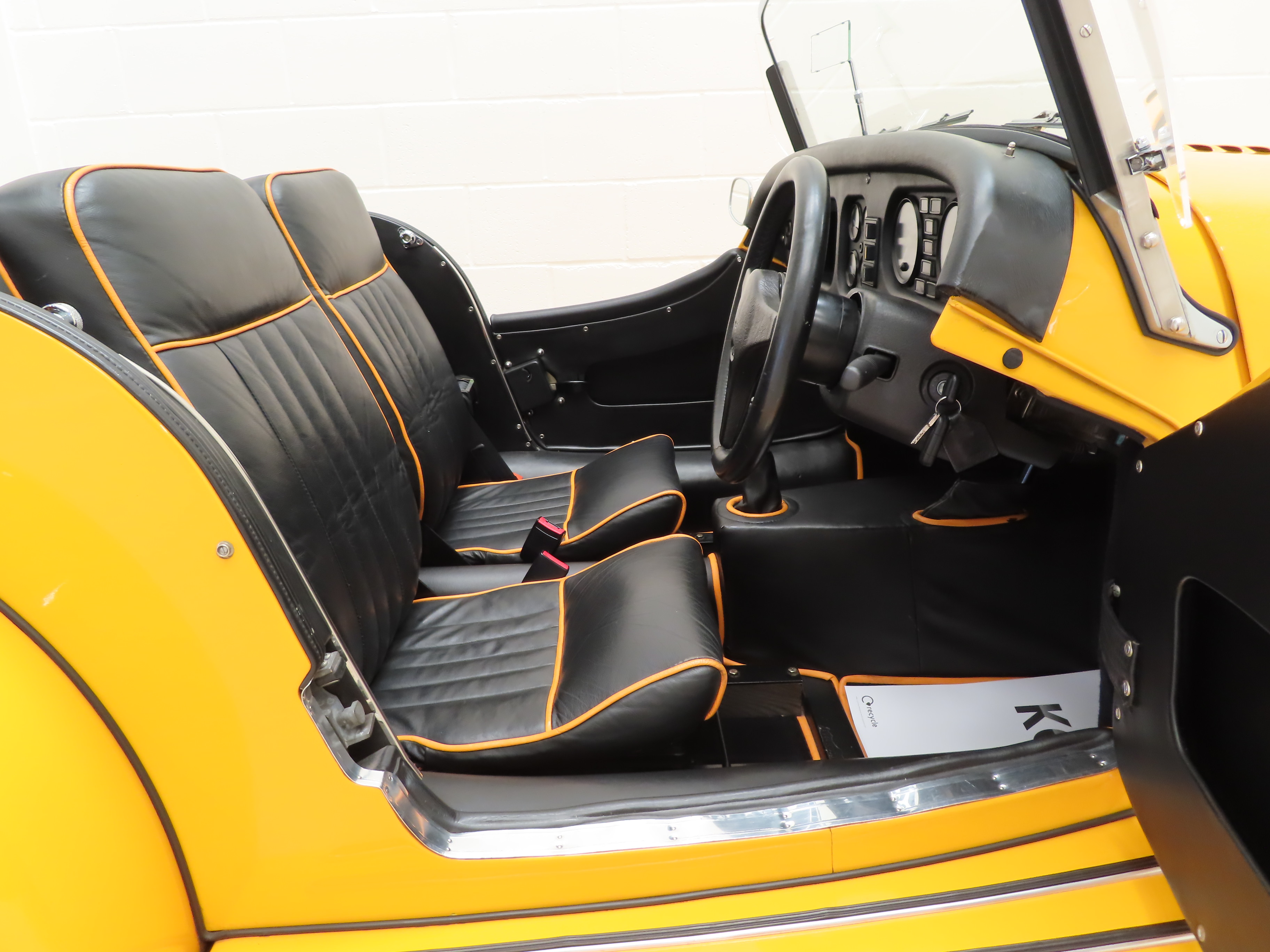 Once in the cockpit the driver is treated to an overwhelming sense of involvement only possible in a traditionally hand-built Morgan. The one and only owner specified optional Black HB/PAC leather upholstery with Yellow leather piping to the seats and carpets with leather trimmed dashboard and switch panel, also factory optional. In line with the minuscule mileage, the sumptuous hide is pristine and carpets remain plump. All interior trim is virtually as new and interior functions, controls and gauges perform impeccably. A classic British sports car cockpit.