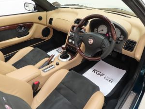 The original four-cylinder 1796cc 16-valve all alloy engine produces 136bhp at 6750rpm and 165Nm torque at 5000rpm enabling a top speed of 127mph and 0-60 in just 8.2 seconds. The mid-mounted engine and rear wheel drive configuration display all the correct sports car credentials to ensure optimum driving enjoyment and exhilaration! The short throw sports ratio five speed gearbox completes the package and to drive a super-low mileage and unmolested example is something many MG TF owners can now only imagine.