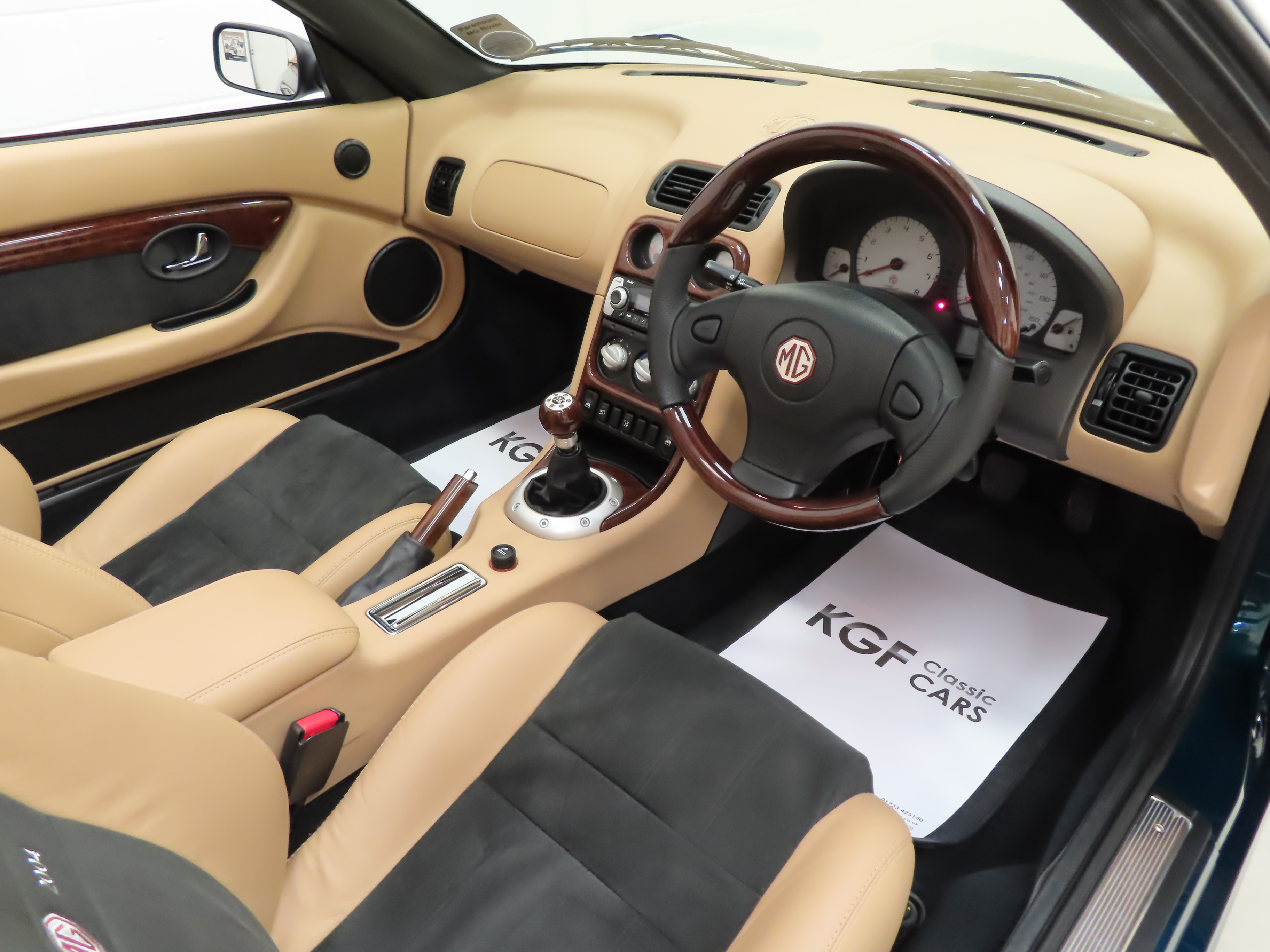 The Black Alcantara & Tan leather upholstery, (Code PVF), having covered just 3,375 miles is beautifully preserved. The flawless Tan dashboard houses fully functioning switchgear and original stereo. Real wood accents to the chunky leather steering wheel, gearknob and handbrake grip are traditional MG and all touch points show no wear. Over mats have protected the carpet since new and the owner even kept the dealership paper mats from when he collected the car in the showroom are present! A surprisingly large rear boot is pristine and the spotless front compartment displays PDI dabs and all factory plates and stickers fully intact with no patina. The Limited-Edition badge between the seat proudly declares this car as number 1351 of 1600.