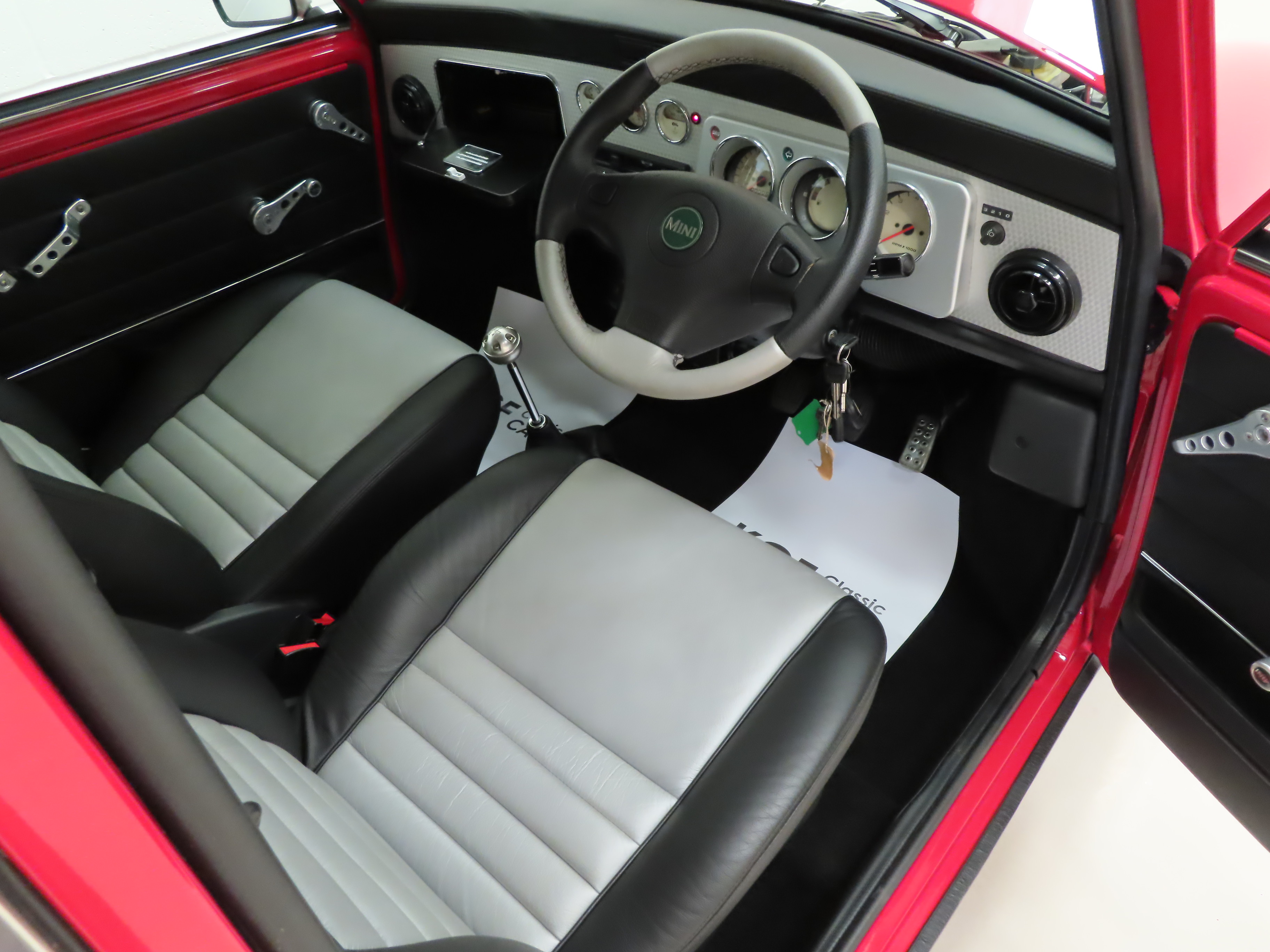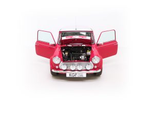 These late Mini Coopers were lavishly trimmed, particularly so in the final ‘500’ celebration model. The full leather interior in Black and Nickle Silver, (Code WNP), is in showroom condition. Thankfully, this incredible example has remained in perfect ambient conditions away from elements such as UV light. As importantly, the metal plaque fitted to the inner glove box lid states, ‘This Mini is one of the last 500 built to the original Sir Alec Issigonis Design’. As new.