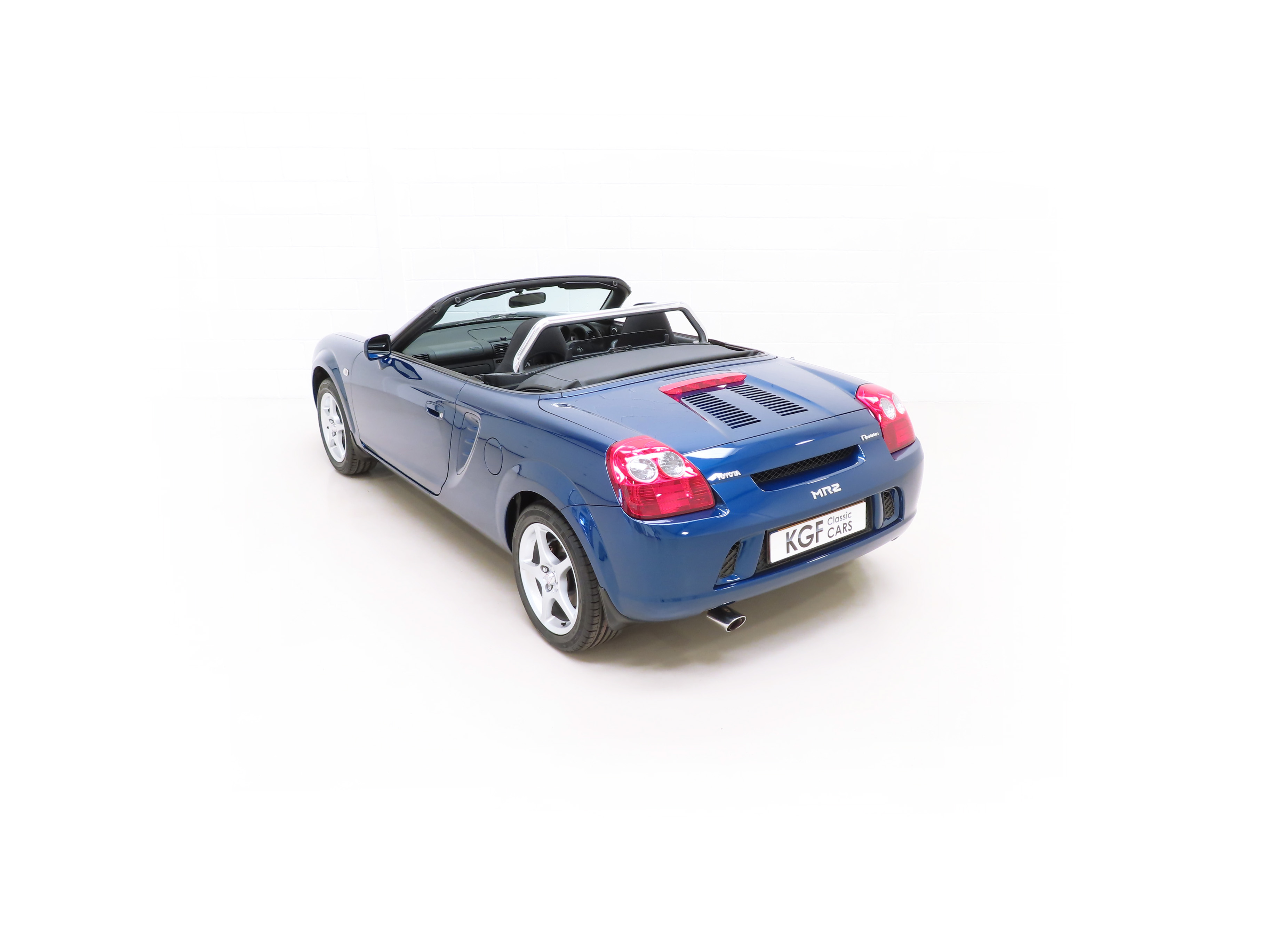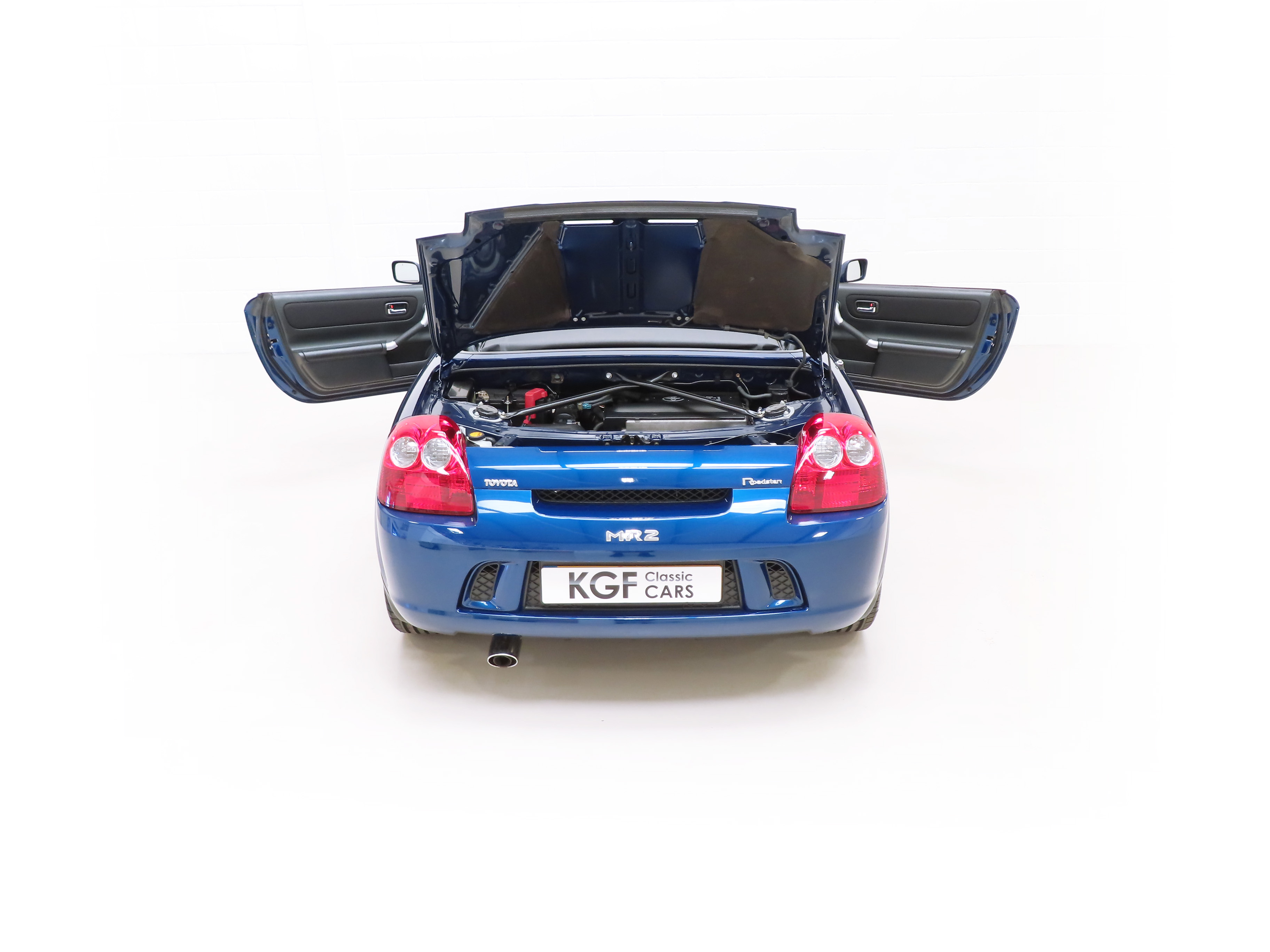 Equipped to impress even the most demanding of drivers, the supportive sports seats are finished in unmarked Black Malibu cloth, (Code FA20). The interior of this miniscule mileage example will satisfy the perfection seeking collector with all trim, touch-points and materials factory fresh. Chrome handles and aluminium sports pedals visibly enhance the MR2 Roadsters sporty appeal. Standard in every respect from the RDS radio CD player to the genuine Toyota rubber floor mats protecting the carpeting, it really is difficult to fault.