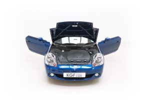 This highly responsive, mid-engined, rear-wheel-drive roadster delivers outstanding performance with its 1.8 litre VVT-i, (Variable Valve Timing with intelligence), technology. Producing 138 bhp at 6,400 rpm in a car weighing just 990kg is a formidable package with performance figures quoted at 131 mph top speed and 0-62 mph in 8.0 secs. The power can be fully exploited with a six-speed close ratio manual transmission offering slick and rapid gear changes. Lifting the rear engine cover will delight the crowds if the proud new owner enjoys the show circuit.