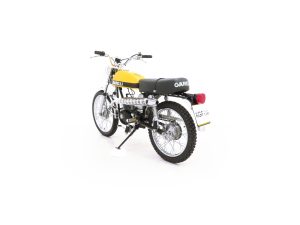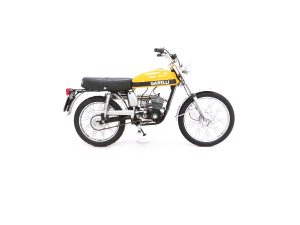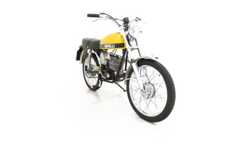 In 1912, Italian engineer Adalberto Garelli designed his own two-stroke engine and achieved national and international success. Garelli sports mopeds were imported into Britain by Agrati Sales (UK) Ltd and the first models were the Rekord and Tiger Cross being one of the fastest at the time reaching speeds of 60mph. The MkII was introduced in 1975 and prominent differences from the MkI included thinner tank side decals, black engine casings, ‘fantail’ engine cooling fins, thinner grips to replace the melon type, slightly altered seat and rear shock absorbers. Pogo front forks from the later MkI’s were carried over to the MkII. Of all the bike manufacturers that formed 1970’s Sports Moped phenomenon, the Garelli’s were up on the podium alongside the Yamaha ‘Fizzy’ FS1-E’s as the archetypal Sixteener specials.