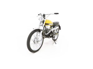 This fantastic Garelli Tiger Junior Cross MkII Moped was UK registered from new with a registration date of the 24th February 1975. Incredibly, there are just two recorded keepers from new. The previous owner purchased the bike some years ago where it has since been displayed in his mancave showroom amongst an impressive collection of Yamaha ‘Fizzy’s’, Gilera’s, Garelli’s and several classic cars. An original handbook is included in the history file. This collector’s bike has only now been made available by the downsizing of the owner’s collection and although fully operational a full recommission is advised for regular use.