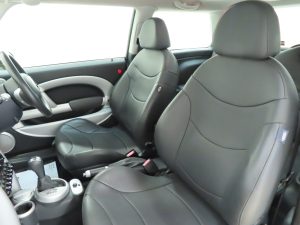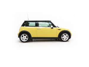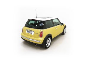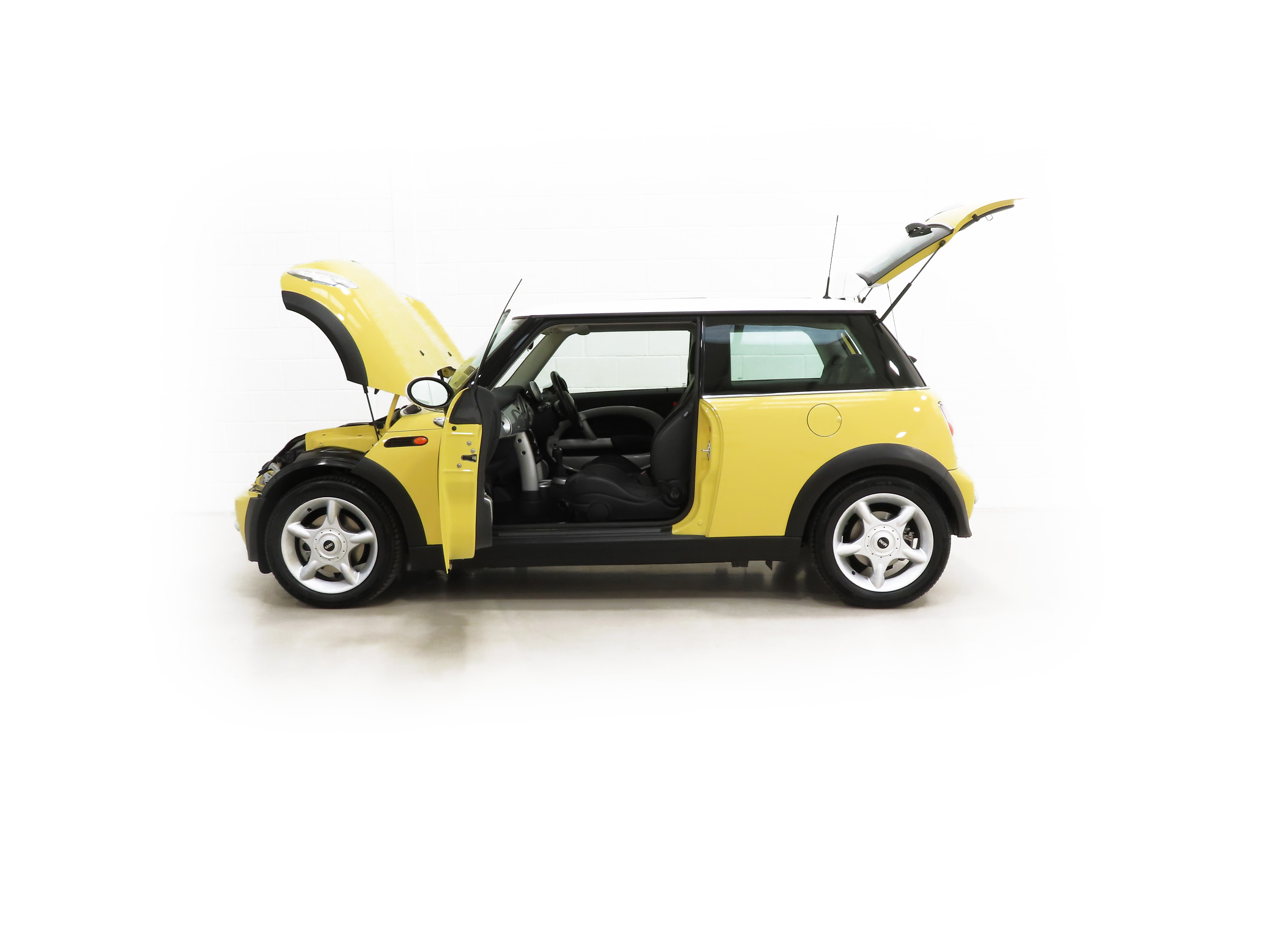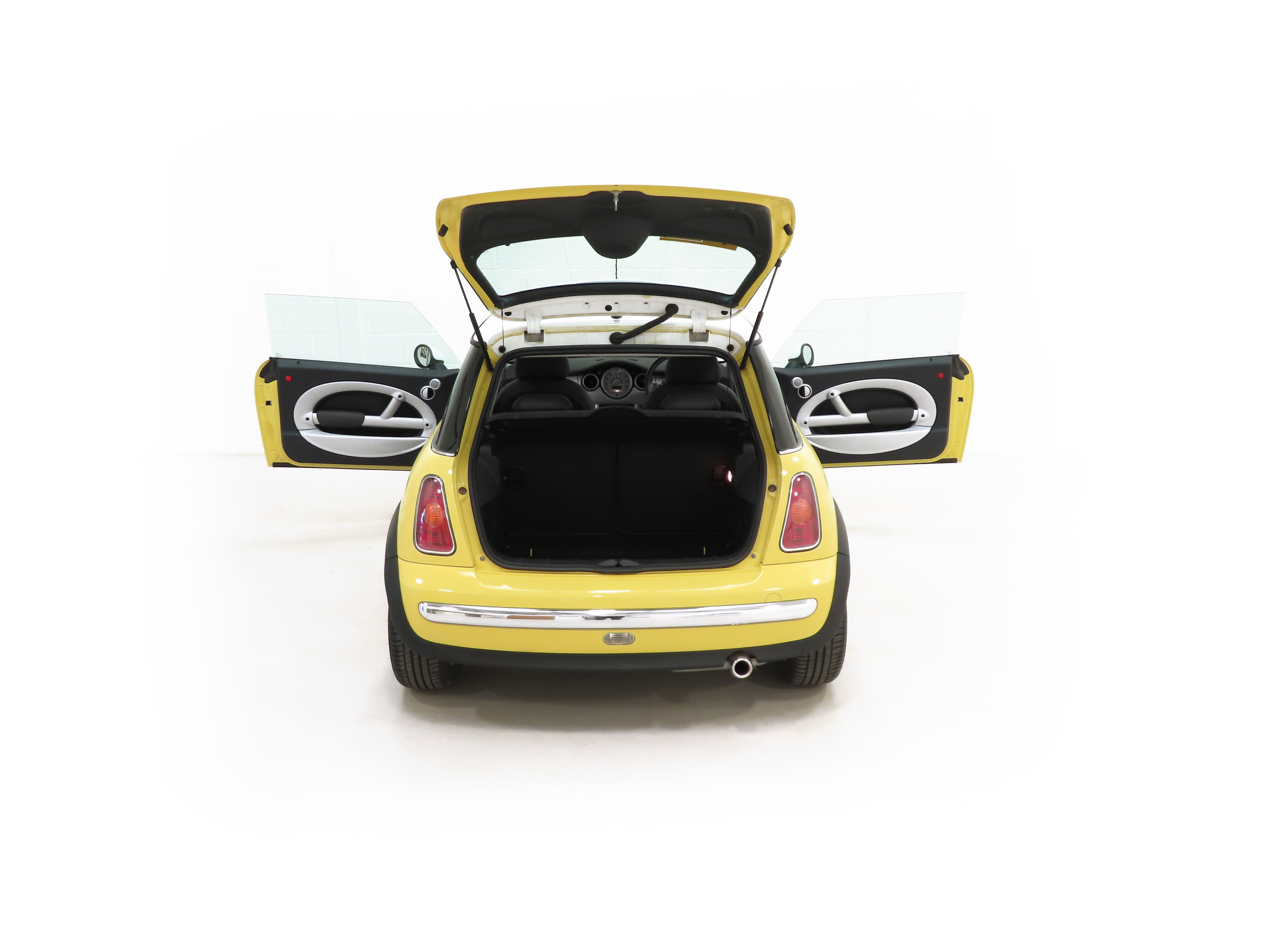 Chrome-plated radiator grille frame and slats, 55mm chrome-plated exhaust pipe, chrome door handles, tinted windows, rear headrests, 12v socket in boot, electric window control with radio key, remote central locking, car memory. Factory Options: Liquid Yellow paintwork, roof and door mirror caps in White, electric panoramic glass sunroof, automatic transmission with Steptronic, ASC+T, Profile leather seats, adjustable lumbar support to front seats, air conditioning, trip computer, single CD player, radio boost. Chili Pack: Bumpers with chrome inserts front and rear, front fog lights, rear roof spoiler in body colour, Sports Suspension PLUS, 5-star light alloy wheels, sports seats, leather steering wheel, velour floor mats, storage nets in back of front seats, height adjustable passenger seat, Brilliant Silver interior trim, revolution counter, interior light package. Dealer Accessories: Mini all-weather rubber gearmats.