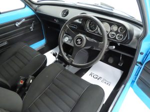 This rare RS2000 has the 2.0 Ford ‘Pinto’ unit performing faultlessly. Set up and dyno tested by HT Racing Ltd, the 100bhp is confirmed to allow a claimed top speed of 110mph and 0-60mph in 9 seconds. The immaculate engine bay is detailed to a high standard for those wishing to exhibit the car with the bonnet up. The original VIN plate and AVO build plate are a welcome sight and prove the cars specification when built at Aveley and the chassis stamp can be seen on the inner wing. Short snappy gear changes are provided by the factory standard Ford Type-E 4-speed gearbox which is an absolute delight to use.