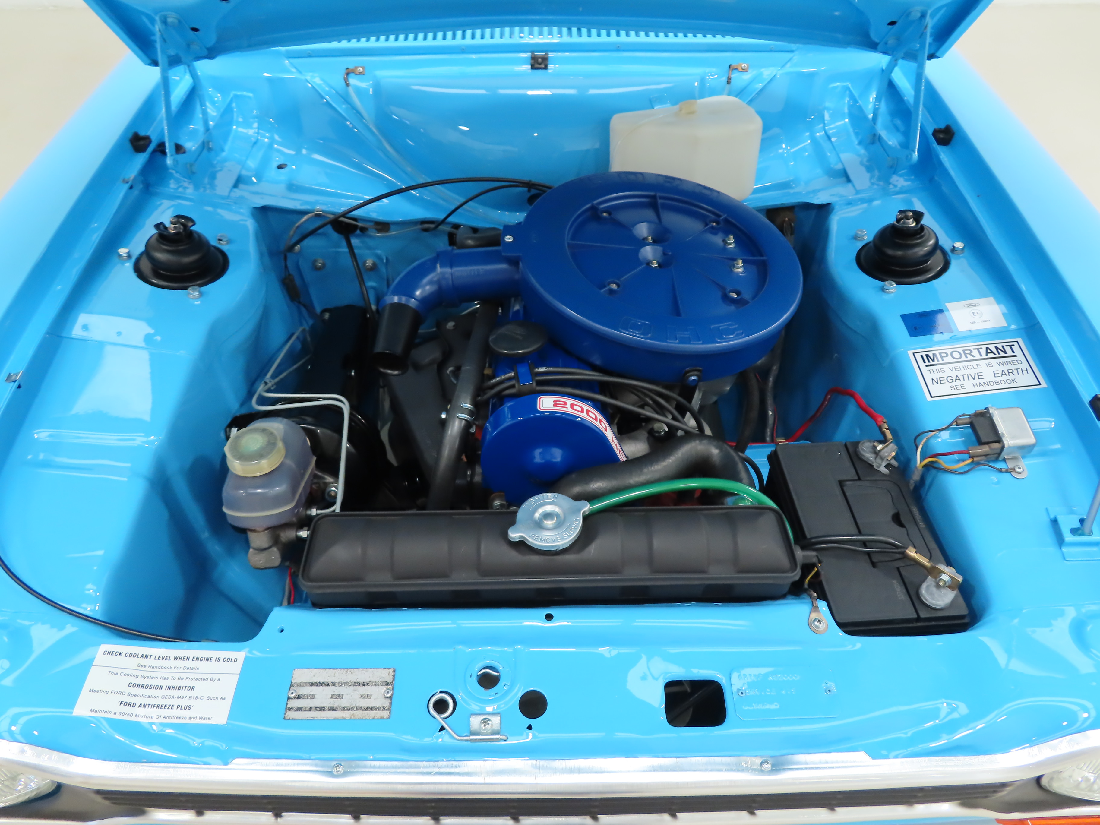 This rare RS2000 has the 2.0 Ford ‘Pinto’ unit performing faultlessly. Set up and dyno tested by HT Racing Ltd, the 100bhp is confirmed to allow a claimed top speed of 110mph and 0-60mph in 9 seconds. The immaculate engine bay is detailed to a high standard for those wishing to exhibit the car with the bonnet up. The original VIN plate and AVO build plate are a welcome sight and prove the cars specification when built at Aveley and the chassis stamp can be seen on the inner wing. Short snappy gear changes are provided by the factory standard Ford Type-E 4-speed gearbox which is an absolute delight to use.