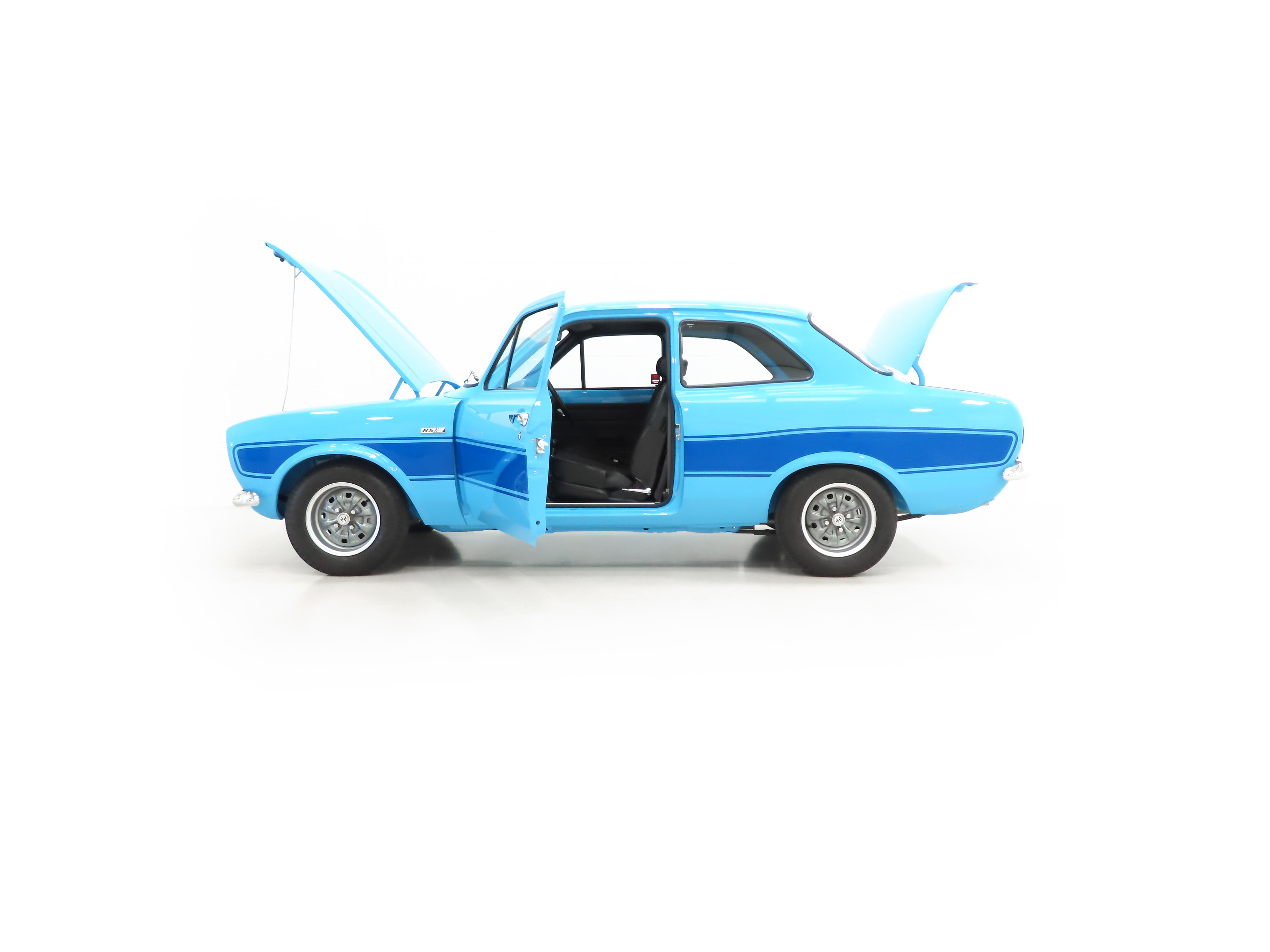 The Rallye Sport Escorts built by Ford Advanced Vehicle Operations were practically handbuilt and this rare Ford Escort RS2000 is one of the few remaining genuine survivors. Finished in desirable Olympic Blue, (Code E), the appearance is striking at any angle. Utilising the same competition-developed Type 49 heavy duty, 2-door body as the Escort Mexico and RS1600, the panel fit is perfect. Obvious flared wheel arches to accommodate the wide sports road wheels and Blue decals distinguish this model but perfectionists will spot the finer details such as FoMoCo lenses and IODE H4 Cibe headlights amongst many more features. For those enjoying the show circuit, the immaculate underside is finished in body colour and is factory perfect with all Type 49 body features such as the reinforced front suspension mounting points and chassis side rails clear to see. Prised from a Ford collector who has pampered this example for 14 years, you can be reassured it is one of the best!