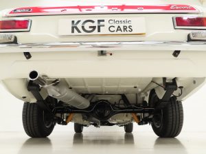 This car it is fitted with immaculate spoke-style sculptured pressed steel wheels measuring 5.5x13in finished in two-tone Silver Fox with Pearl Grey centres. RS stainless steel hubcaps have a glorious mirror finish. Firestone 175/70 R13 tyres all-round have masses of tread and a pressed steel spare is strapped and angled in the boot. Direct servo-assistance brakes run on the standard single line braking system with front calipers on solid discs and drum brakes to the rear.