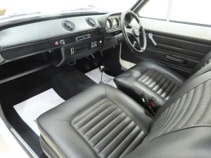 Watch as spectators will drool in amazement under the bonnet of this desirable Escort Mexico as it is so clean with labels, stickers and Motocraft service items clear to see. The four cylinder matching numbers 1600 GT crossflow unit with the 711M block is quoted in the sales brochure at 86bhp to go up to a ton with little effort and hit sixty in under 11 seconds. The original VIN plate and AVO ID plate remain fixed to the slam panel and the chassis number is visible to the inner wing. The close ratio all-synchromesh 4-speed gearbox with heavy-duty three-rail shift ensures positive changes.