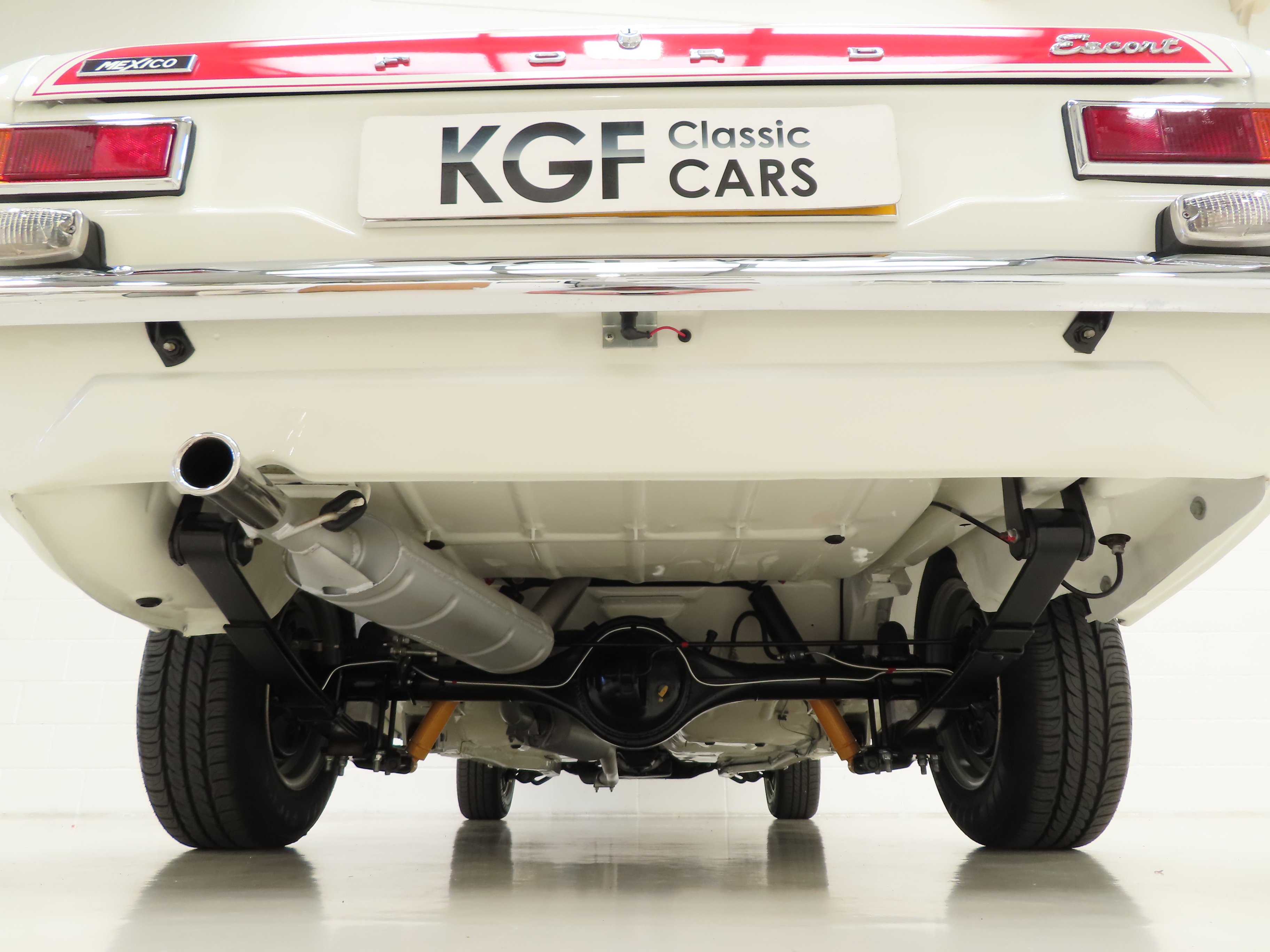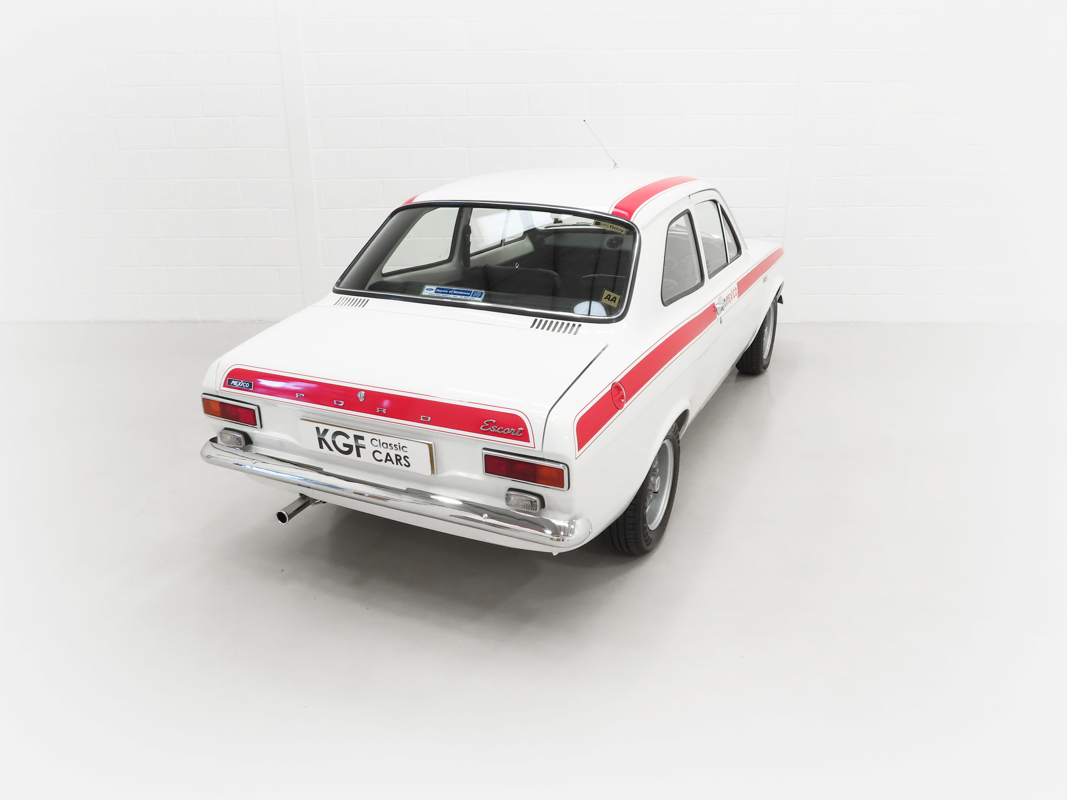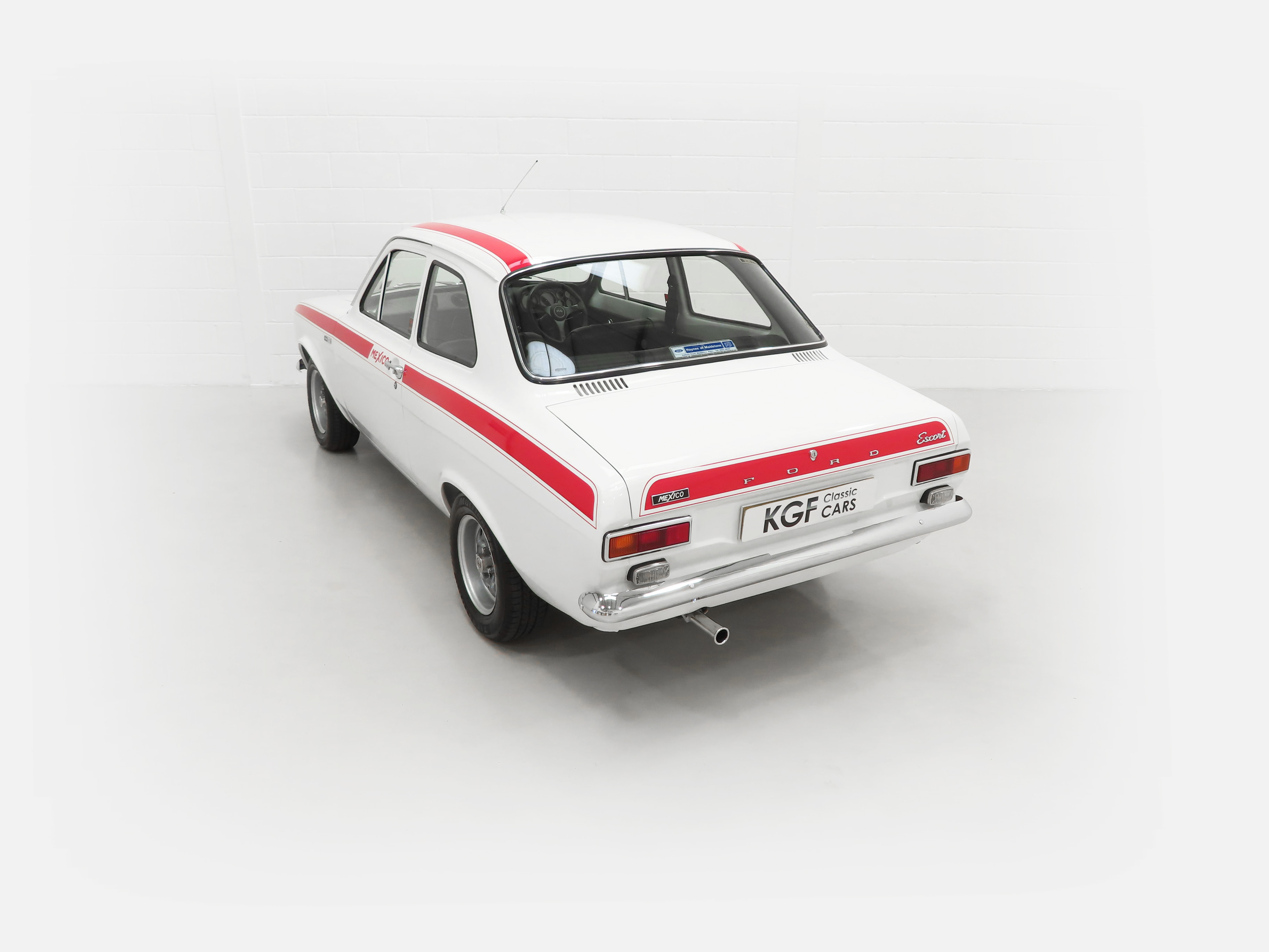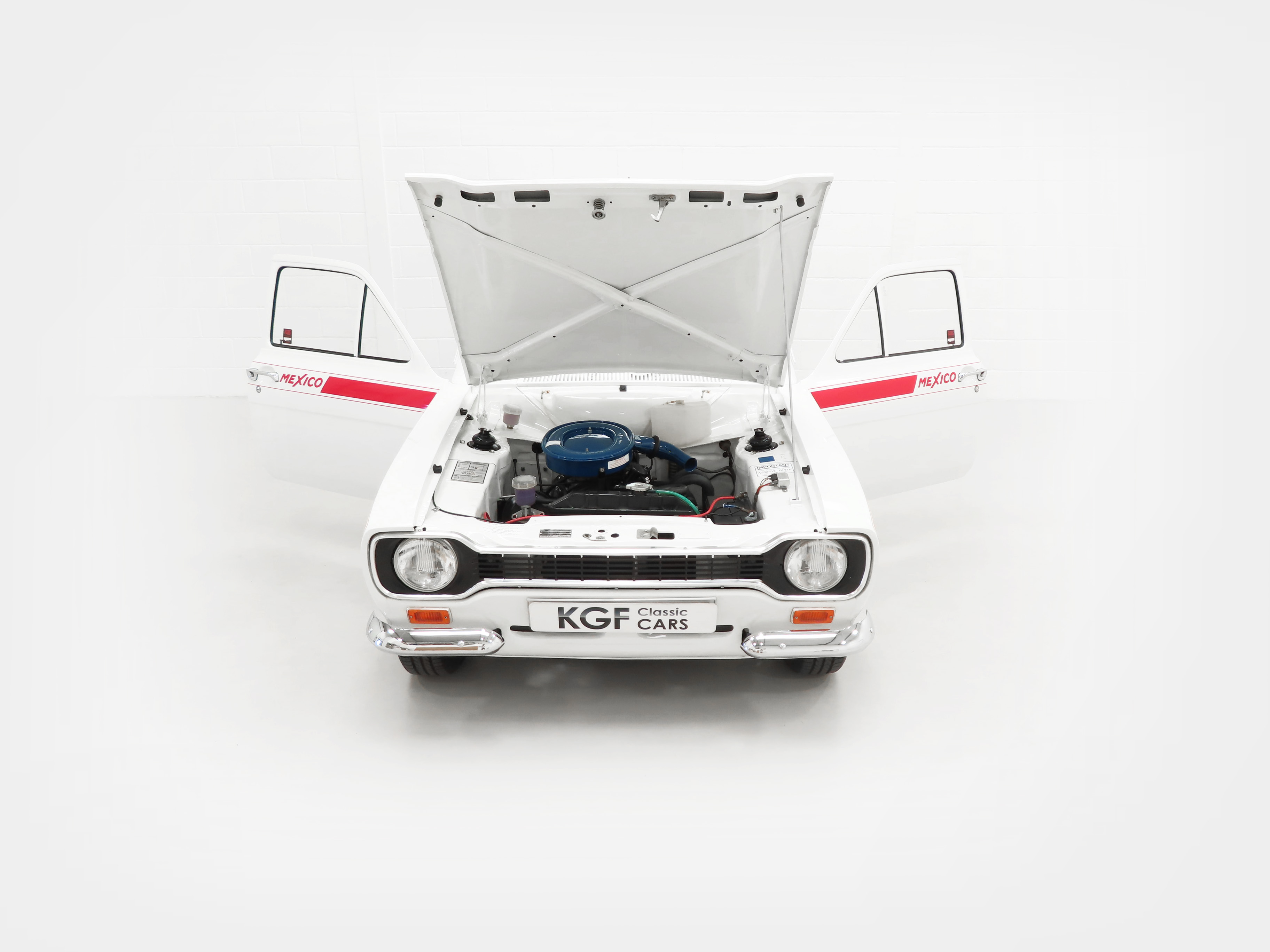 Finished in brilliant Diamond White, (Code B), this genuine Mexico is stunning with the Red Mexico decals so desired by Ford enthusiasts worldwide. Panel gaps are perfectly straight and detailing extending to the underside will please both owners and onlookers. Vital components such as the eight bolts in the boot floor and strengthened AVO workmanship are laid bare for all to see with no excess applied underseal. For those enjoying the show circuit, the immaculate underside is finished in body colour and looks amazing. The chrome, glass, and badges are in immaculate order with the glass still being Ford Triplex items and number plate etched. The original Ford front windscreen has a few minor marks but much preferred over an aftermarket replacement. Front headlights on the correct Cibie items and all lens units are factory fitted FoMoCo. This really is a Rallye Sport winner!