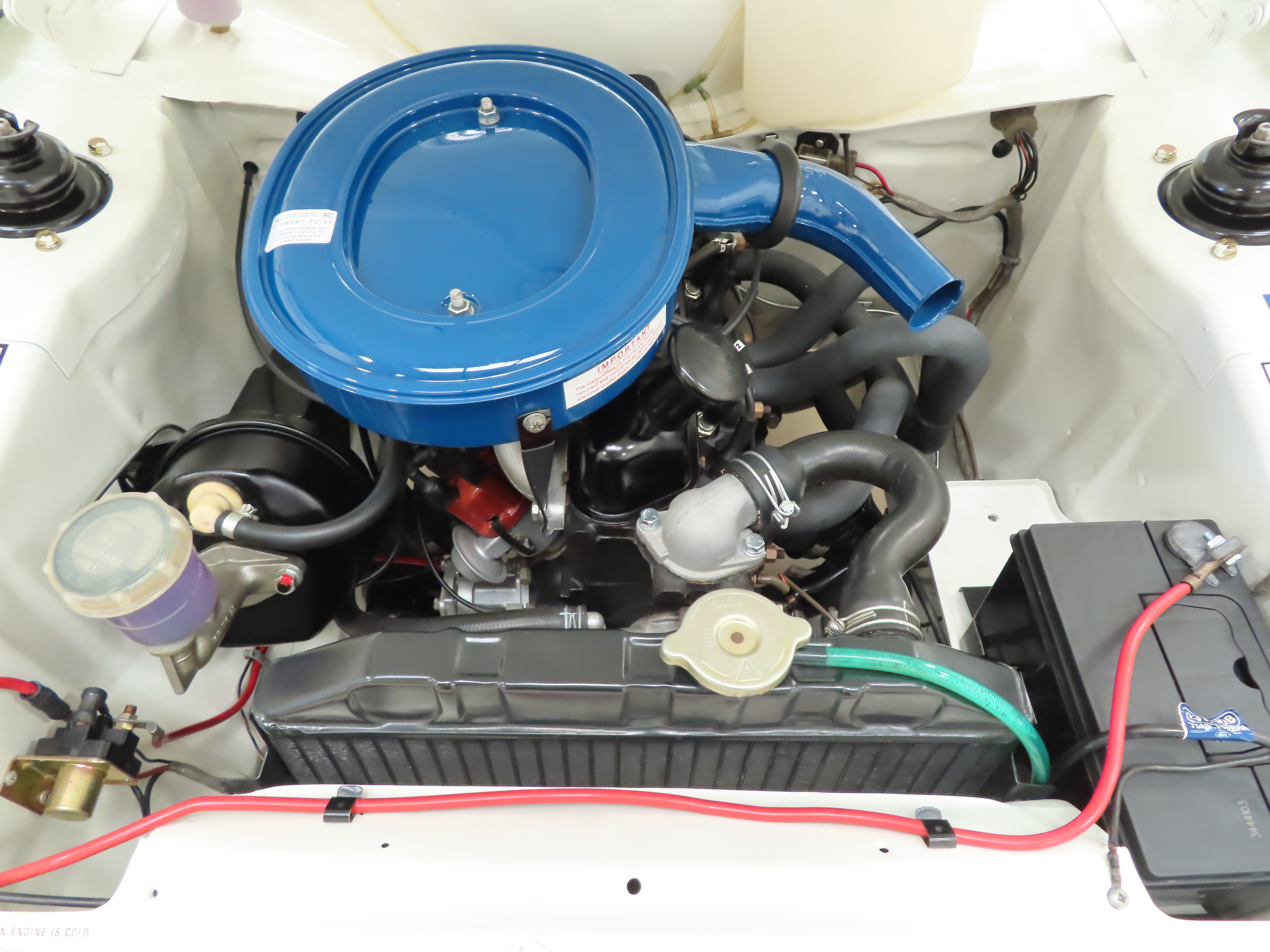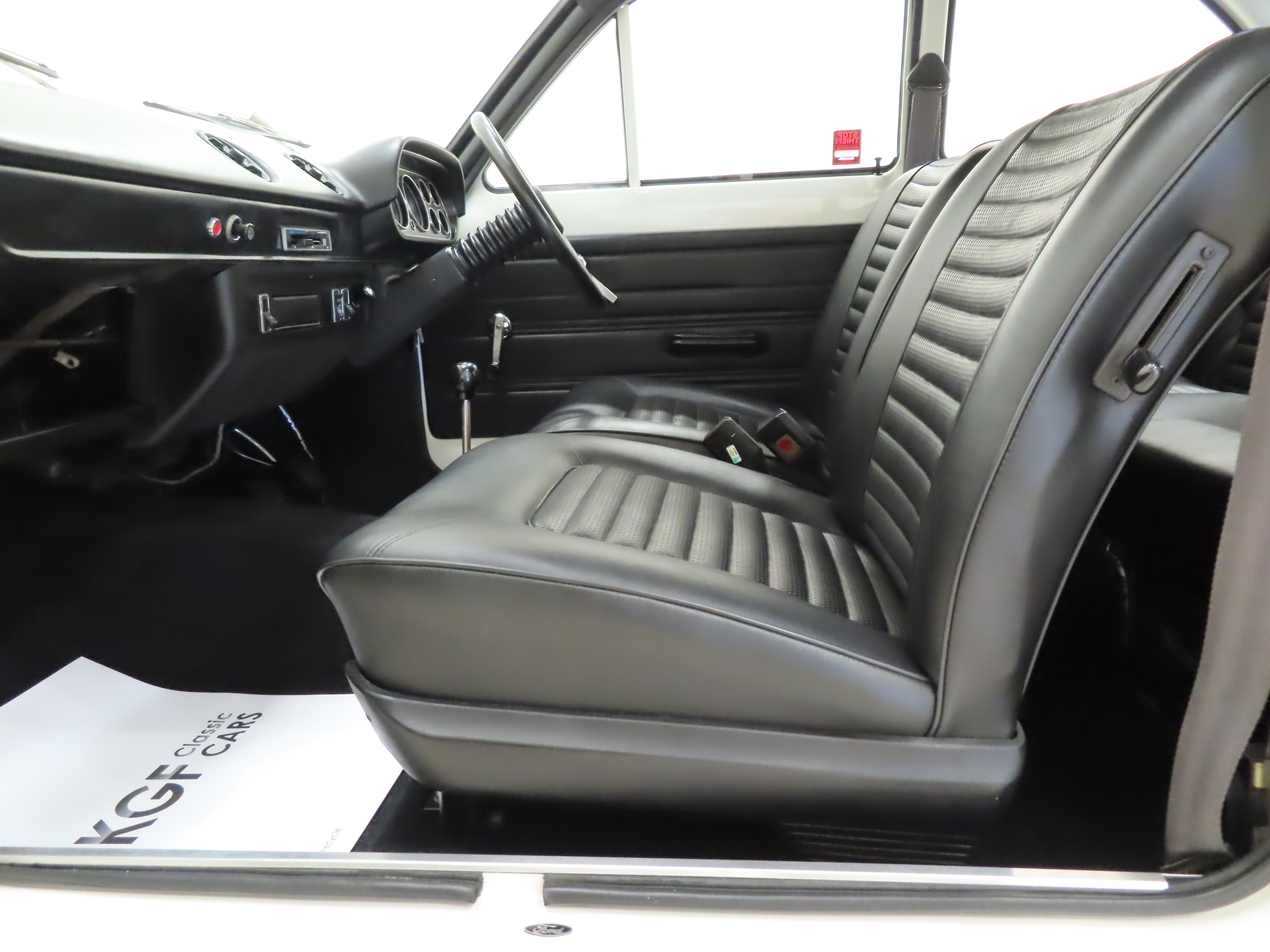 Correct and immaculate vinyl padded XL-specification seats, (Code AA), are basic and very supportive. The padded facia has no cracks or rips and the correct matt-black finish to the beautiful instrument panel to eliminate dazzle is unmarked. All instrumentation, switches and stalks function. The headlining, door cards and carpeting is unworn. The boot area continues the showroom experience with the blue Ford jack complete with stickers and wheel brace included. Even the delicate plastic rear light covers are still present! All old and gold!