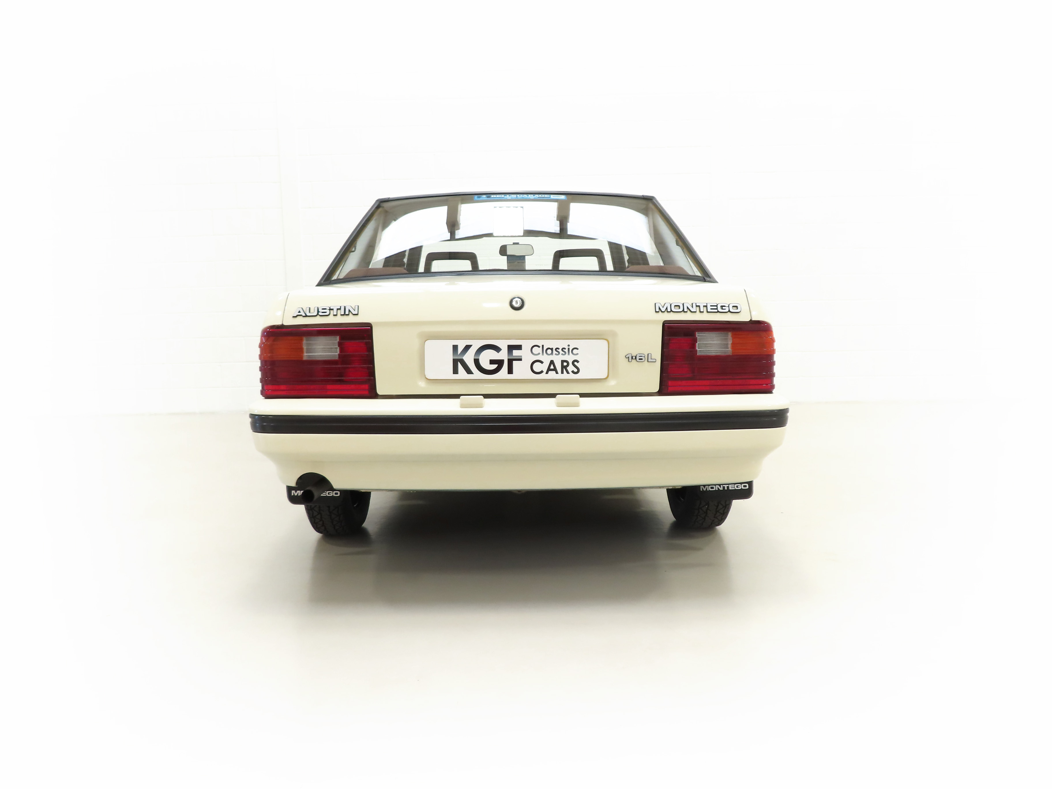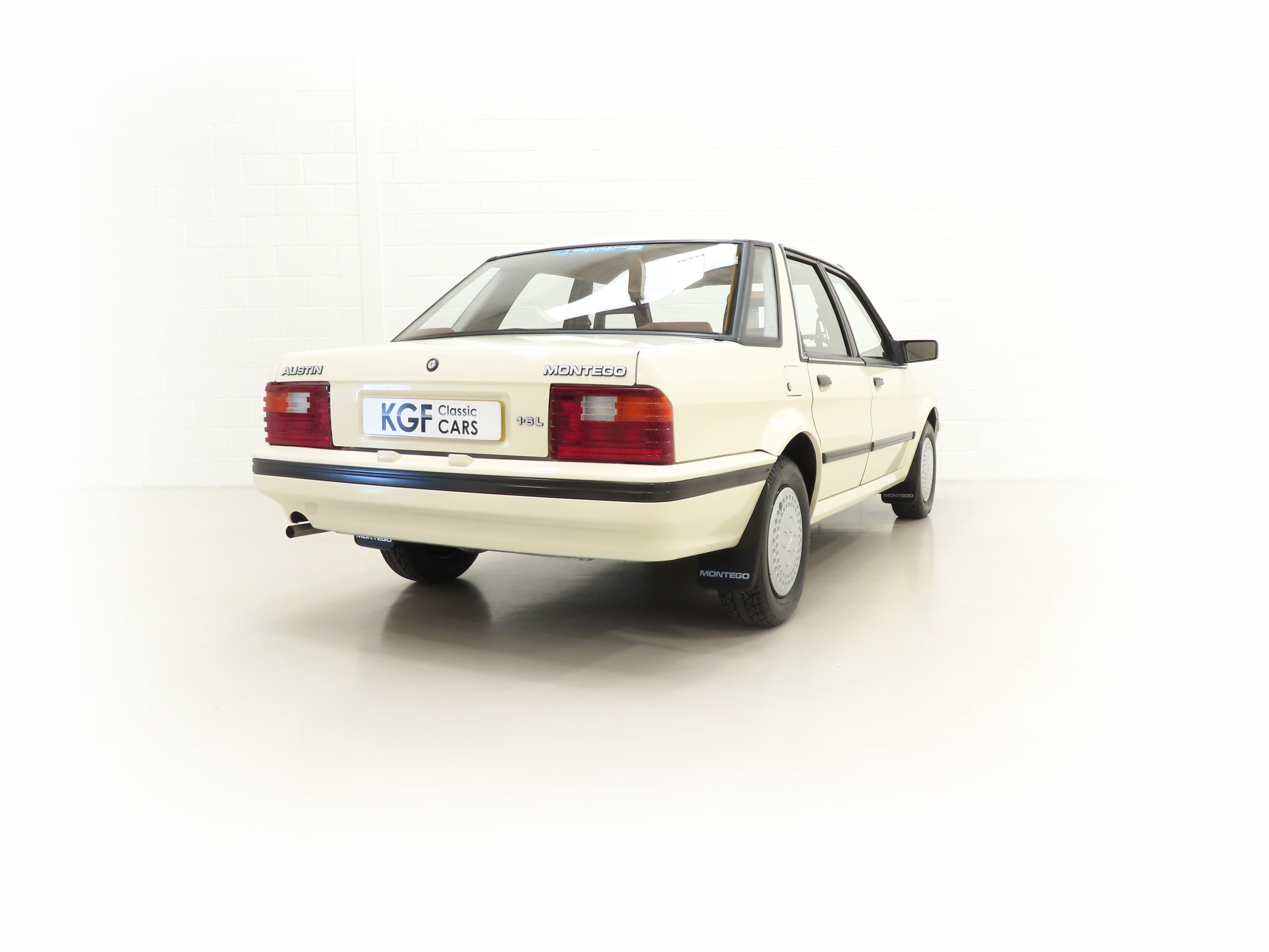 Four-door body with notchback, bolt-on wings and integrated front spoiler, colour coded bumpers, side rubbing strip, silver finish grille, exterior brightwork, flush glazing front and rear, laminated windscreen, concealed wiper park position, halogen headlamps, childproof rear locks, internally adjustable door mirrors, illuminated cigar lighter, Austin radio cassette, cassette storage, heated rear window, rake-adjustable front seats, coat hooks, ash tray, coin tray, courtesy light in boot, lockable illuminated glovebox, lockable fuel filler, remote boot release. Dealer Options: Mudflaps, tailored Montego rubber mats.