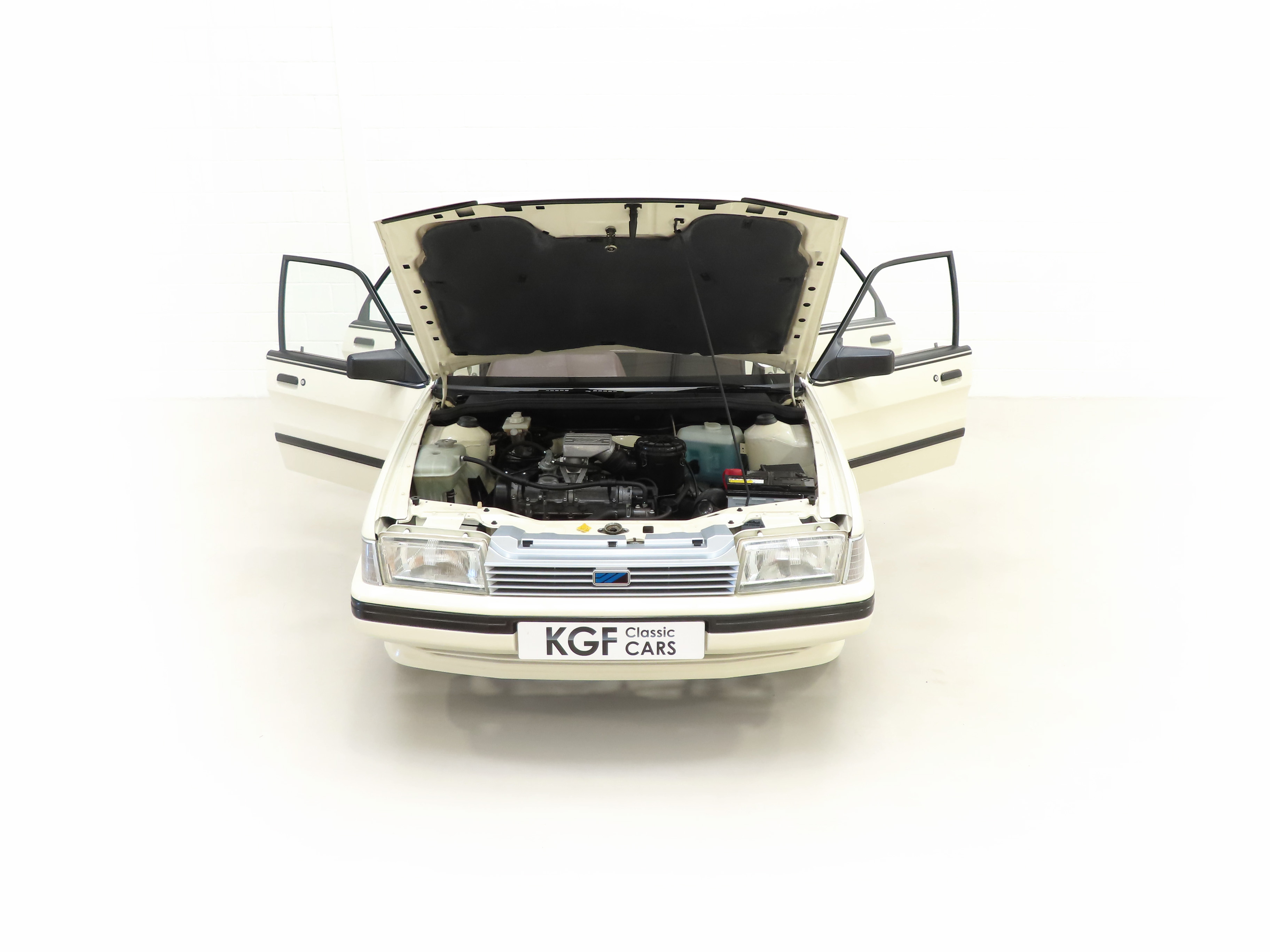 Finished in factory original Arum White, (Code NMF), this 1984 launch year Montego has covered just 12,108 miles from new. The paintwork presents beautifully with a bright polished uniform shine to the original panels which are straight and free from dings or damage. Some paint blemishes and carefully touched in markings do not detract from the cars appeal and are entirely forgiven considering the originality. This garaged example with ultra-low mileage is also structurally perfect throughout including the underside. The trim sections, glass, Unipart lights, and badges are brilliantly preserved. Supplying dealer fitted number plates, rear screen sticker and tax disc holder remain fitted to cement this car amazing originality. Eagle-eyed Montego experts will note the grille badge in the original design fitted to only the earliest cars, subsequently replaced by the blue and green striped Austin worded badge. An incredibly rare surviving example guaranteed to amaze in its condition and factory originality.