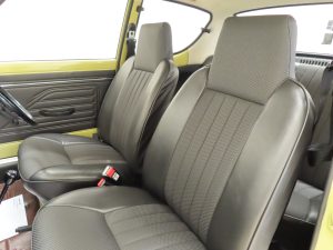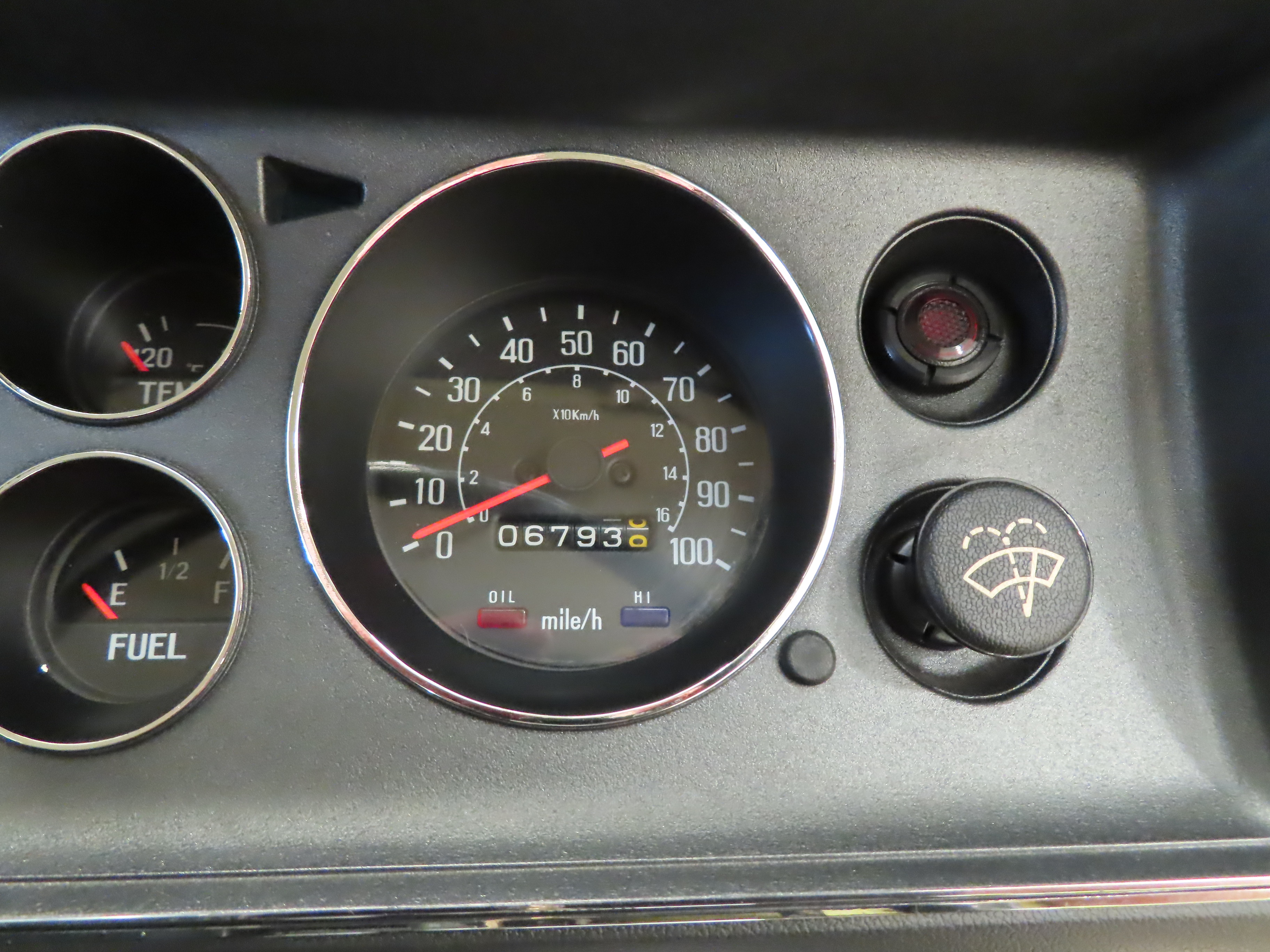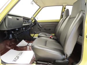 Prepare to be amazed at the factory fresh condition of the interior throughout on this uber low mileage Datsun 100A. The individual front seats are carefully shaped, firmly cushioned and finished in unmarked soft vinyl. The contoured padded dashboard is perfect with a full complement of accurate and vibrant working gauges. The chrome surround around the gauges is bright, the pedal rubbers are unworn and even the protective film to the Datsun badge on the glovebox remains! The door cards with the drivers door still featuring the tyre pressure sticker, headlining, rear parcel shelf and rubber floor covering with the brown fleck, are all pristine. The optional Datsun Clarion radio works and even the optional seat belt buckles have the Datsun stickers attached! The boot area is incredible with the correct rubber floor mat, leather pouch with the wheel brace still present and even the delicate OK sticker stuck to the inner boot lid attached. Utterly magical!