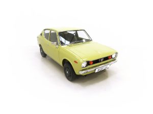 A surprisingly spacious small car that is low, lean and cute! What is more surprising however is the outstanding factory-built originality of this UK example. All pin straight panels, rubbers, chrome, trim, lights and glass are factory fitted. This survivor is finished in glossy Datsun Lime Yellow, (Code 353), and has no shade difference between panels. Due to the cars originality, each panel will have honest paint imperfections from tiny spidering to touched-in blebs, left entirely to cement how unique this unicorn is amongst a handful of restored survivors remaining. The rear quarter rubber bungs inserted from new where different longer bumpers fitted to non UK cars would normally be fitted, remain. All badges are correct and bright and even the wiper arms are still Mitsuba items. The excess glue applied on the production line to stick the window rubbers has now browned, but again, has been left to confirm authenticity. Recently discovered garaged at its first owners home means that the underside, wheel arch apertures and all shuts are in remarkable condition. The supplying dealer tax disc holder is still fitted to the front screen along with period correct number plates. It will be a further surprise if a more perfect, untouched, unrestored and factory correct example exists……