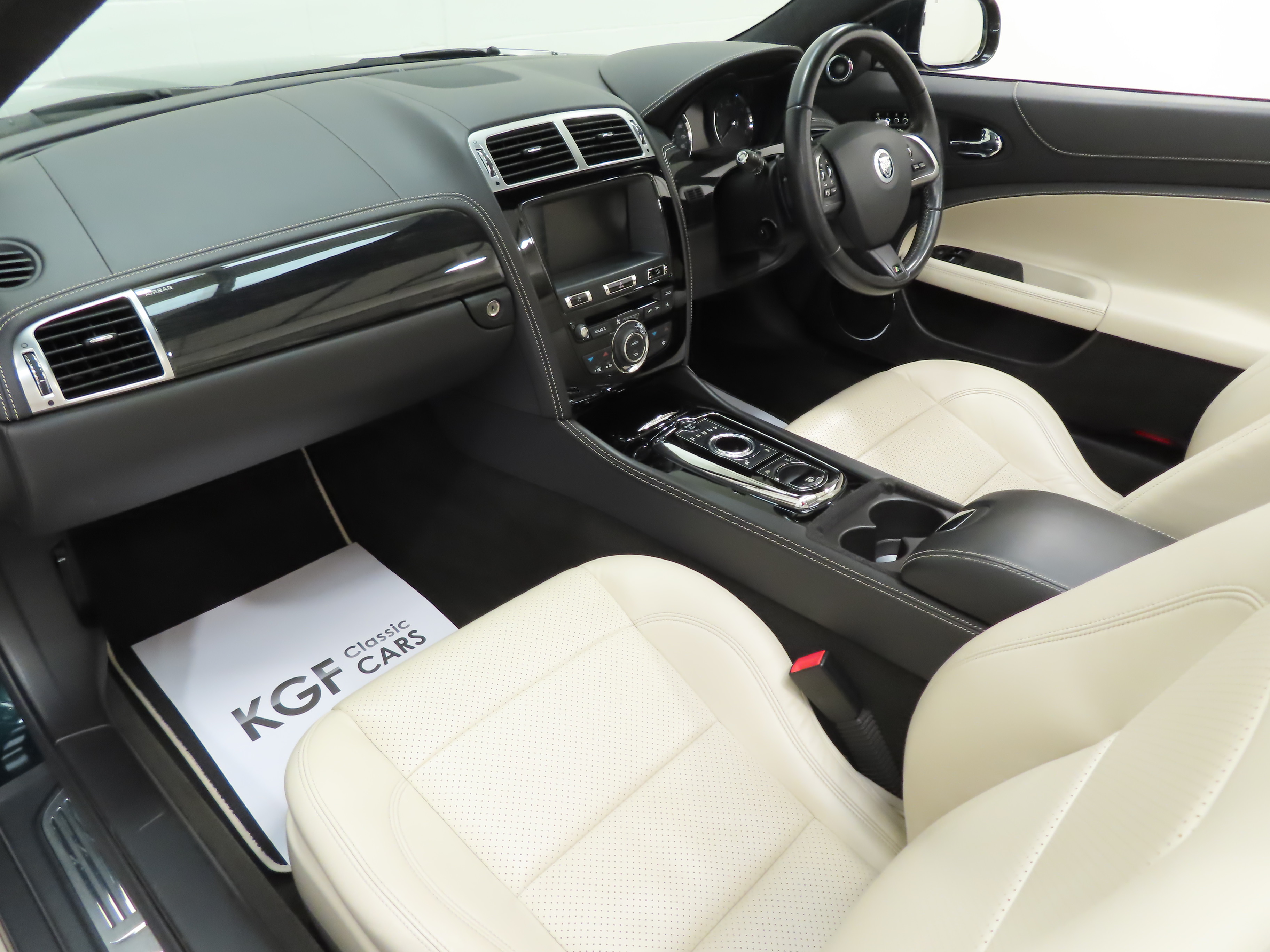 The jewel in this performance Jaguar is the 5.0 litre V8 supercharged 510PS petrol engine developing a thumping 625Nm of torque. Top speed is limited to 155mph and 0-60mph is despatched in just 4.6 seconds. The factory optional performance active exhausts with quad tailpipes sound amazing and with full Jaguar main dealer and marque specialist service history, the next owner will have total reassurance. Opening the bonnet will reveal a spotless engine bay. The 6-speed electronic automatic transmission with Jaguar Sequential Shift is controlled via the JaguarDrive Selector and offers the perfect combination of a Grand Tourer and outright sports car. Tremendous.