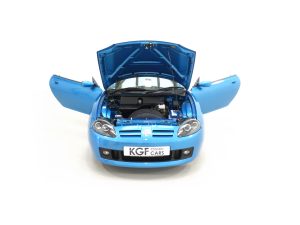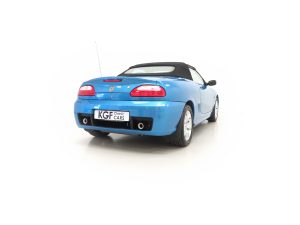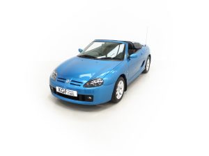 This stunning late MG Rover built TF is finished in the rare and wonderfully vibrant colour of Sonic Blue Metallic, (Code JHG), a factory cost option. The paint finish is exceptional throughout and entirely commensurate with the low mileage covered by this pampered, garaged example. The superb underside is beautifully clean with PDI marking still visible and the original panels even display factory spot welds to the wheel arches. All door, boot and bonnet apertures are spotless. The durable woven acrylic fabric hood in pristine condition features the heated glass rear window as fitted to the later examples. All trim sections are excellent and the iconic MG octagon badges and Union Jack wing plates remain intact and bright. A truly outstanding example of this increasingly collectable car.