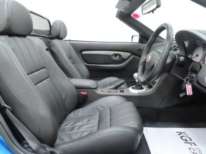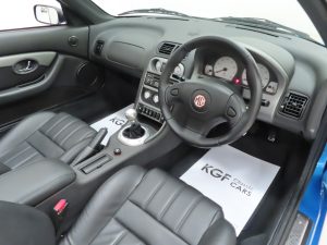 The factory fitted 15” V-spoke alloy wheels are immaculate with original MG badged centre caps. The front and rear tyres of size 185/55 R15 and 205/50 R15 respectively are matching recent replacement Toyo Proxes and the spare wheel with original Goodyear GT3 tyre is unused. The original jack and brace are stored in the leatherette bag. The braking system incorporates electronic anti-lock assistance and discs all-round, (ventilated front), to offer positive stopping power.
