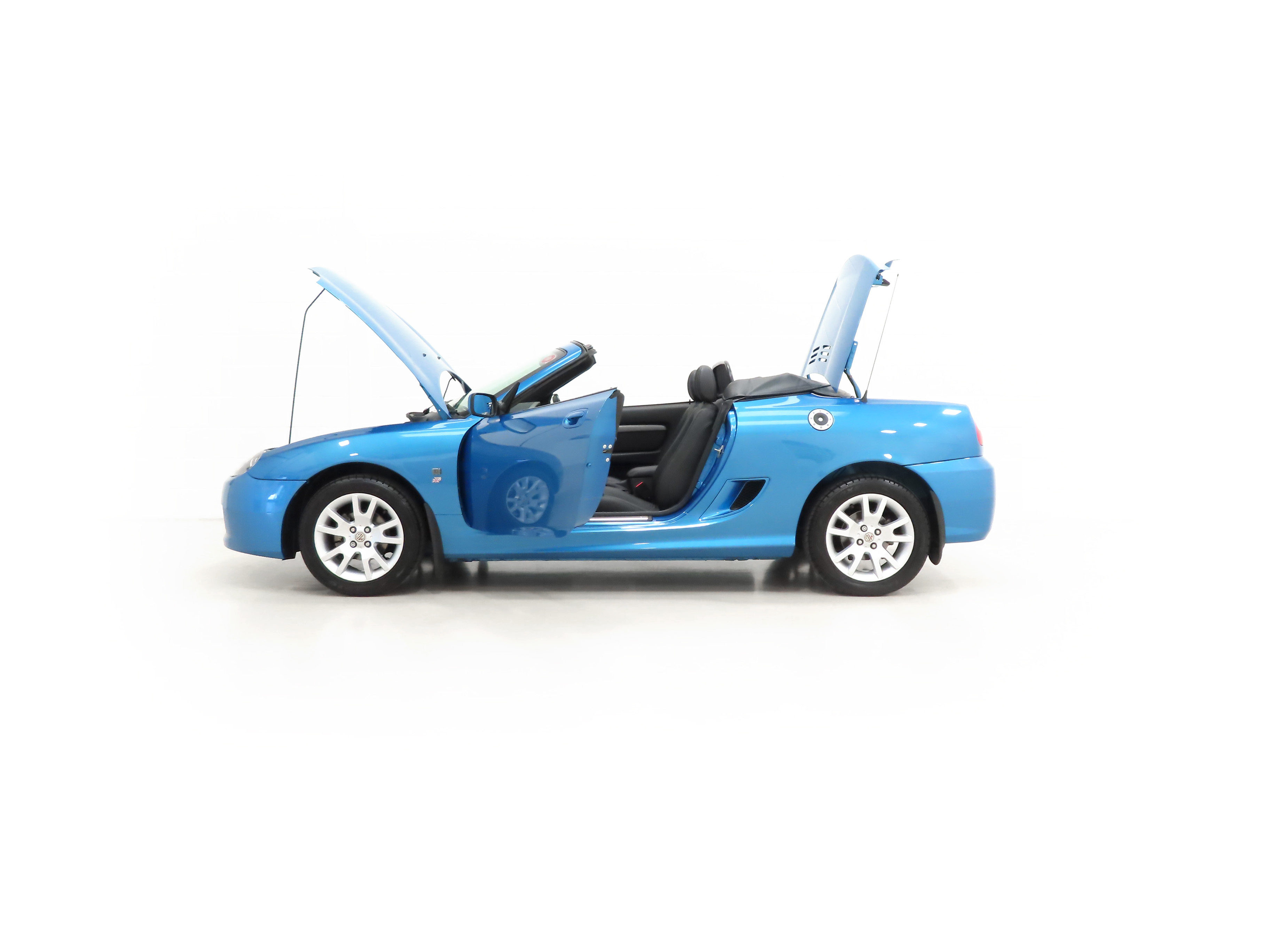 Reinforced body structure, door side intrusion beams, tinted glass, bright sill finishers, seat belt pretensioners, fuel tank cage, high tensile tubes in A pillars, impact absorbing front and rear structures, Anti-lock brakes (ABS), high level brake lamp, remote central superlocking, Thatcham Category 2 immobiliser, perimetric and volumetric alarm system, heated electric door mirrors, drivers airbag, tonneau cover, glass heated rear screen. Factory Options: Metallic paintwork, leather interior, front fog lamps. Dealer Accessories: Mud flaps, tailored MG floor mats, wind deflector, CD changer.