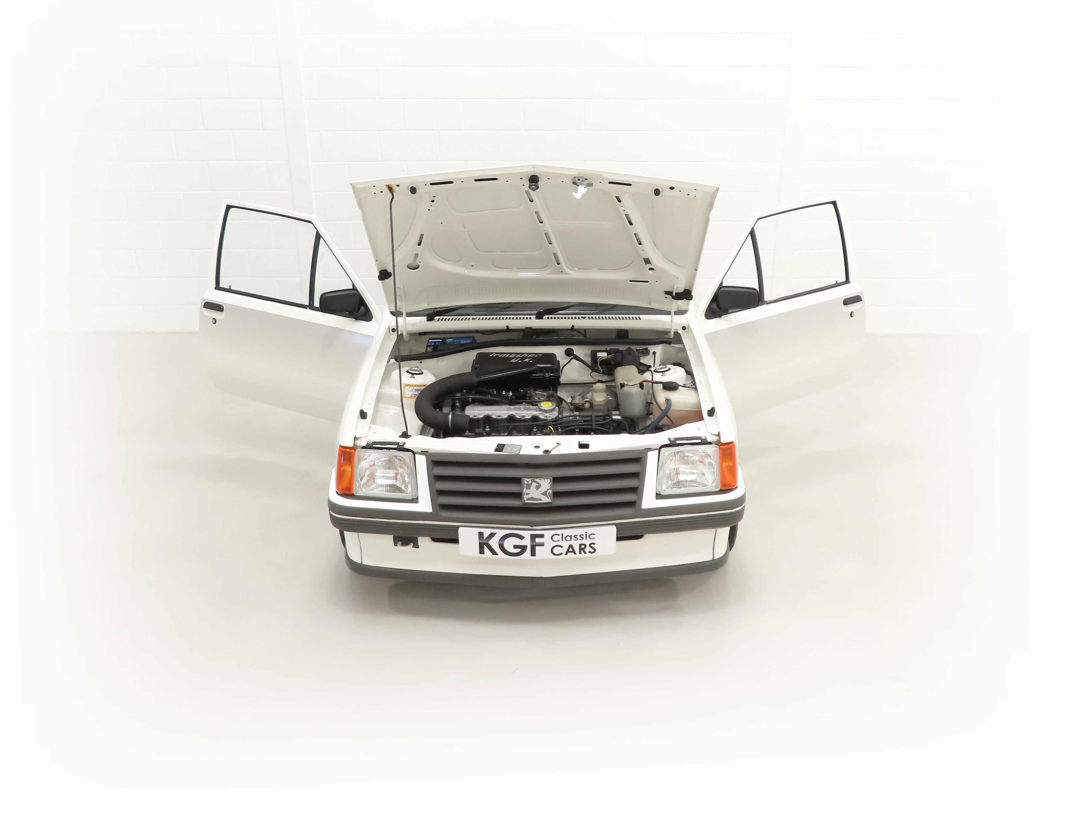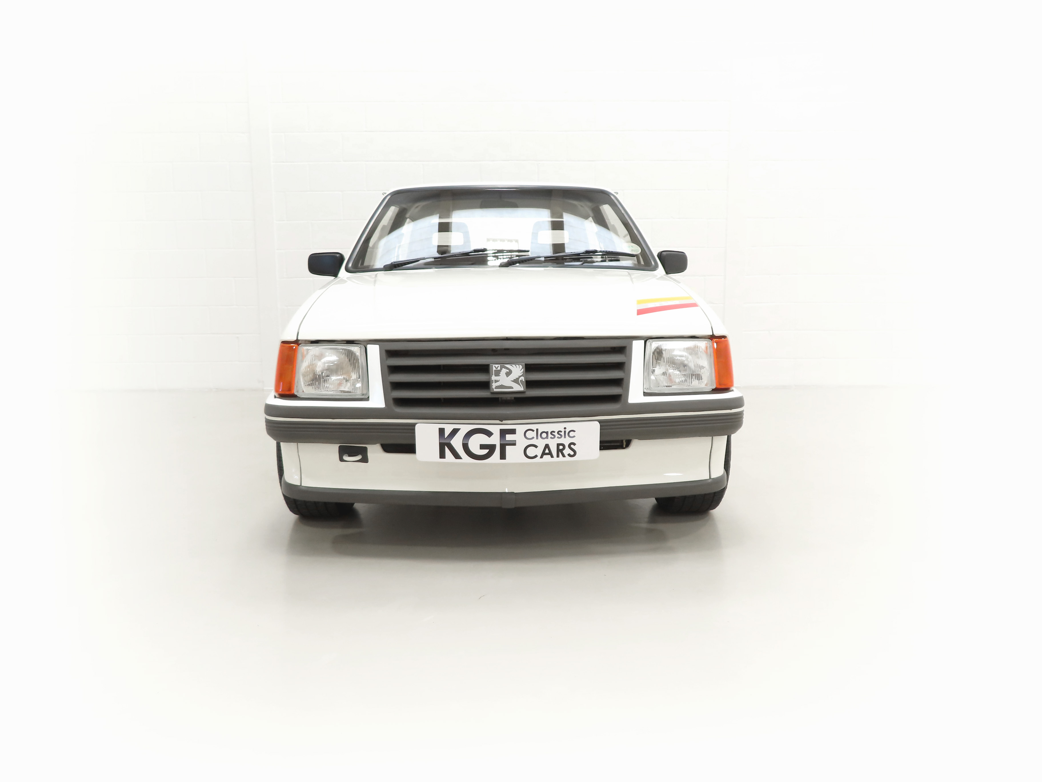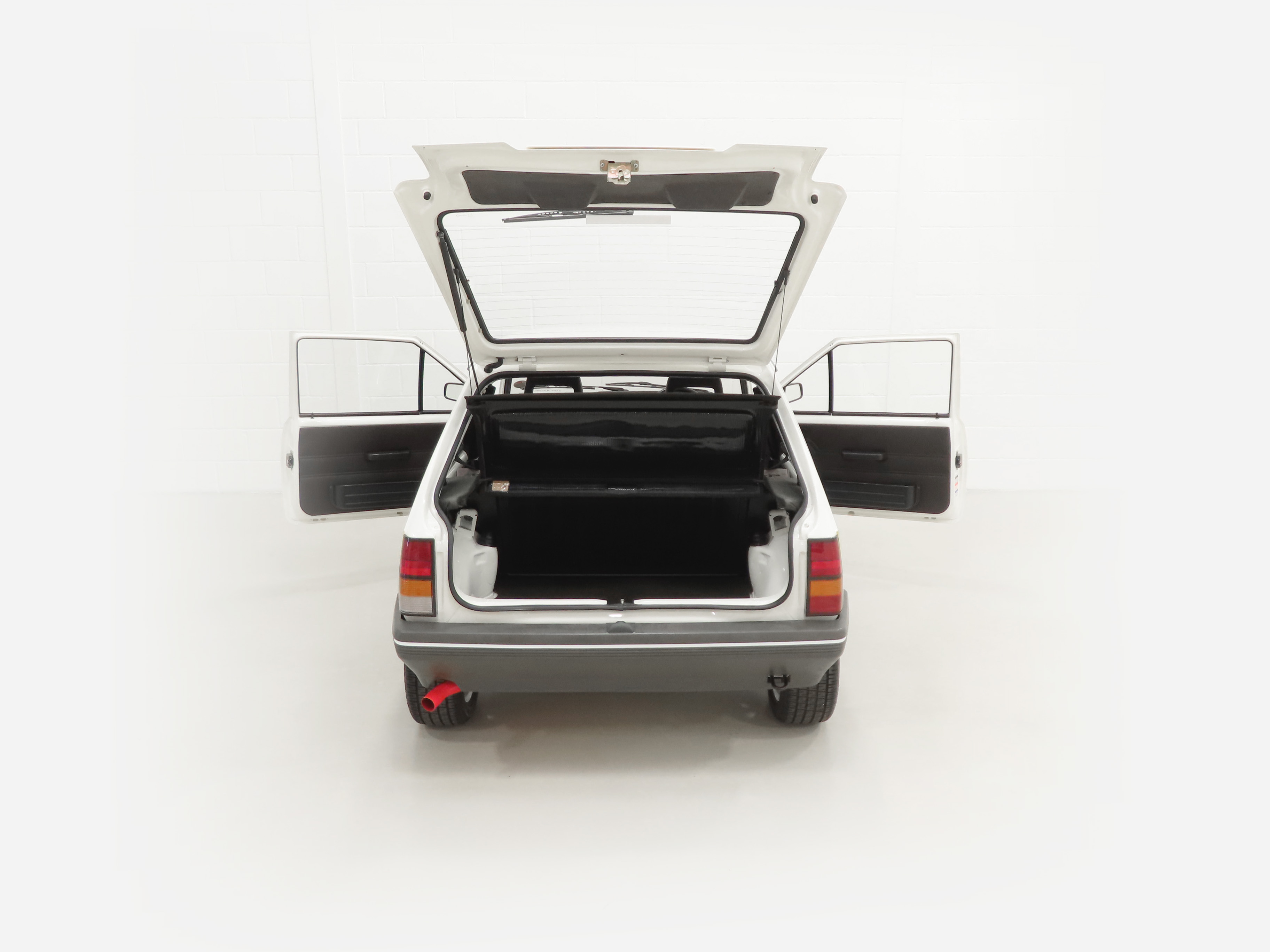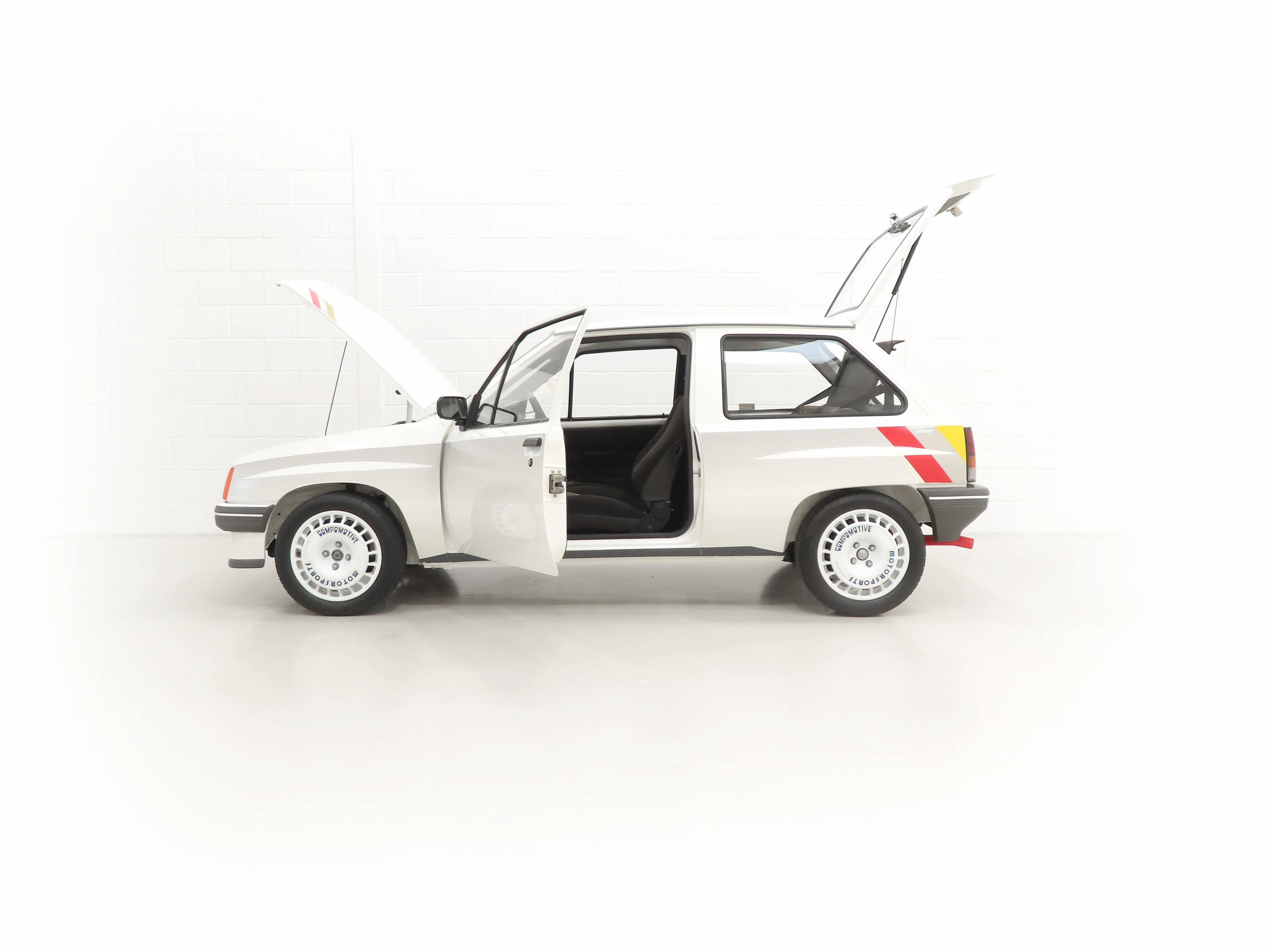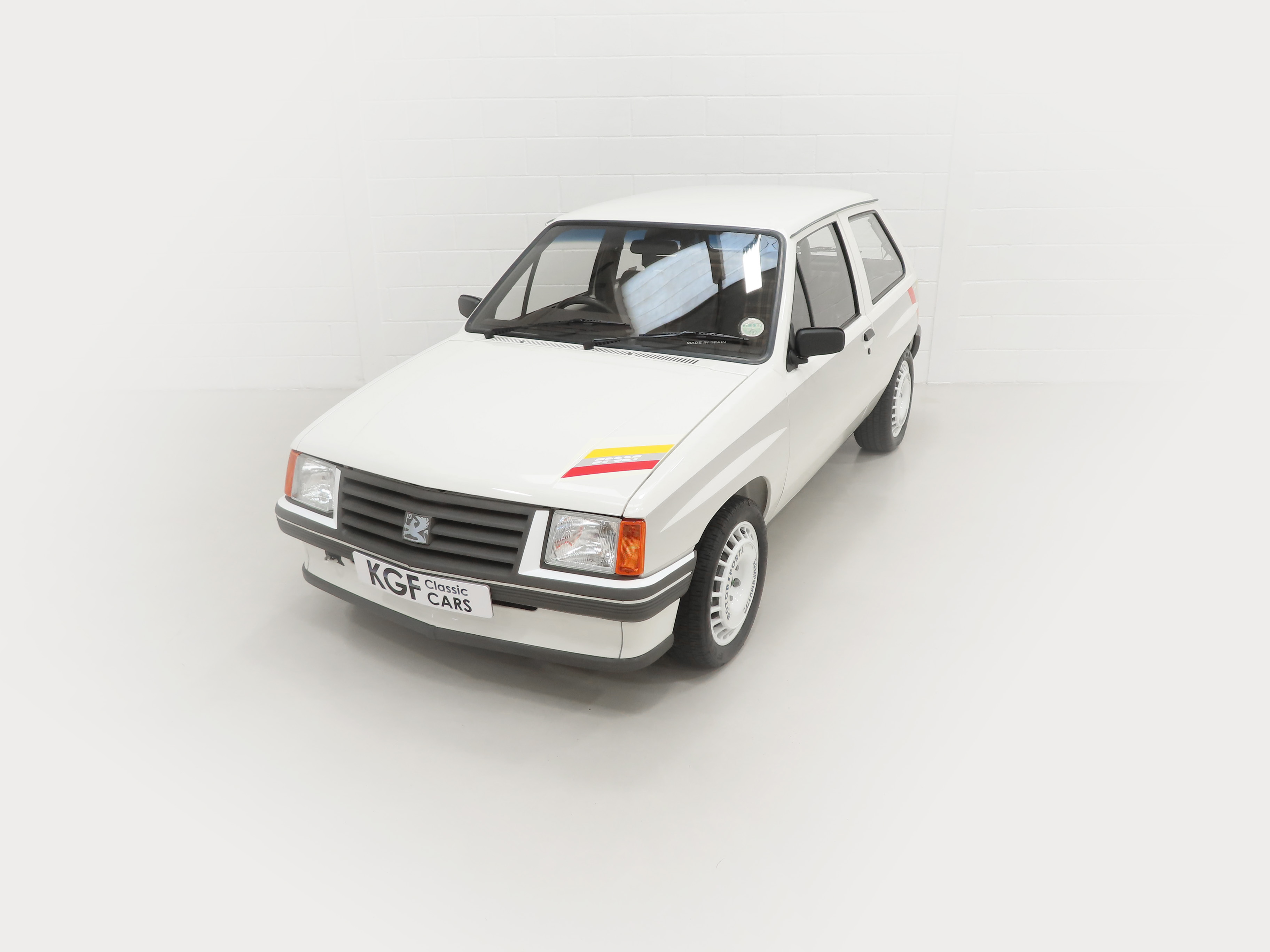 A rather special Nova quickly distinguished from the exclusive, striking, carefully co-ordinated ‘Sports’ livery and standard red performance Ashley exhaust silencer. All 500 homologation specials were finished in Polar White, (Code E452), and this authenticated example is exemplary in all exterior attributes. From the unmarked glossy rich paint, correct trim and detailed underside, this is not just a show winner on Group A rally stages! The early round lock rear tailgate, correct bumpers, gutter trim and even unobtainable sill decals are fitted, all documented in a photographic laminated restoration album. Supplying dealer number plates, rear screen sticker and even tax disc holder are fitted. This stonking example is fit for the finest of iconic car collections.