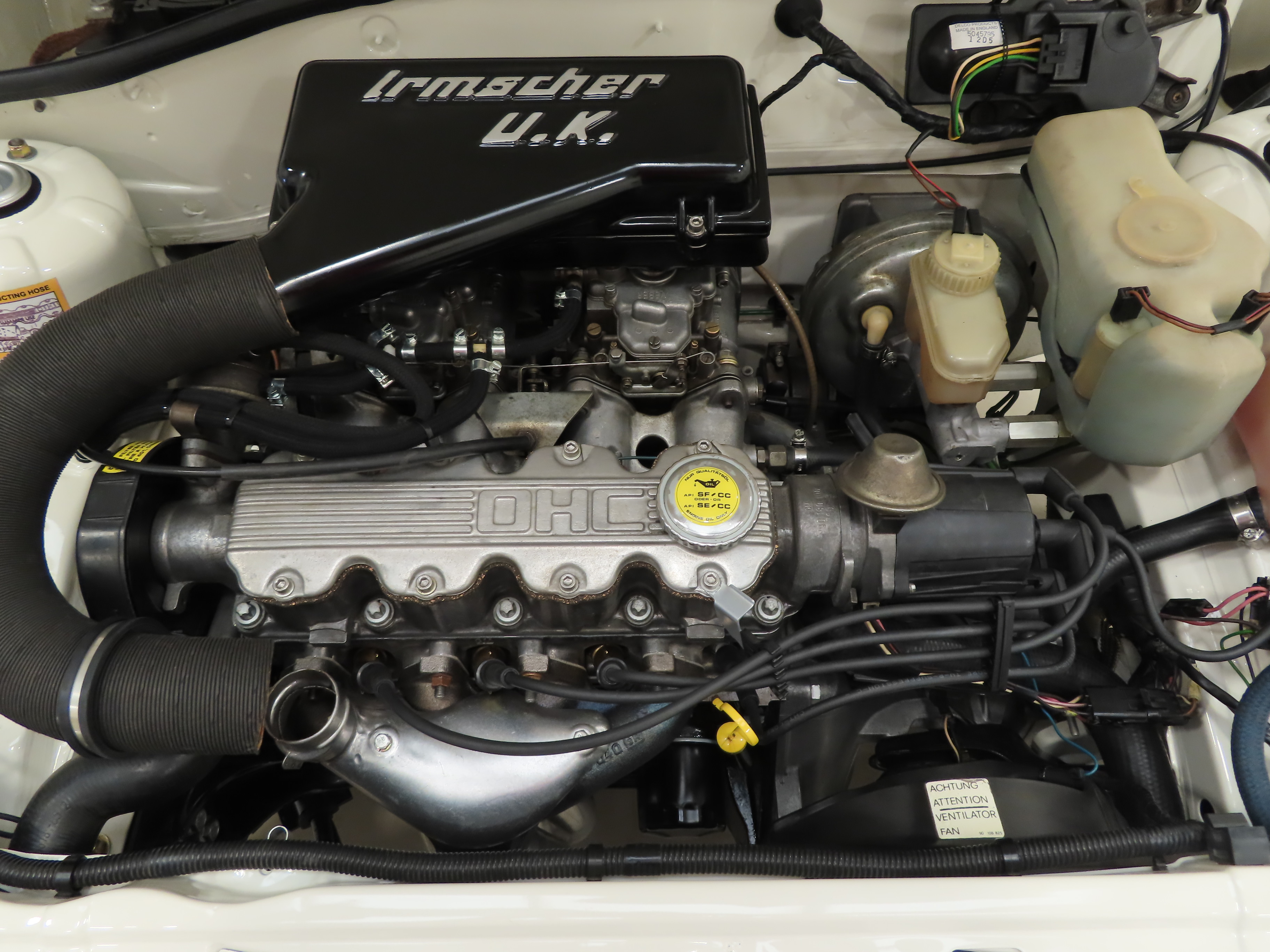 Front spoiler, Sport livery, tinted glass, halogen headlamps, uprated Sports handling package, locking fuel cap, tailgate wash/wipe, interior light, quartz clock, hazard lights, two-speed heater fan, folding rear seat, twin Weber DCOE dual choke carburettors, Irmscher air cleaner/silencer unit, Irmscher induction manifold, performance camshaft, red Ashley rear silencer. Accessories: Bill Blydenstein B Pack Conversion, passenger door mirror, Compomotive alloy wheels, Formuling sports steering wheel, rear seat belts, Vauxhall rubber floor mats.