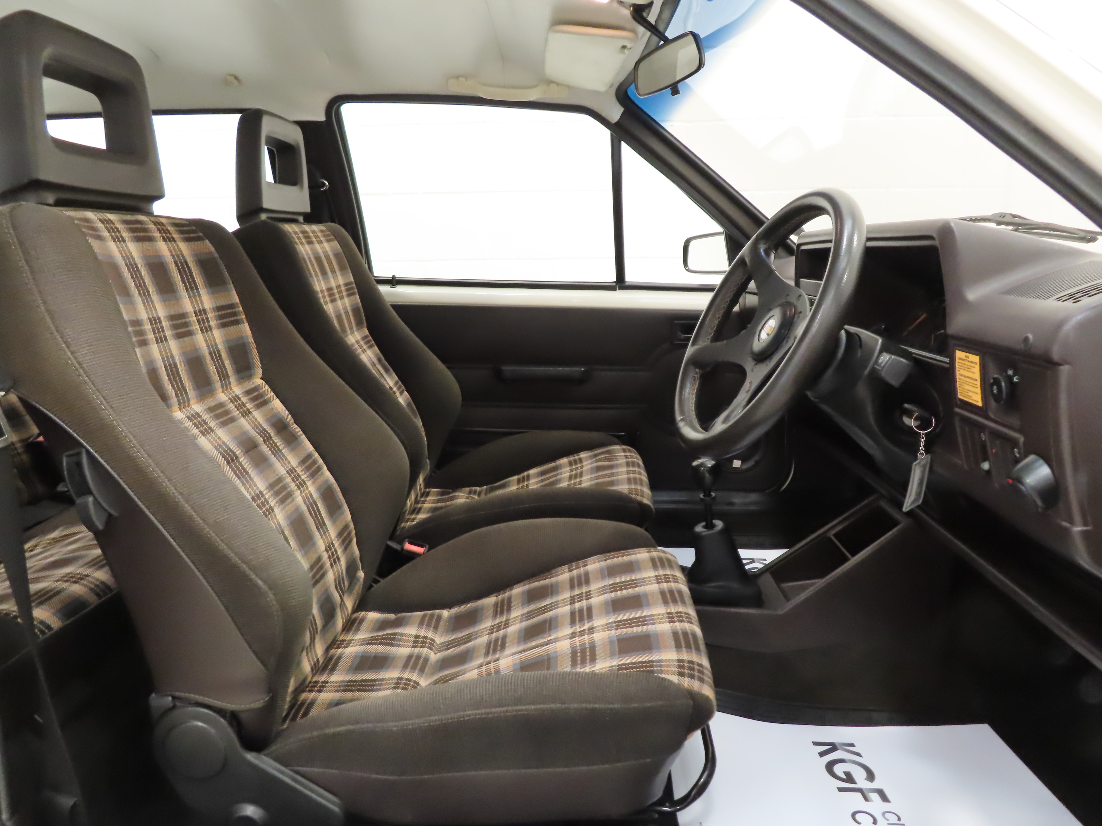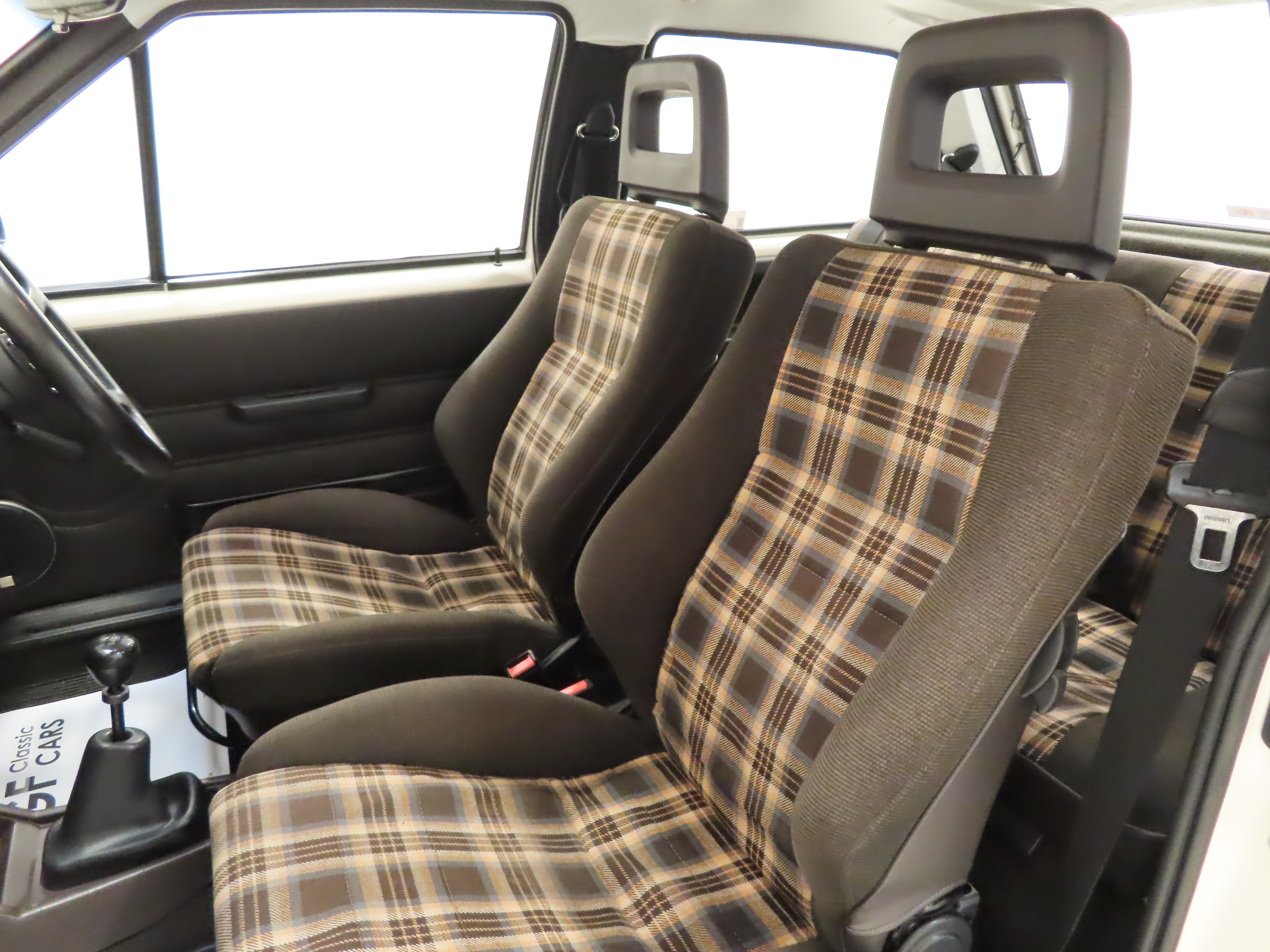 Sparse and all the better for it! Body-hugging, rally-style front Recaro seats are trimmed in Brown Daytona Check SR interior, (Code 321), with no common wear to the outer bolster areas and tight material. The basic dark brown dashboard has no outer face vents, the starting procedure sticker and the correct two speed rotary fan dial. The early orange needle SR 6 dial sports instruments are in full working order and door speakers and tweeters remain fitted from a removed radio. The colour keyed carpet has been protected by genuine Vauxhall rubber floor mats and a pristine genuine GM rear parcel shelf remains fitted enclosing an immaculate boot area.