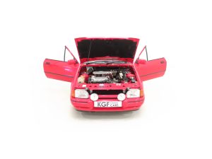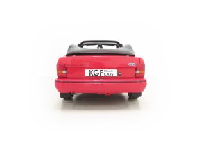 A beautifully clean, original and unspoilt example of a rare sporting hot cabriolet with the iconic XR3i name. Finished in factory original Radiant Red, (Code PA9), the paintwork boasts a stunning deep shine and uniform finish that can only be described as near flawless, the only notable exception being a touched in mark to the front plastic grille. The original soft-top roof is in superb condition with no damage whatsoever and the car has clearly been garaged from new with no fading to the vinyl or cracks. The colour keyed hood cover for use when the hood is lowered is present and spotless. The panels on this example boast factory fitment with date stampings clearly visible and the underside is clean and detailed to a high show standard. All glass is factory fitment with number plate security etching and the front screen still displays the original first tax disc! Correct Carello headlamps are crystal clear and Ford emblems, trim sections, badges and iconic XR3i decals are immaculate. The supplying Ford dealer number plates and rear screen sticker remain fitted. A prime example of a soft-top Fast Ford and one of the proven best.