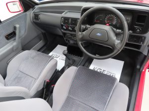 A delightfully crisp, responsive and free-revving 1.6 OHC (CVH) engine with Bosch K-Jetronic fuel injection produces 105bhp to achieve 0-60mph in 9.7 seconds and a top speed of 115mph. The engine bay presentation is excellent with original factory stickers, labels and panel stampings and would please the exhibitionist attending classic car shows at both an amateur and concours level. The five-speed gearbox is light and precise and aids the enthusiastic performance XR3i’s are known for.