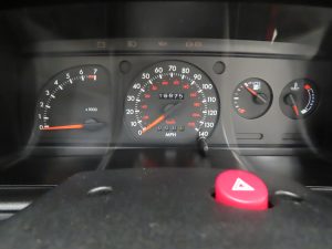 With seating for up to five people, this model remains both a fun and practical option of open-top classic motoring. The supportive sports seats trimmed with Zolda fabric in Shadow colour scheme, (Code LU), are in outstanding condition and the colour keyed shark grey cut pile carpet has been protected from new by genuine Ford tailored ‘waffle’ rubber mats. Several spare supplying dealer A.W.&.D. Hammond branded paper floor mats have been reproduced for show purposes and the boot carpet has a clear film protective cover. The door cards show no notable wear to the handles or shrinkage to the armrest sections that is commonly associated with the model. The dashboard and switchgear are in superb order and all functions and controls operate including the standard Ford ESRT 32 PS radio/cassette with electric aerial and the roof mounted digital clock. The sports two-spoke steering wheel and gear knob still have natural veins visible thanks to the low miles. 1980’s Ford interior perfection!