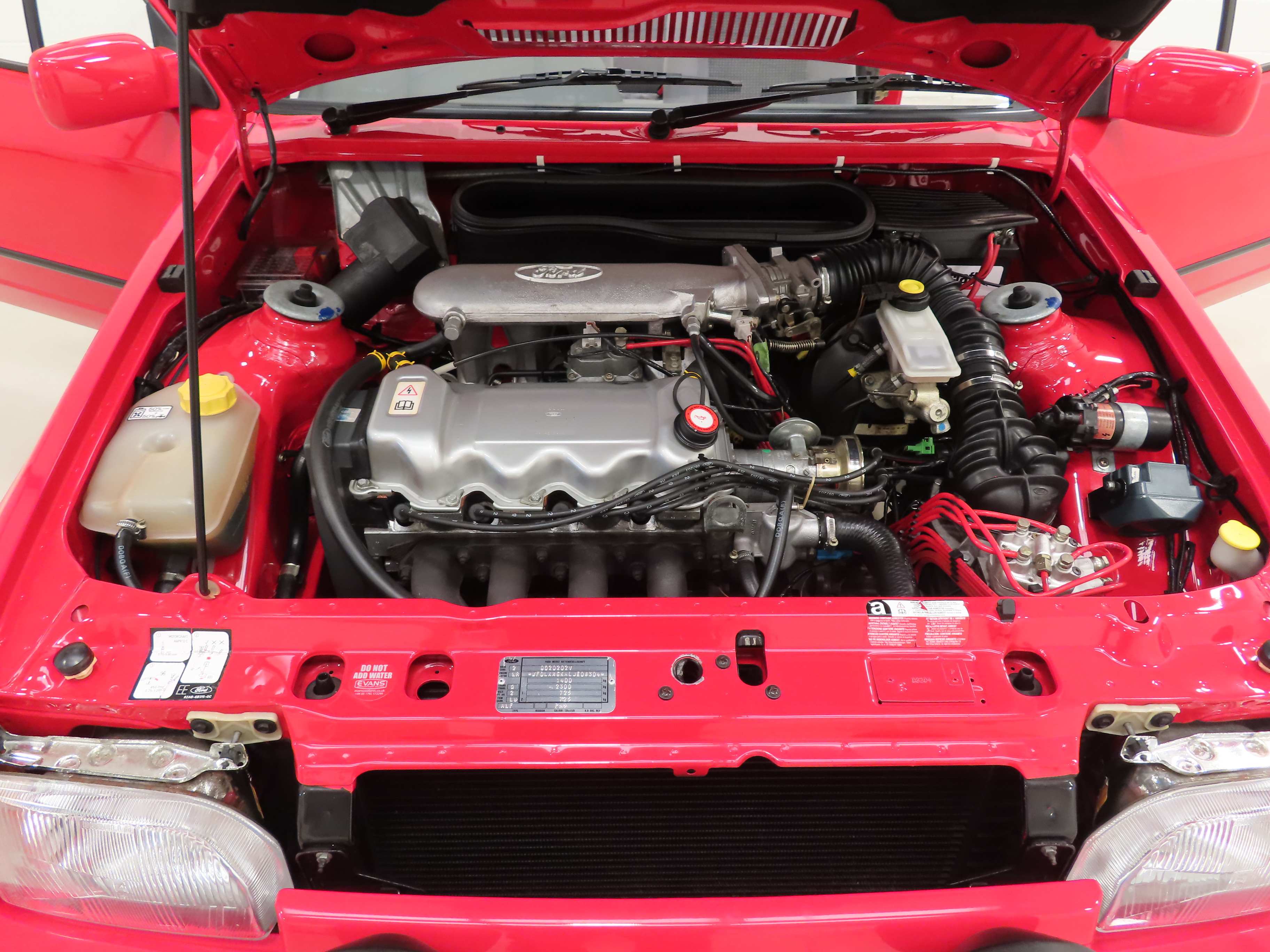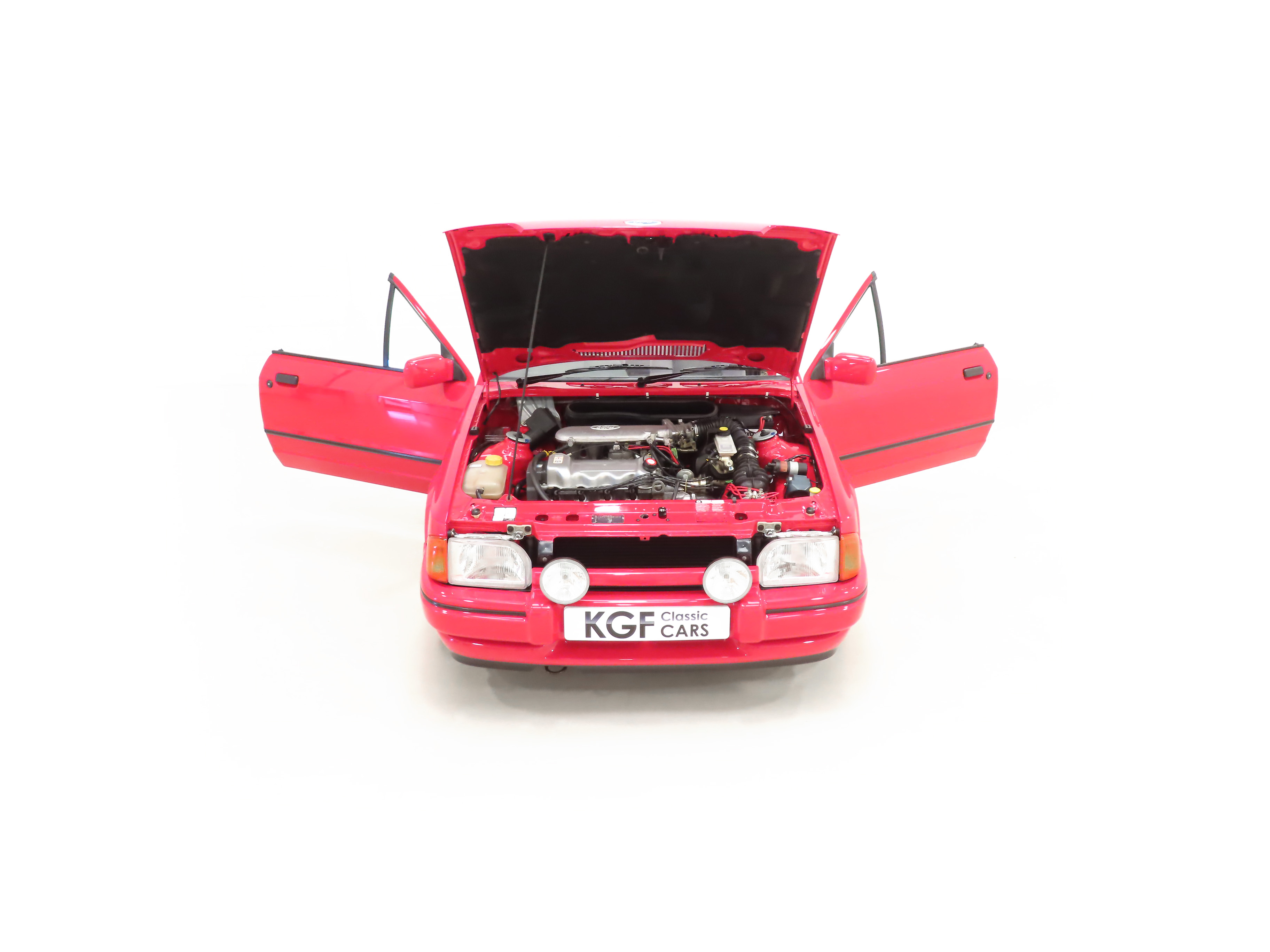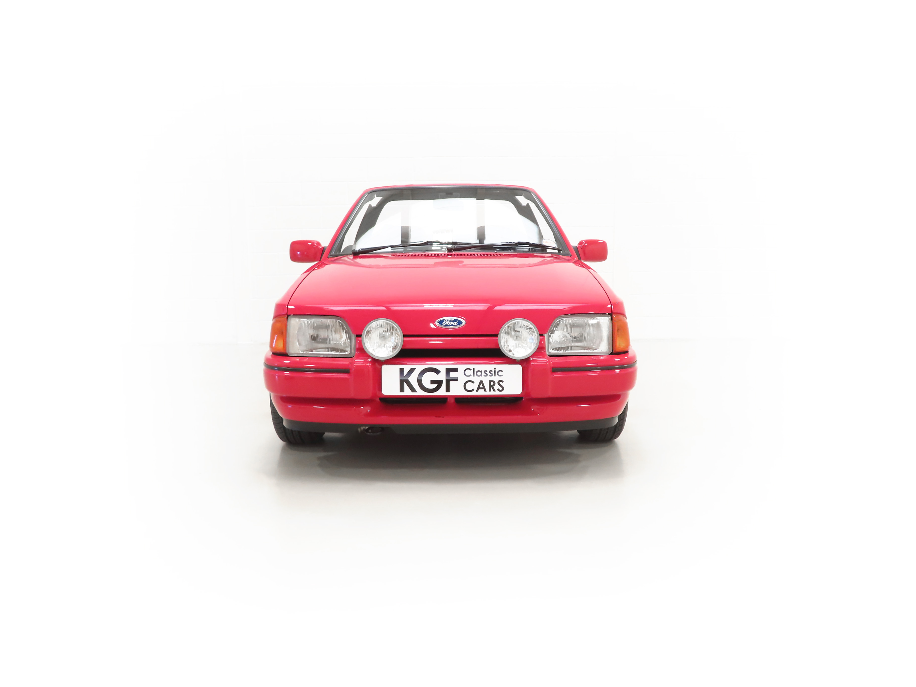 A beautifully clean, original and unspoilt example of a rare sporting hot cabriolet with the iconic XR3i name. Finished in factory original Radiant Red, (Code PA9), the paintwork boasts a stunning deep shine and uniform finish that can only be described as near flawless, the only notable exception being a touched in mark to the front plastic grille. The original soft-top roof is in superb condition with no damage whatsoever and the car has clearly been garaged from new with no fading to the vinyl or cracks. The colour keyed hood cover for use when the hood is lowered is present and spotless. The panels on this example boast factory fitment with date stampings clearly visible and the underside is clean and detailed to a high show standard. All glass is factory fitment with number plate security etching and the front screen still displays the original first tax disc! Correct Carello headlamps are crystal clear and Ford emblems, trim sections, badges and iconic XR3i decals are immaculate. The supplying Ford dealer number plates and rear screen sticker remain fitted. A prime example of a soft-top Fast Ford and one of the proven best.