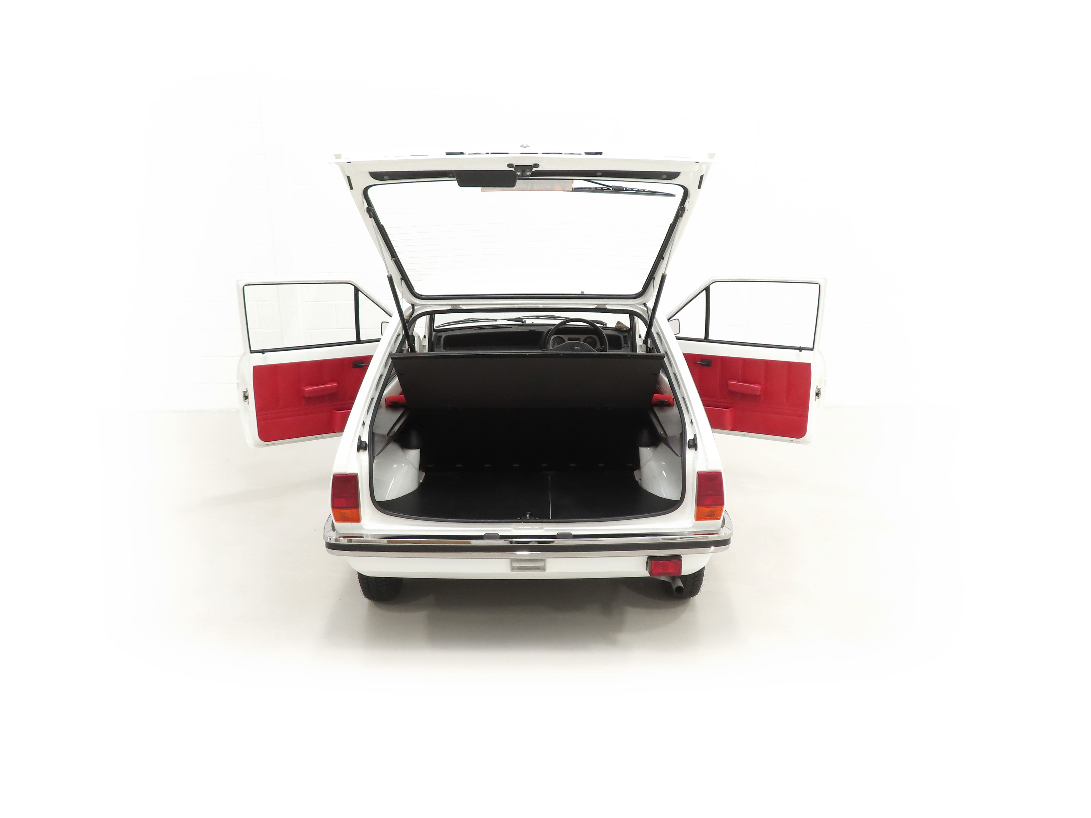 The original L specification Houndstooth Fabric Trim in Black and Red, (Code H 1), remains preserved in breath taking original condition. The fabric and structure to the seats is perfect and thanks to garage storage from new, there is no sunlight fading whatsoever. The door cards, carpets and headlining are immaculate. Such is the untouched nature of this car that even factory stickers remain on the seat belt buckles! The wonderfully sparse fascia is fully intact in showroom order, and all equipment and functions, albeit minimal, operate perfectly. The very critical eye will note nothing other than a few faint scratches to the top of the inner doors and one rear side trim where the vinyl has shrunk slightly. The spotless luggage space has the original Ford jack and brace as well as factory foam insulation and PDI build sticker intact. Totally unspoilt, it is difficult to imagine this interior being surpassed.
