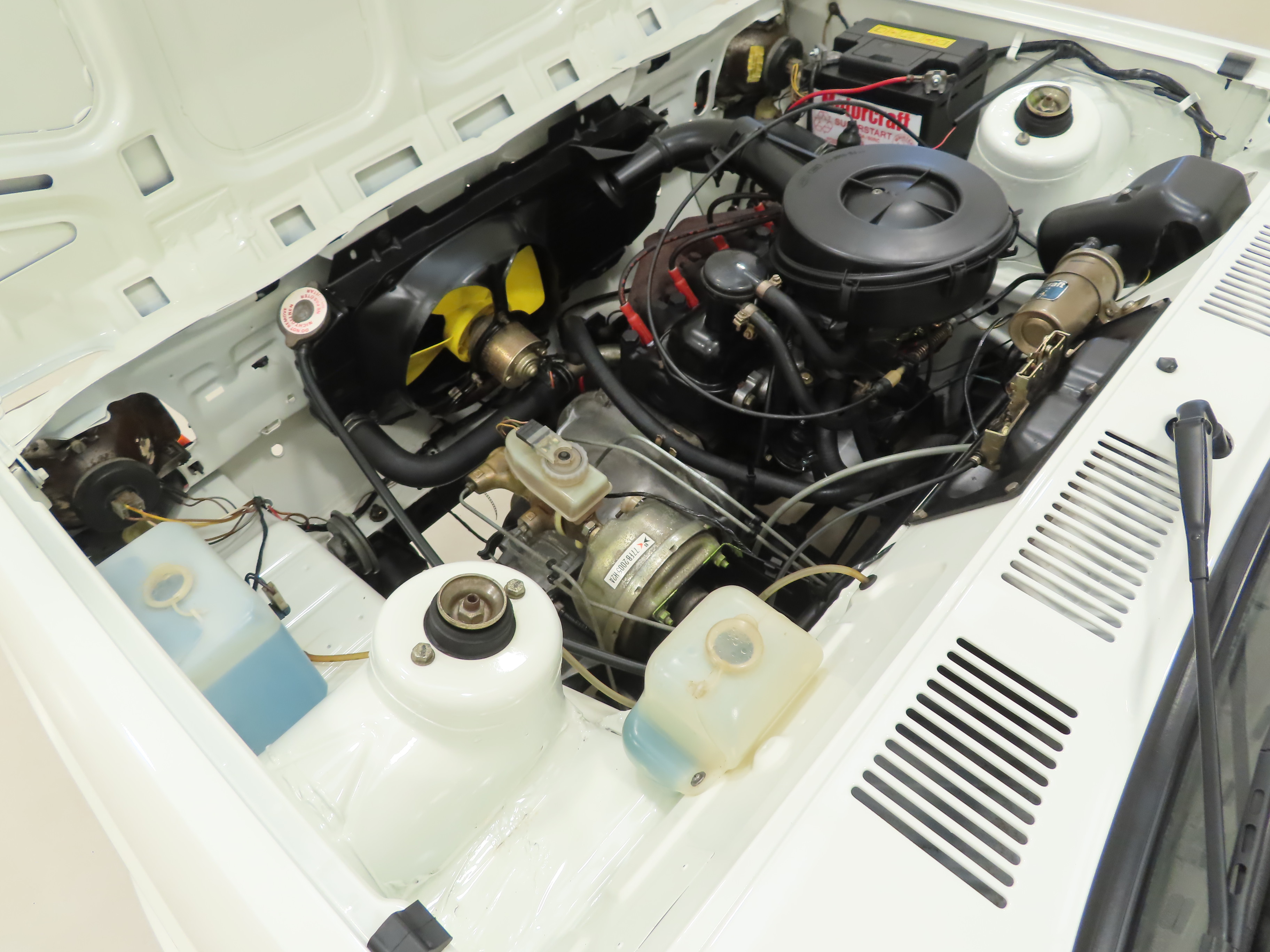 This delightful Fiesta 1.1 L is powered by the 1117cc four-cylinder OHV unit developing a hair-raising 53bhp! The instantly recognisable engine hum is hugely nostalgic and the car performs brilliantly. The engine bay is a concours judges dream in a condition that almost defies believe. The engine, gearbox and all ancillaries have been meticulously cleaned and detailed to a phenomenal level. The car has undergone major recommissioning after being off the road for many years and where possible under safety constraints, original and genuine Motorcraft service items are used and retained including plug leads, filters and other consumables. Fragile stickers and labels to original components such as the coil and brake servo, long lost on most cars, have remained intact and bright. Brackets, clips and fittings retain the factory anodised coating. Panels stampings to inner wings as well and VIN and body plates are preserved. The four-speed gearbox operates well and this spirited little Fiesta with all its low mileage tightness is an absolute hoot to drive!